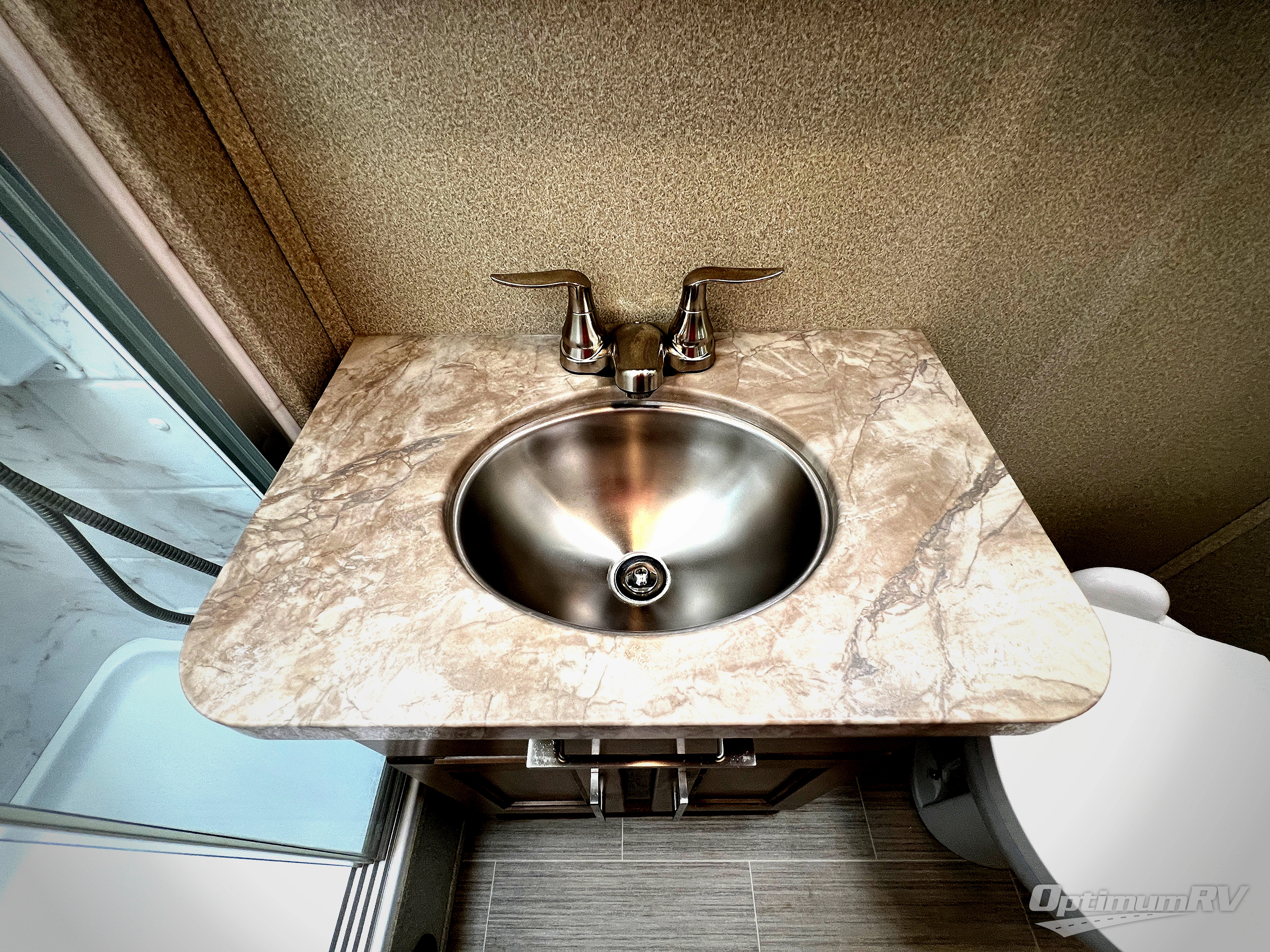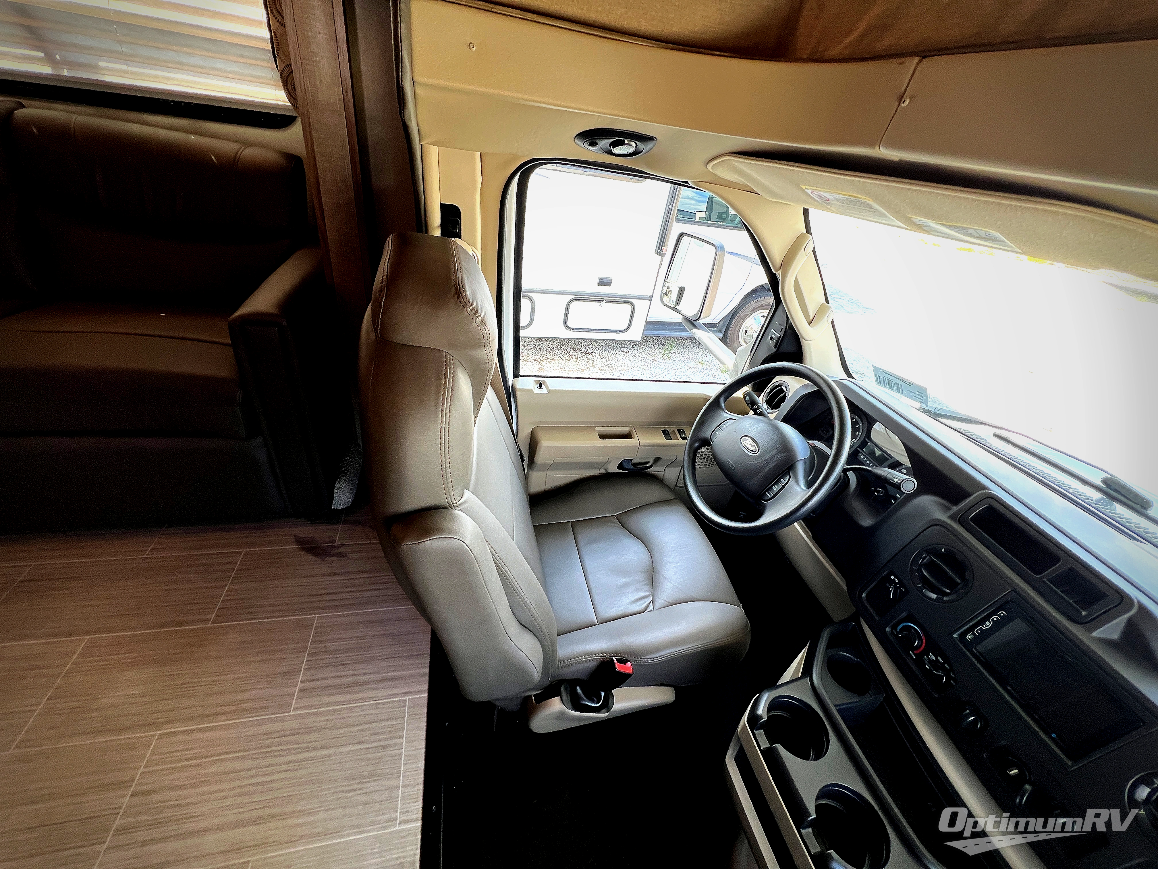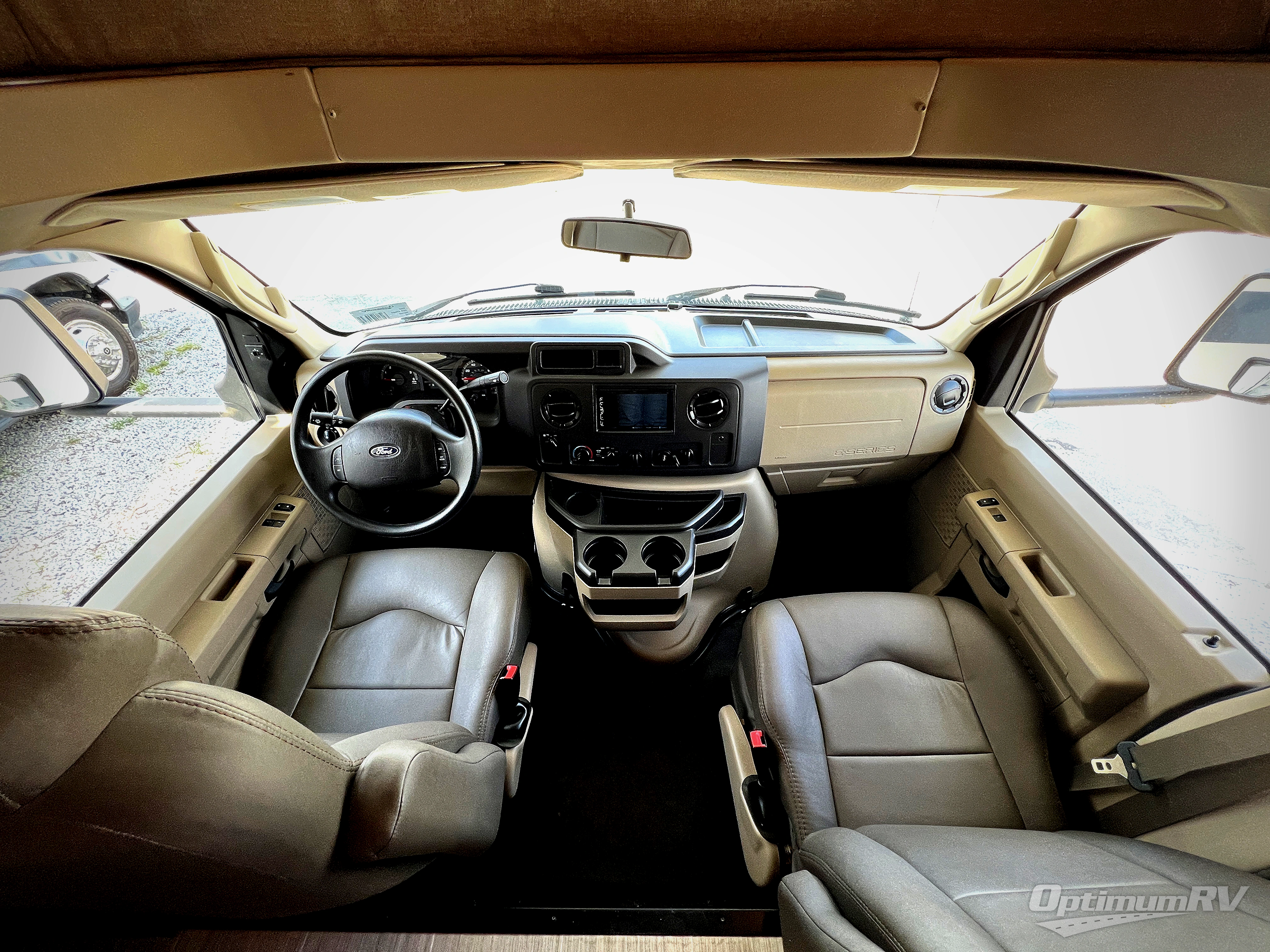 Each Odyssey Class C gas motorhome by Entegra Coach is built upon a Ford E-450 chassis with a Triton 6.8L EFI V-10 305 HP engine with 420 lbs/ft. torque to power any trip you have planned. You'll appreciate the 7,500 lb. hitch with 750 lb. tongue capacity and 7-pin plug to bring the family car along and the 55 gallon fuel tank will keep you on the road for miles. Inside, you'll find linoleum flooring, a 32" LED HDTV, a Furrion all-in-one cooktop and oven, a residential microwave, plus large wardrobes in the bedroom for all your clothes. The models also include aluminum running boards, a 12V LED lit electric awning, high-output marine-grade exterior speakers, plus an outside shower to wash off your hiking gear.