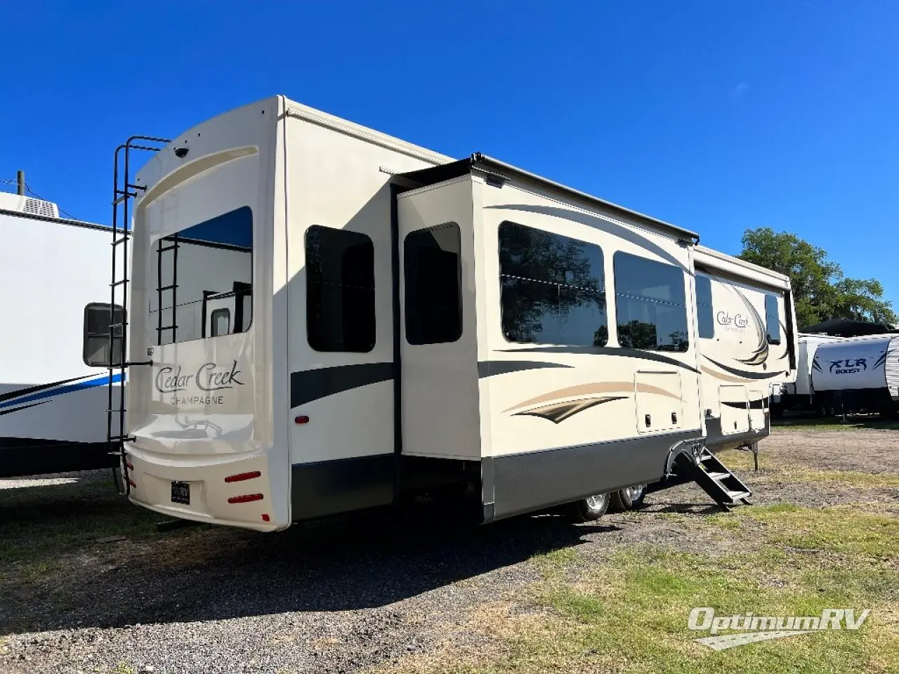 As the smart choice for the experienced RV'er, the Cedar Creek Champagne Edition fifth wheel by Forest River delivers luxury all throughout its all-aluminum super structure. From the Nev-R-Adjust® brakes and E-Z Lube® heavy-duty axles to the automatic 6-point hydraulic leveling system and keyless entry, the Cedar Creek Champagne Edition will never disappoint! Residential amenities are located throughout the interior, and one exceptional feature that will make vacationing in a Cedar Creek even more convenient is the central vacuum system with an extra port in the front storage compartment.