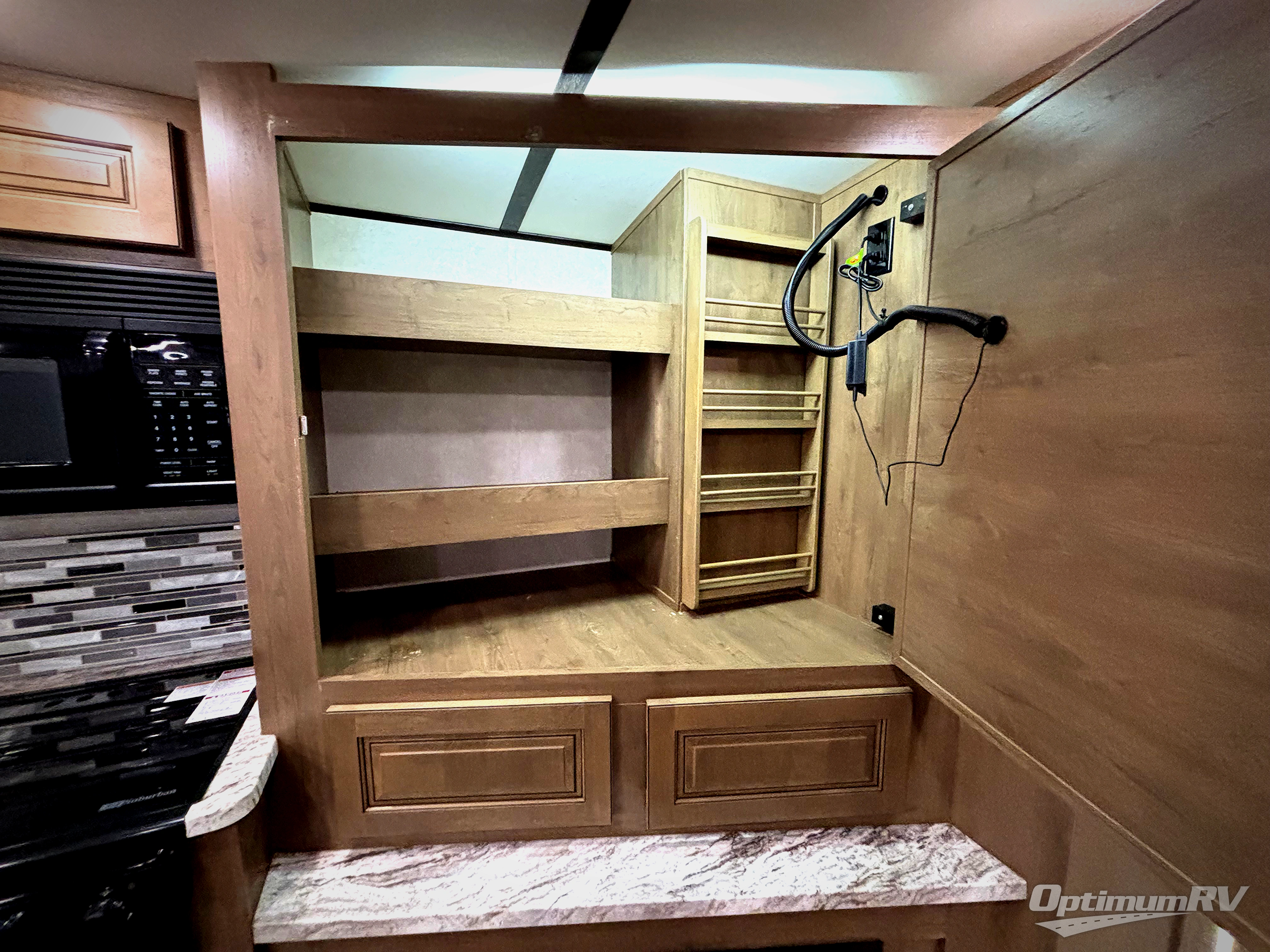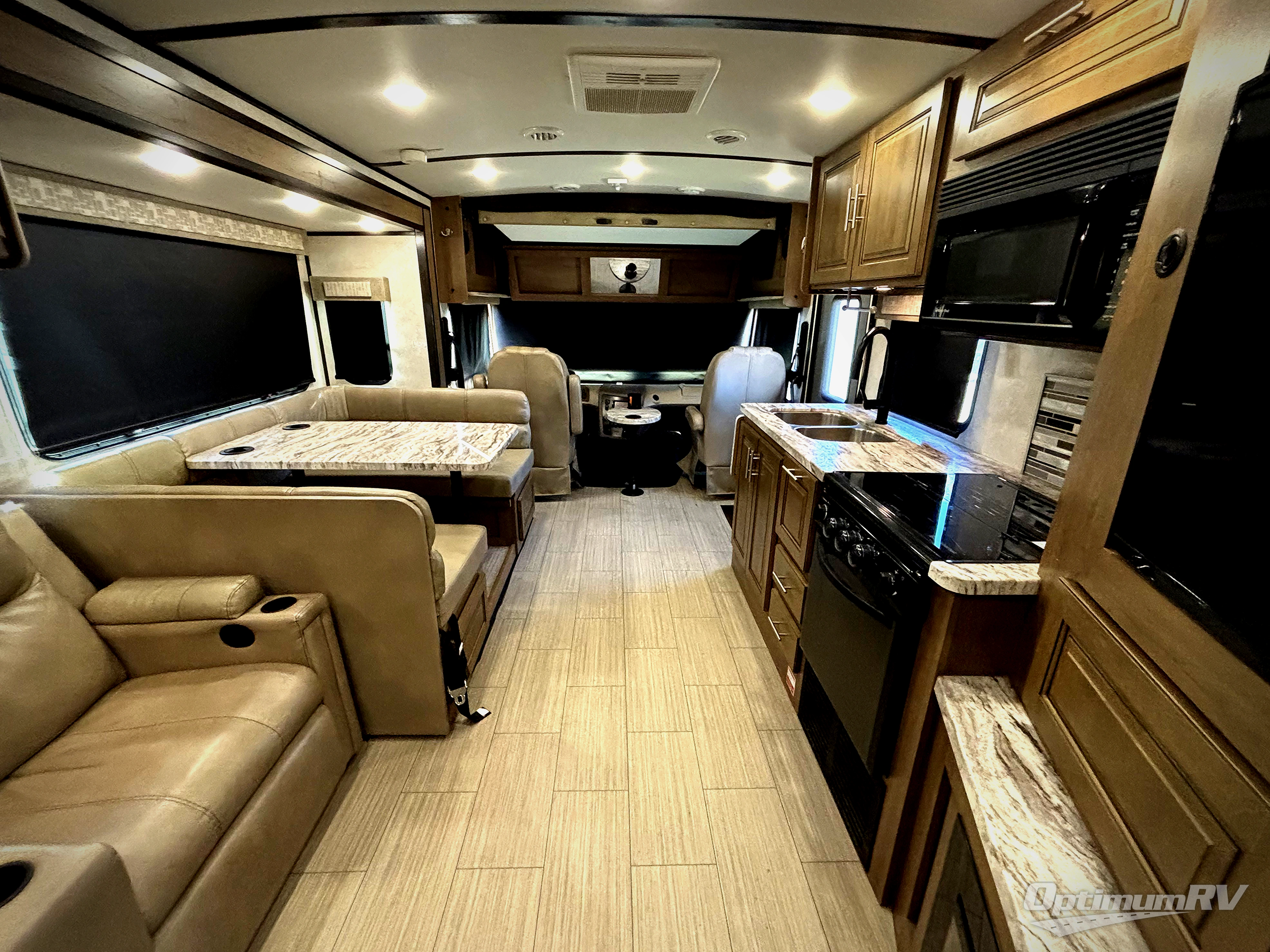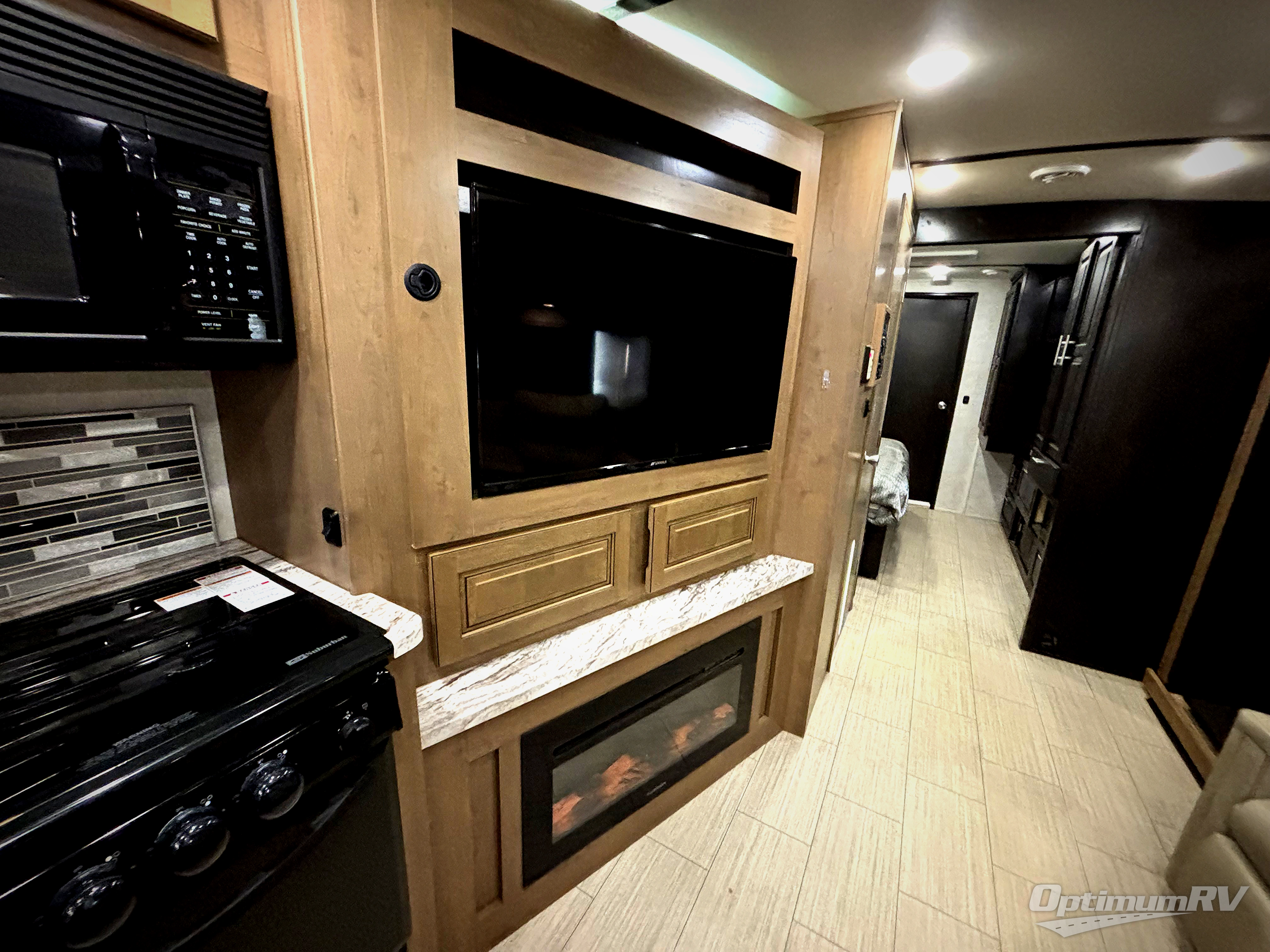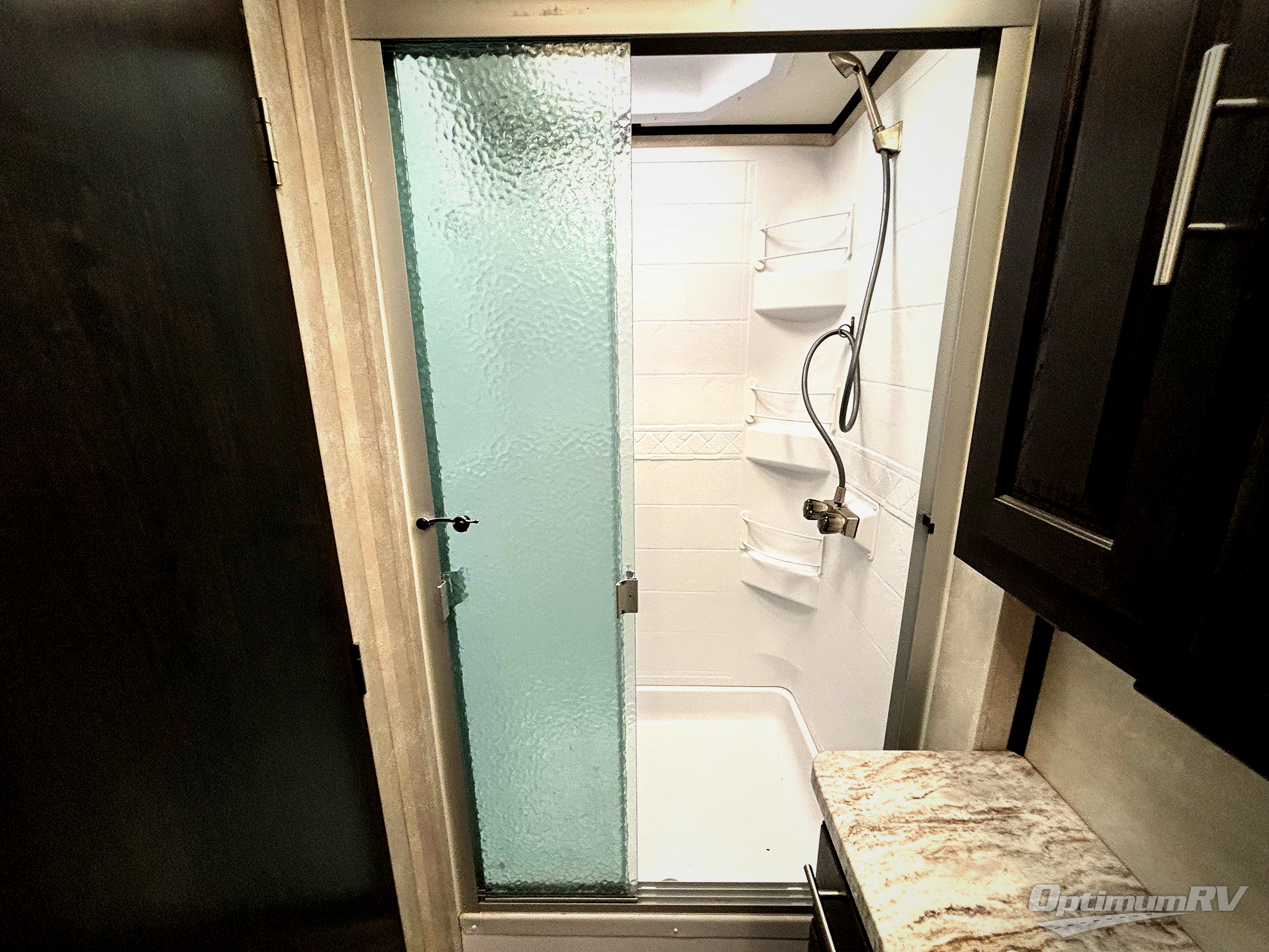 Whether you are driving down the road in comfort or sleeping in your own king-size bed, you will enjoy every minute you get to travel in this coach. You even get to skip the public stops when you have a full bath and a half bath on board. You can quickly set up the power awning to relax outside while watching the outdoor TV or you can take a walk around the campground to start planning your activities. You might have decided to add the washer and dryer option so a load of laundry might even get done. Once you are ready to fill your tummy, the full kitchen offers everything you need, plus a residential microwave. You might even decide to relax on one of the theater seats after dinner as you watch the big game on the LED TV.