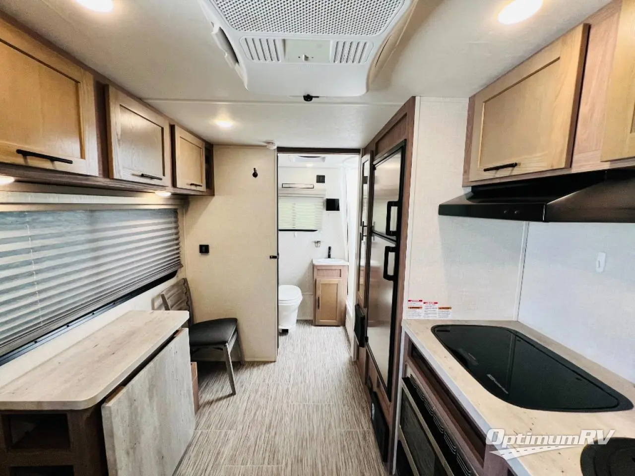 You will have a living area with a sofa to relax on during the daytime and a queen Murphy bed at night all in the front of this trailer. You can make meals using the two-burner cooktop and dine at the chairs with table in between when you aren't outside under the 11' power awning. You will surely appreciate all of the storage throughout including inside the pantry, overhead cabinets, and in the rear bathroom's wardrobe. And if that's not enough, the exterior pass-through compartment is available.
