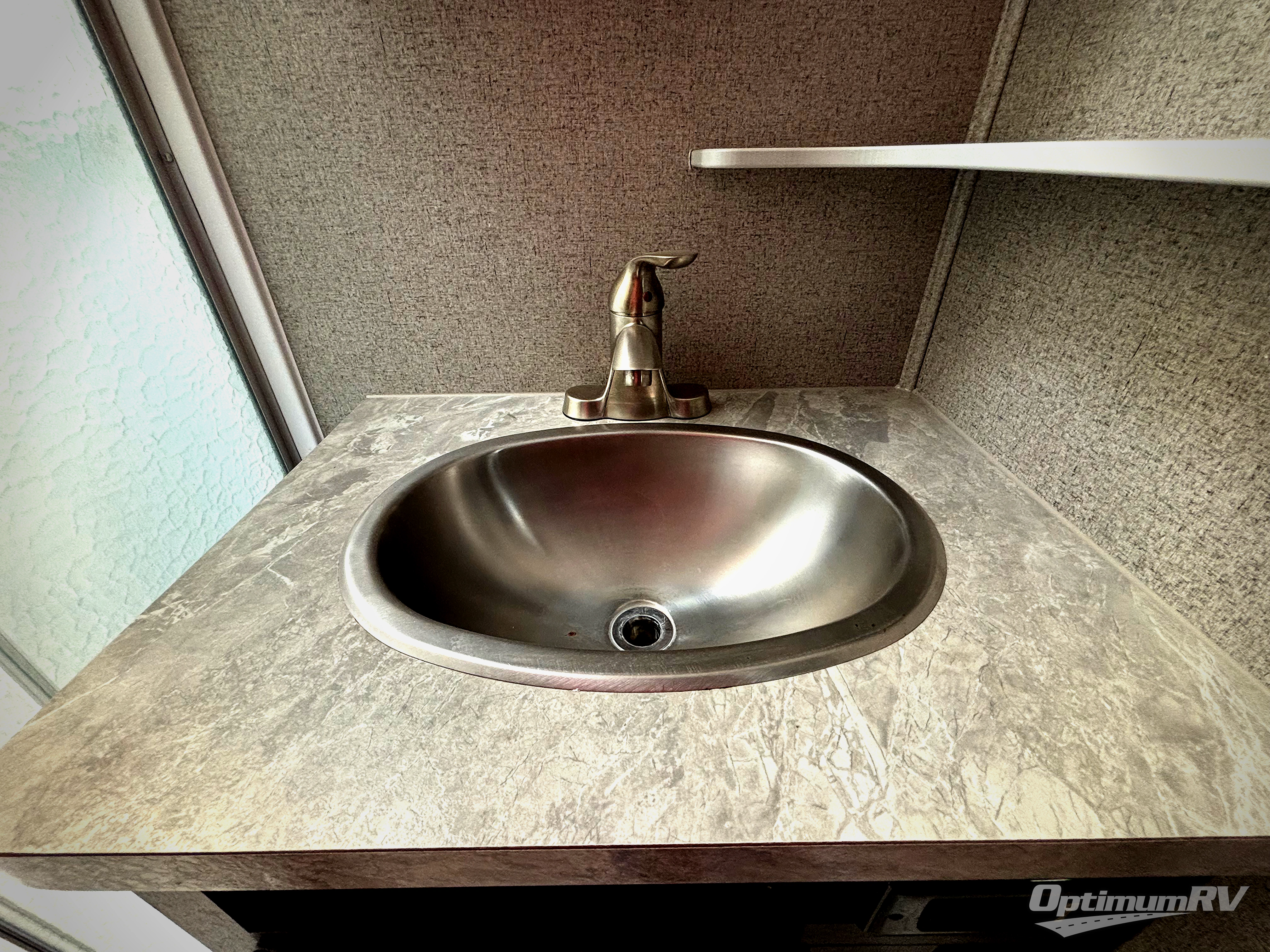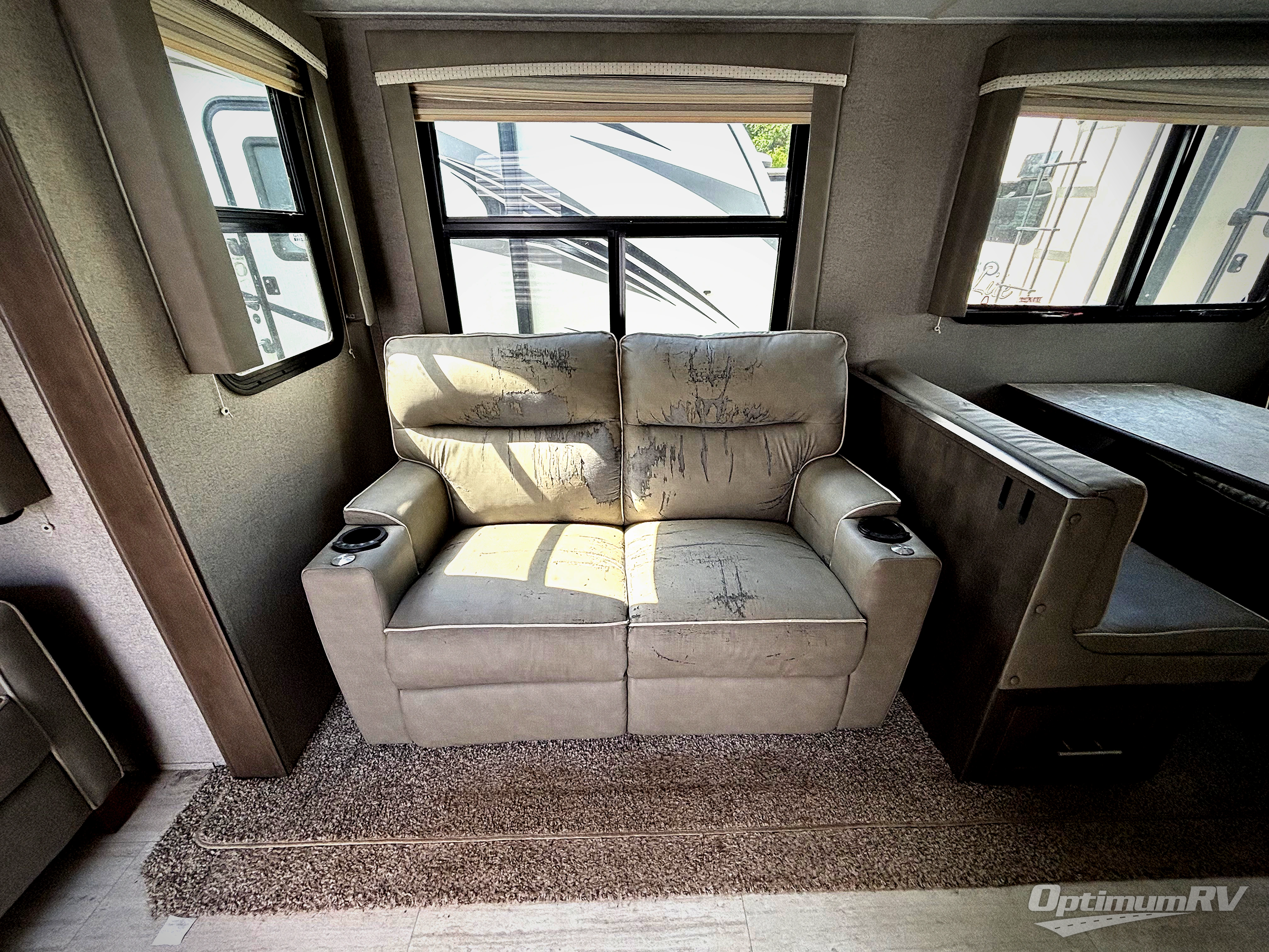 This travel trailer includes many at-home comforts and all the conveniences you need while camping with family. The front kitchen includes ample counter space and the pantry will come in handy for paper goods and snacks. You'll find comfortable seating space on the dinette booth, hide-a-bed sofa, and theater seat and the LCD TV with a fireplace will provide all your entertainment needs. This model features a rear private suite with its own exterior entry door, access into the dual entry bath, and a space that has been prepped to add a washer dryer if you choose.