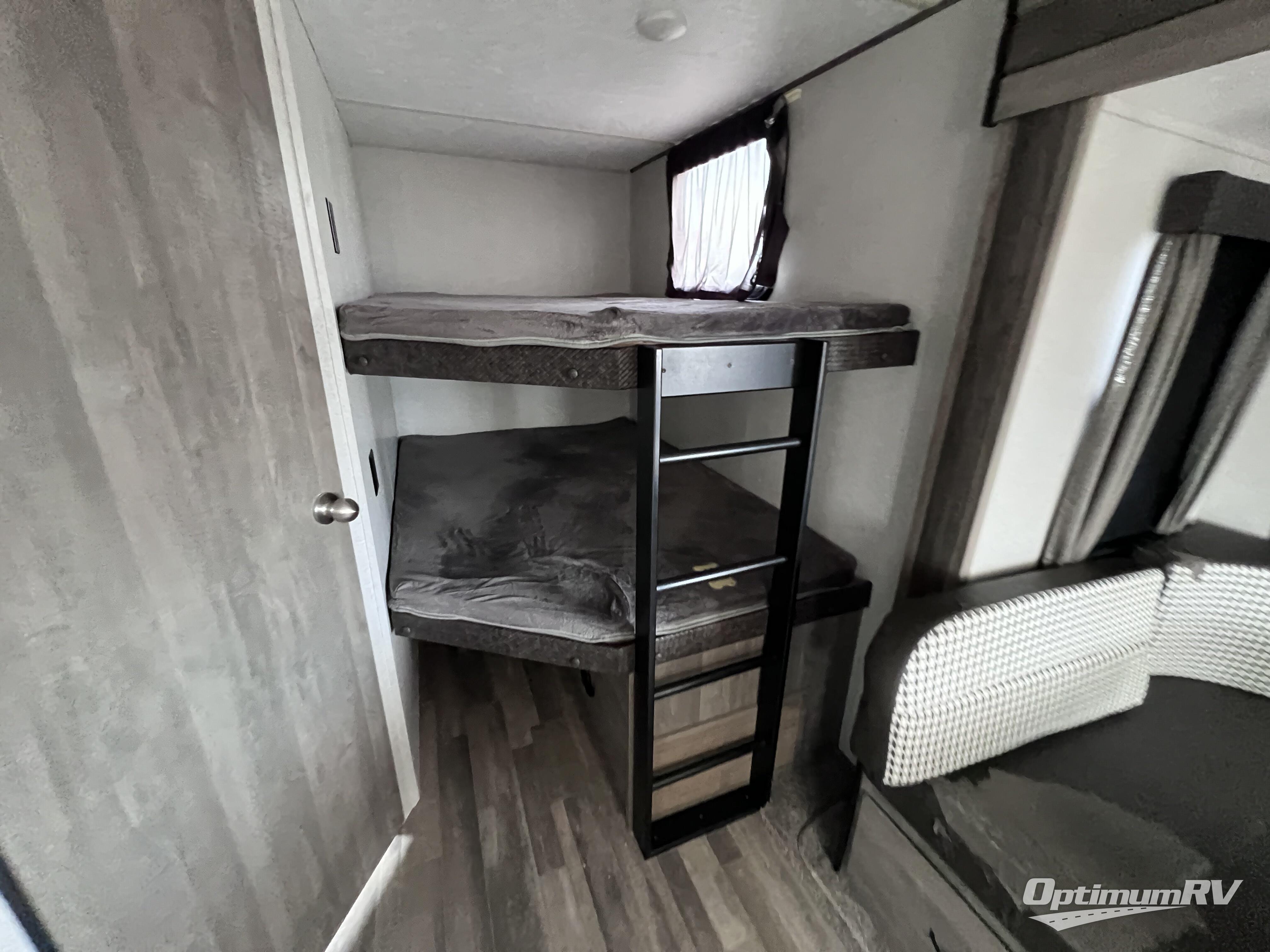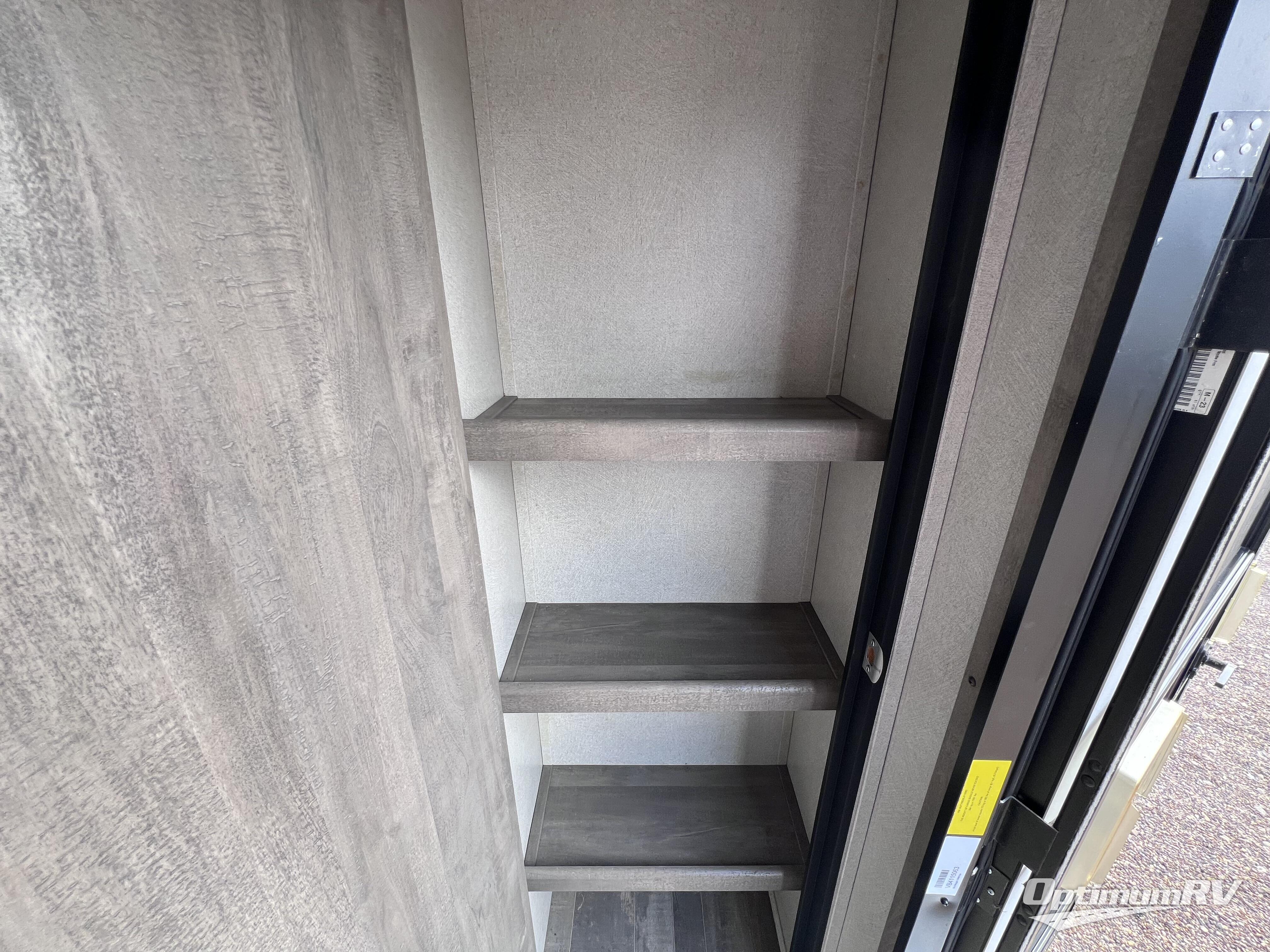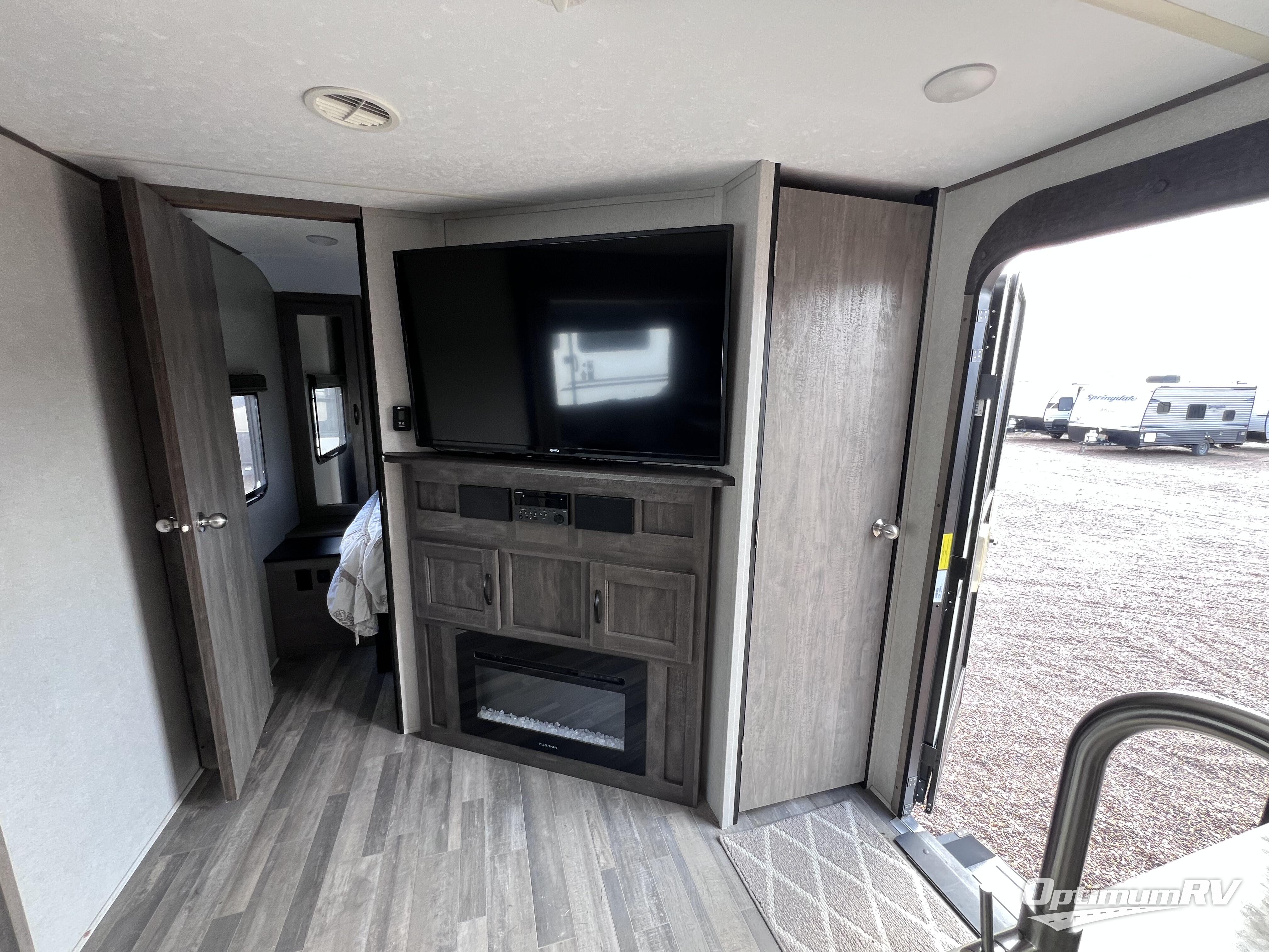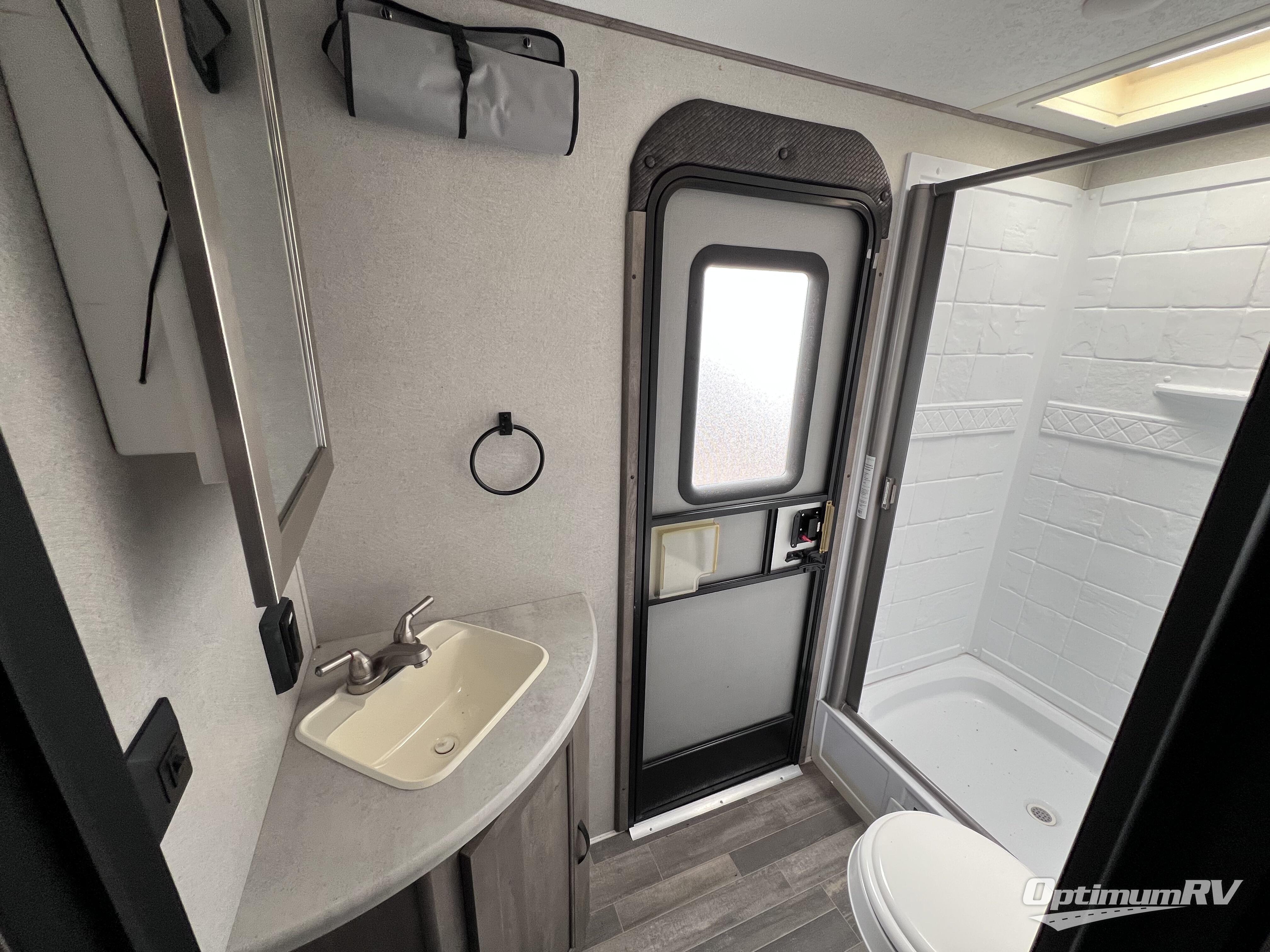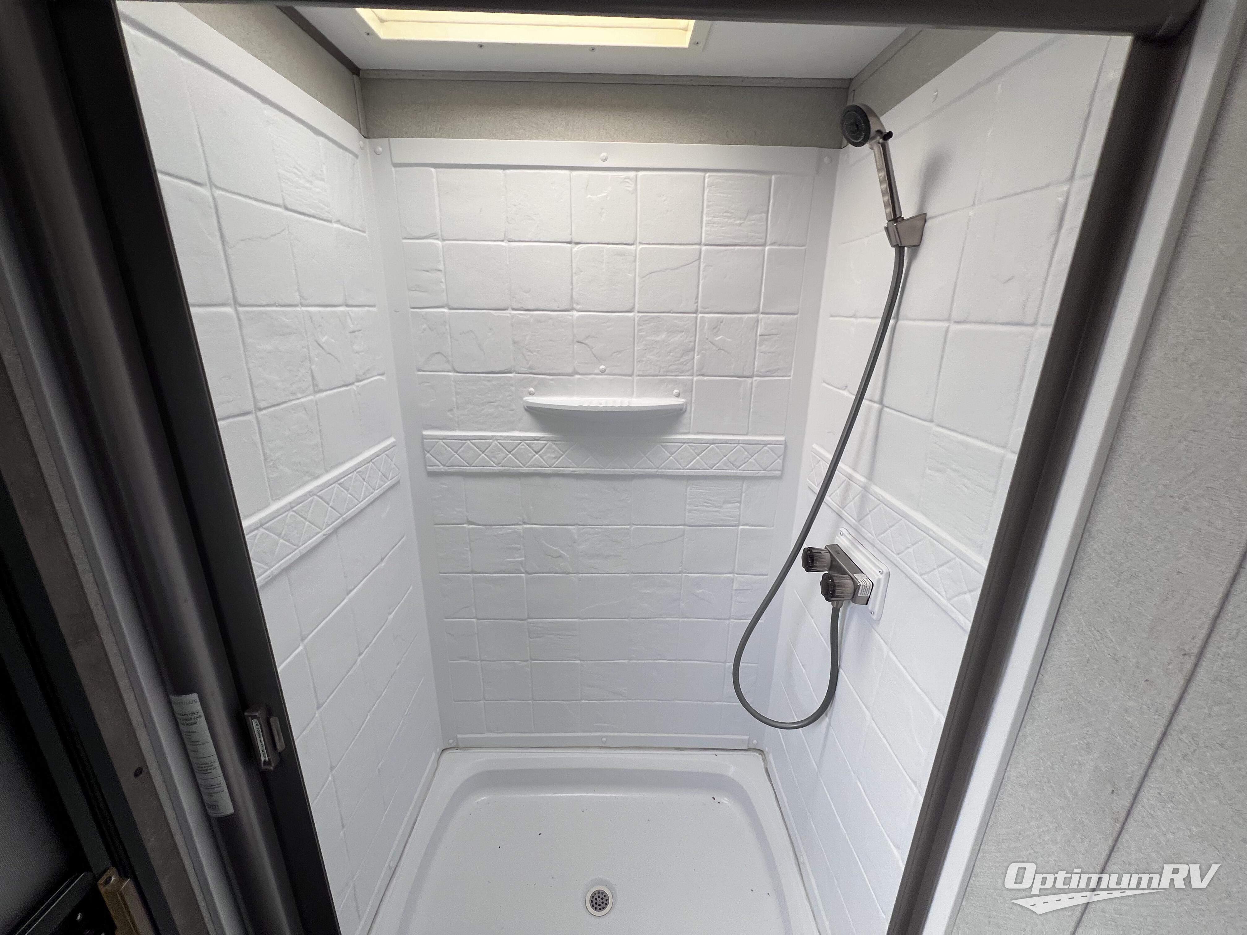 You can choose to enter the main entrance up the Sure-Step entry steps to hang your jacket in the entry closet on your way to the front bedroom, or enter directly into the full bathroom from the second entry door. You can quickly return outdoors to cook on the outside kitchen with spray port, relax under the 20' awning with LED light for night time use, and grab your charcoal, fishing poles, and such from the large pass through storage. If you need more appliances, head inside to the full kitchen which also includes a large pantry, and an oversized refrigerator. You will appreciate the natural light from the sky light, and the oversized panoramic windows in the slide out which houses the U-shaped dinette and sleeper sofa. And don't forget the kid's favorite spot, the double size bunks with a ladder.