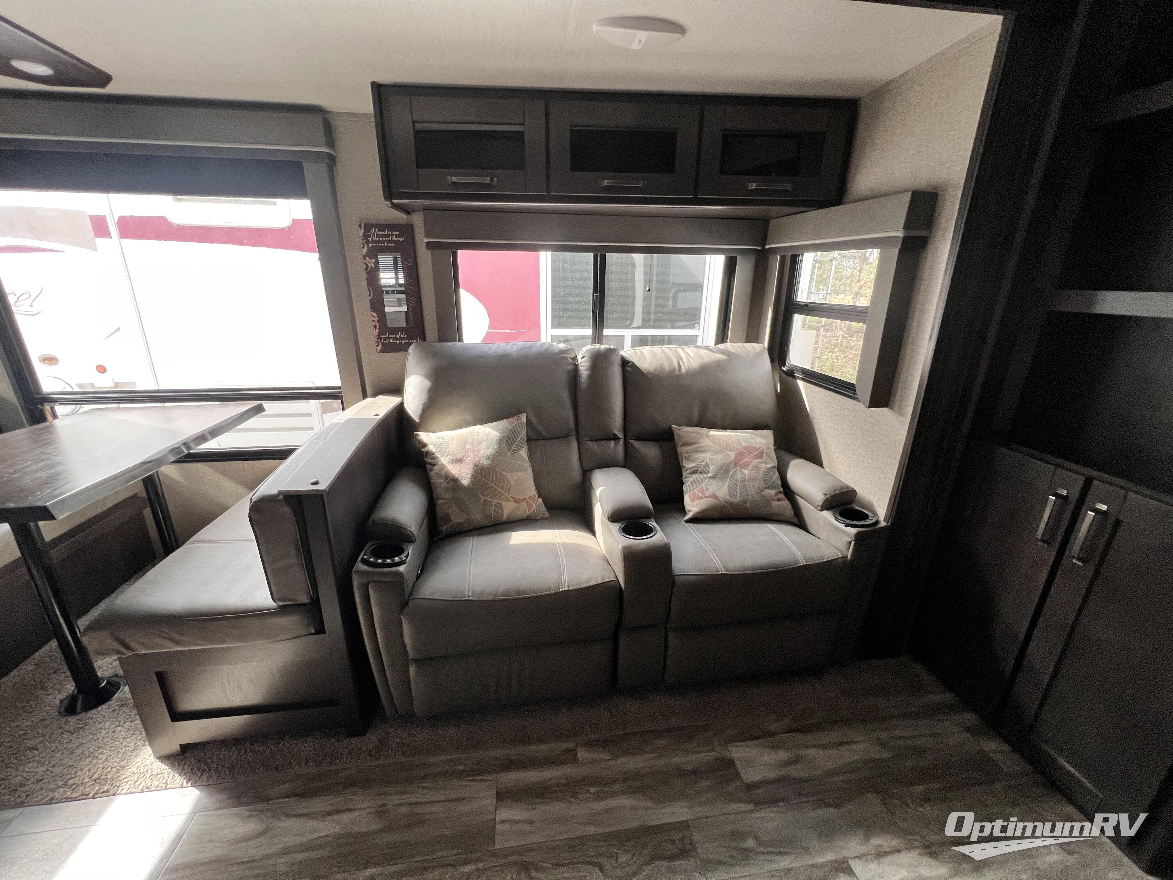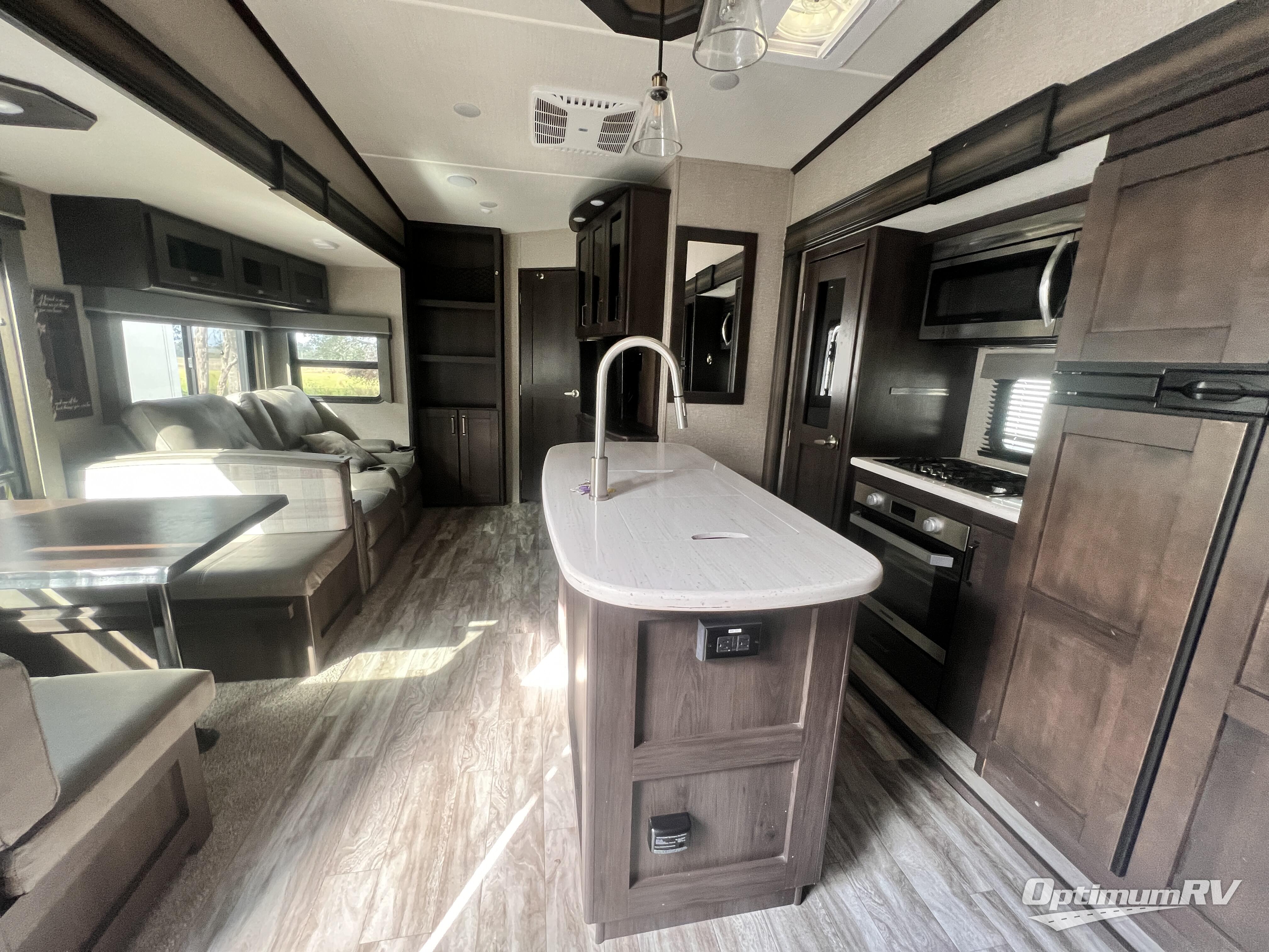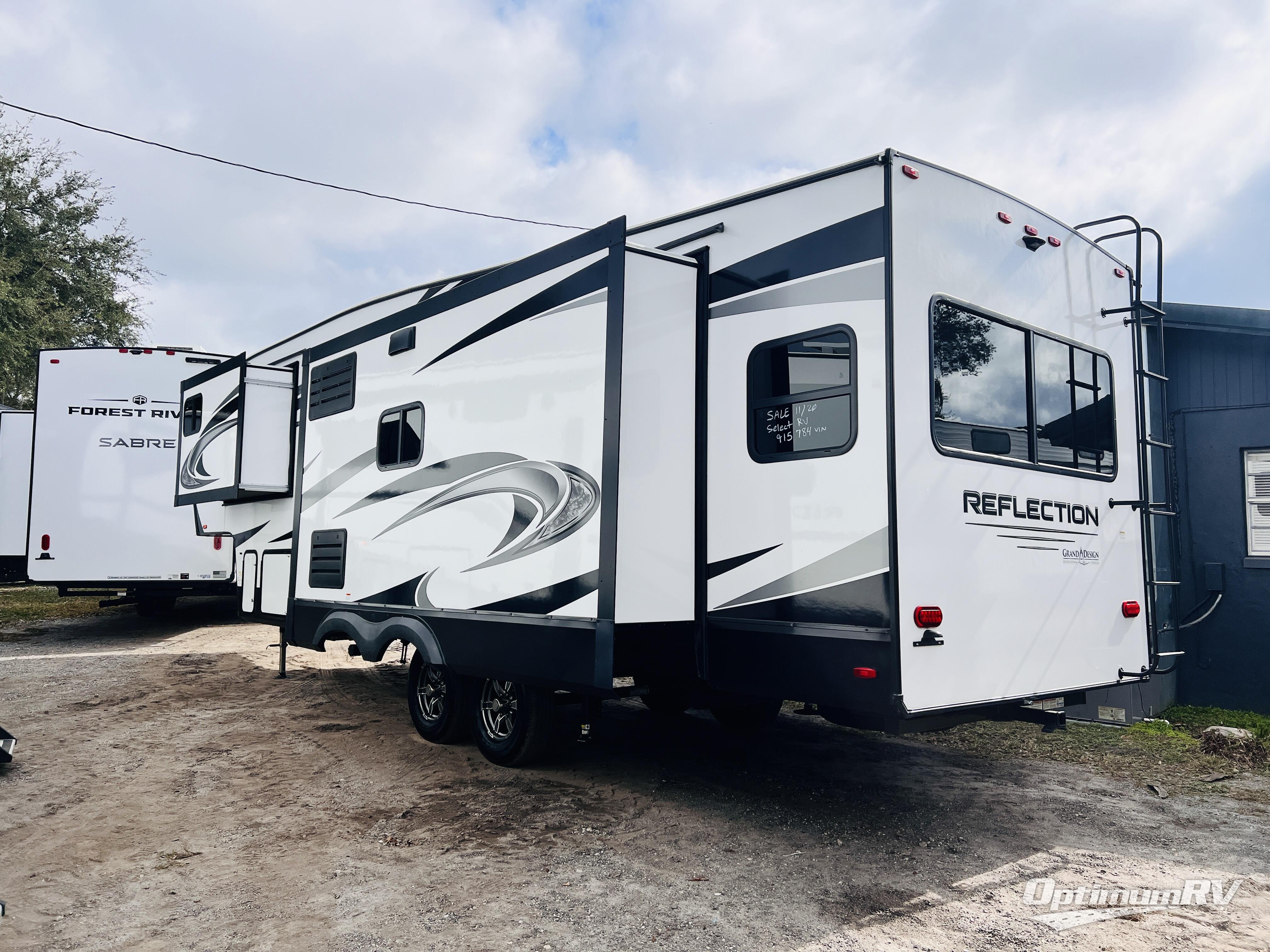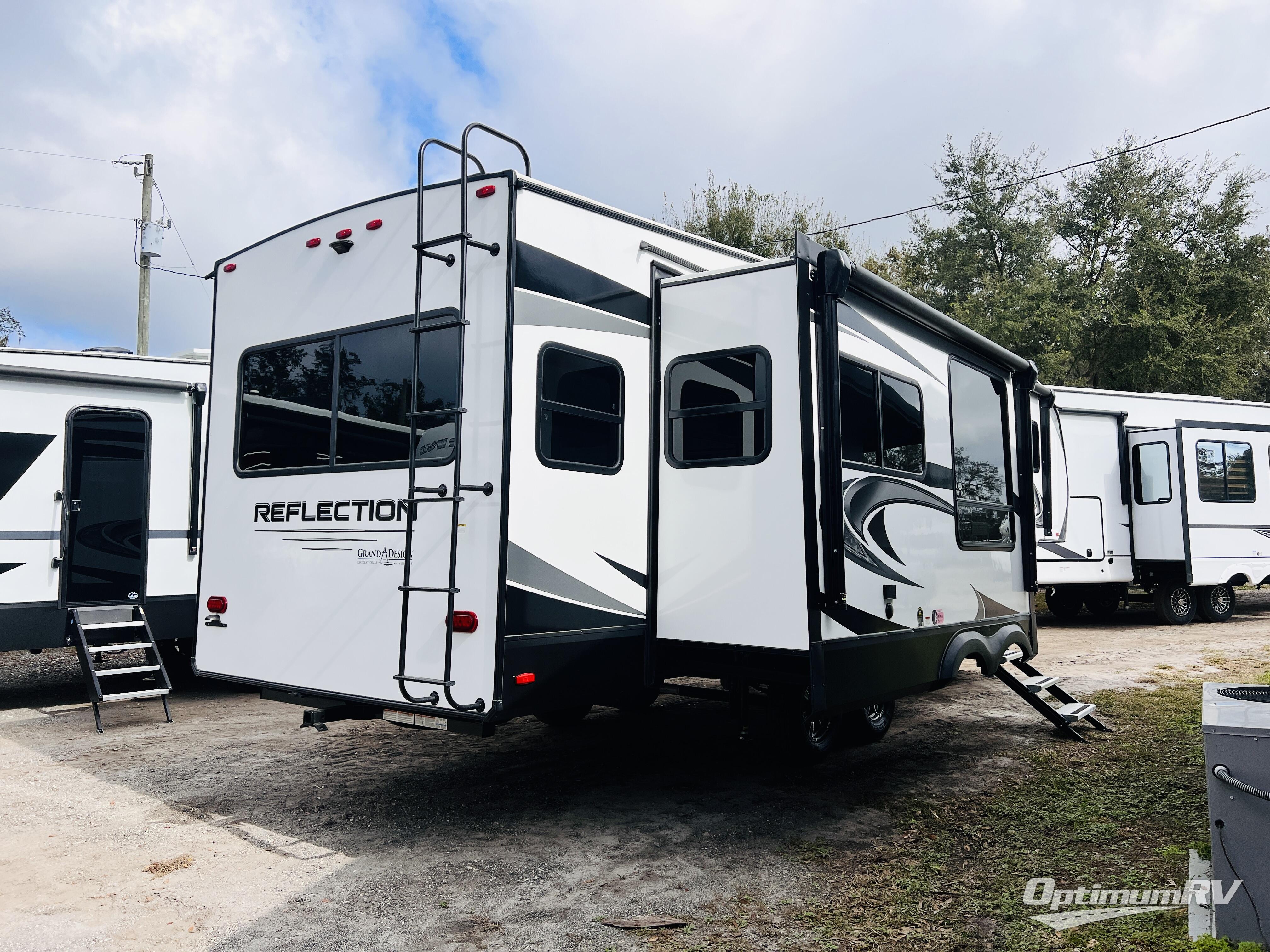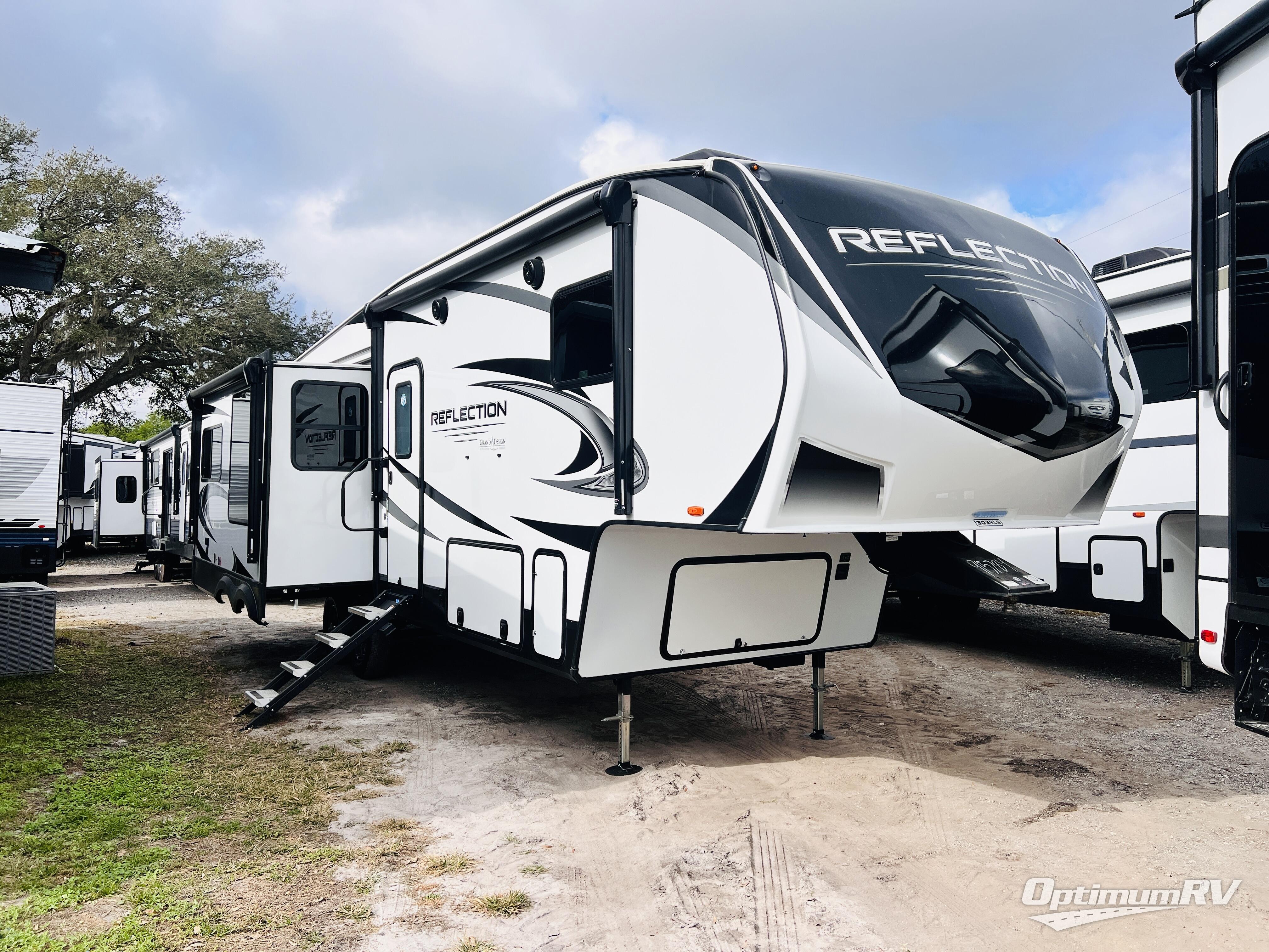 Each Reflection fifth wheel by Grand Design offers luxury along with easy towing to your favorite destinations with the aerodynamic front cap including Max Turn Radius. The Universal All-In-One docking station, LP Quick Connect, and One-Touch electric awning with LED lighting makes setting up and packing up easy for those weekenders or full-timers that like to move around. Inside, you will find the bedroom is complete with a residential queen mattress, a king size wardrobe, oversized underbed storage, and much more! The Arctic 4-Seasons Protection package allows you to camp anywhere and anytime of the year with its heated and enclosed underbelly, EZ winterization, dual attic vents, plus so much more. Come choose your favorite model today!