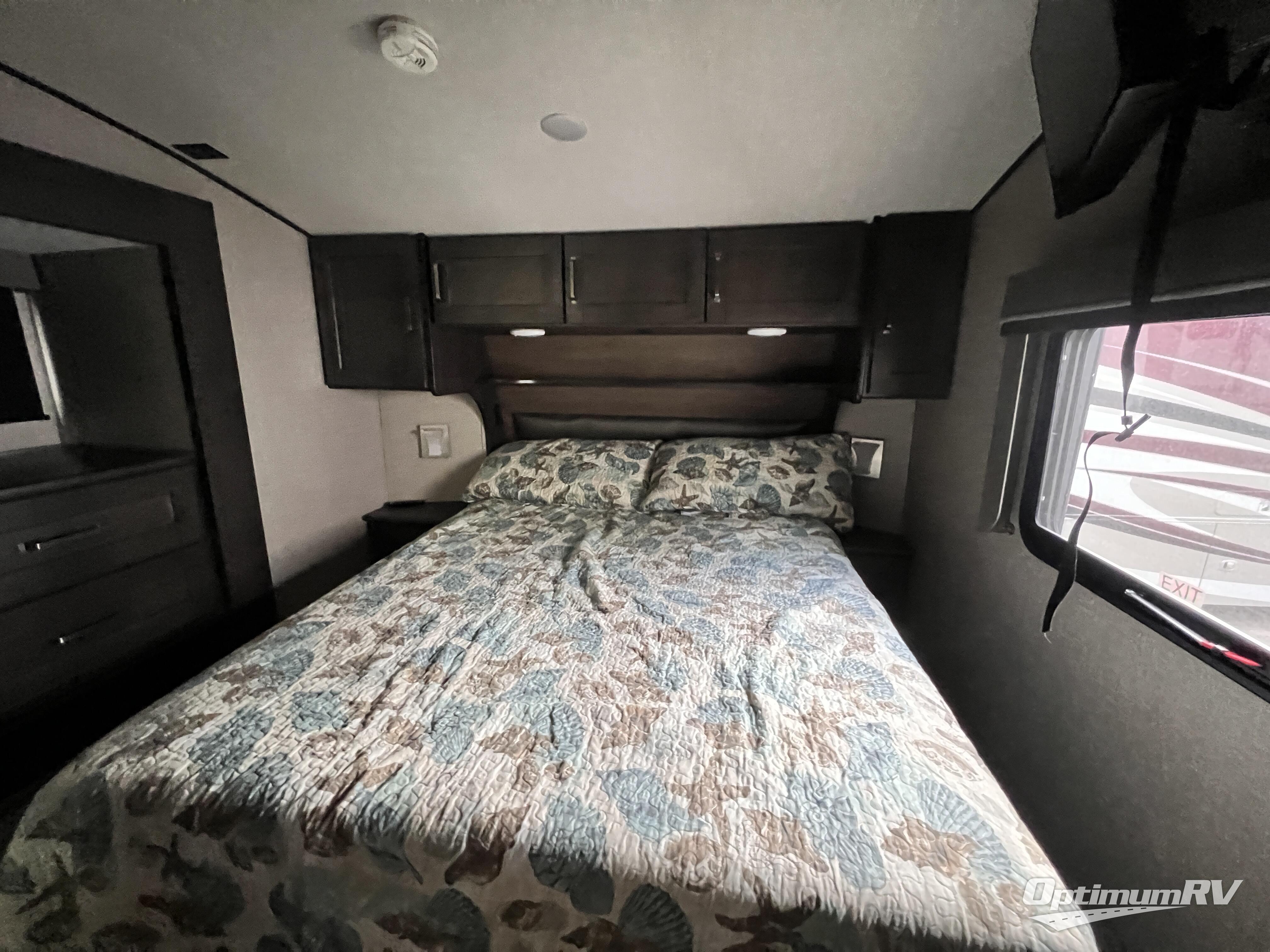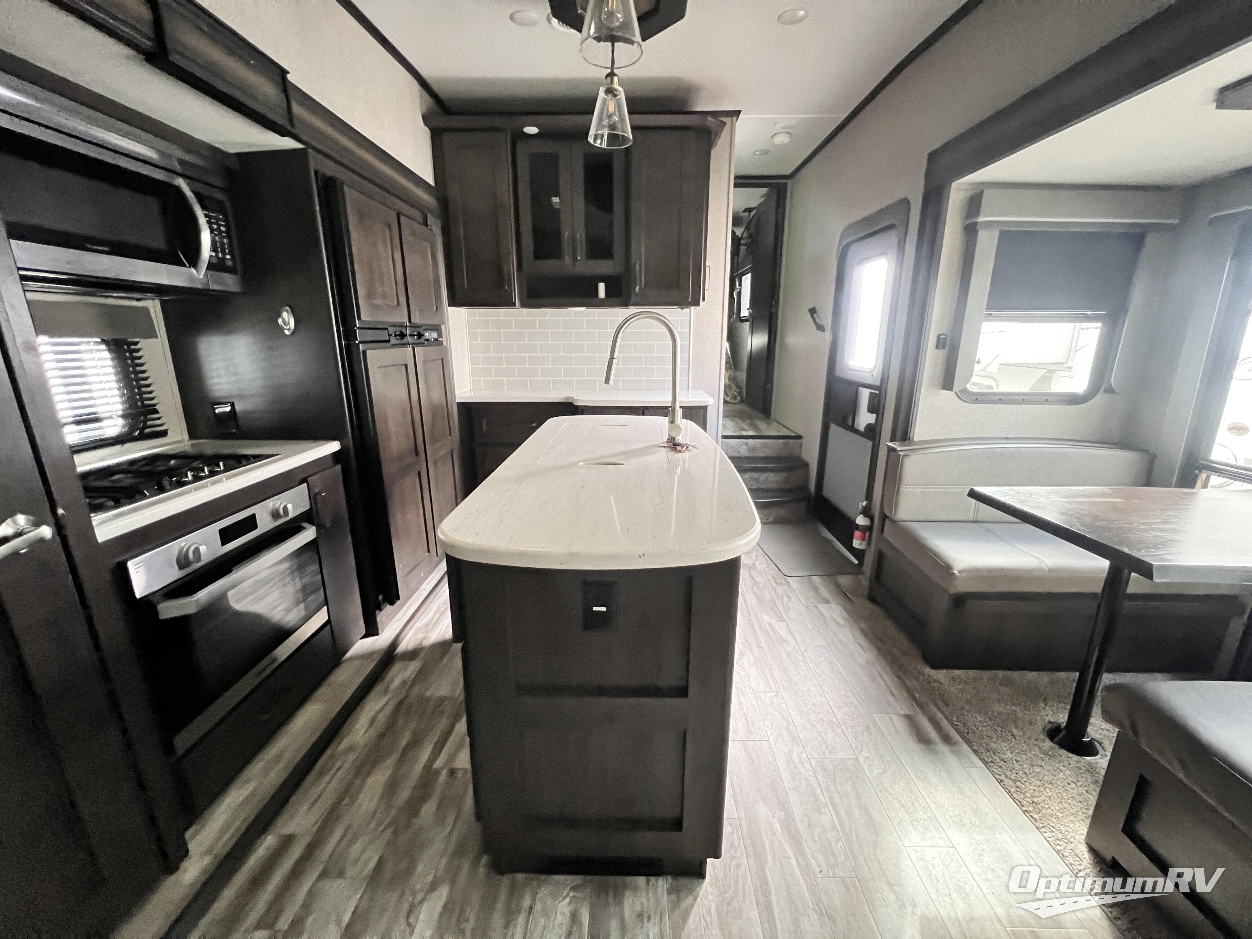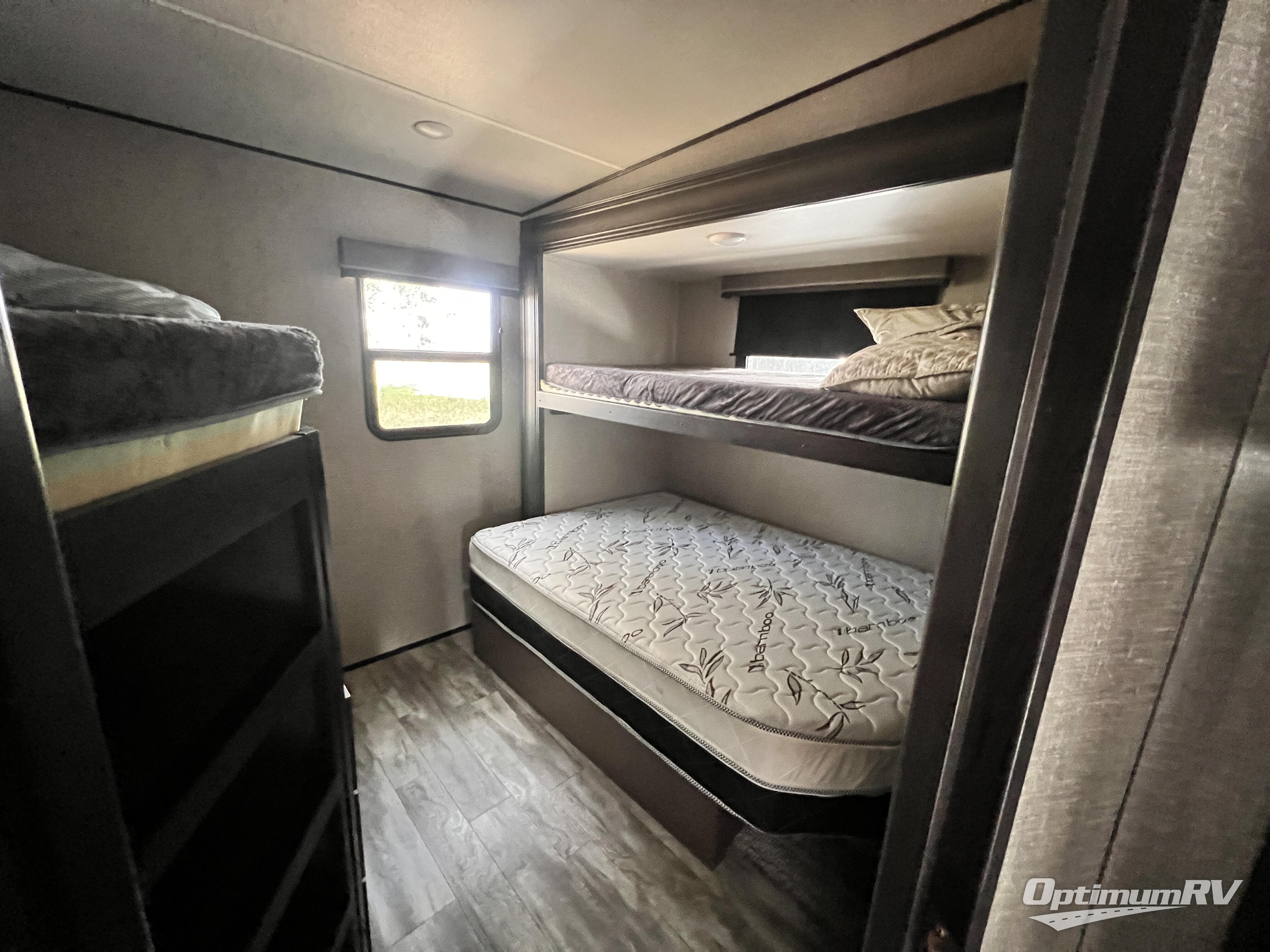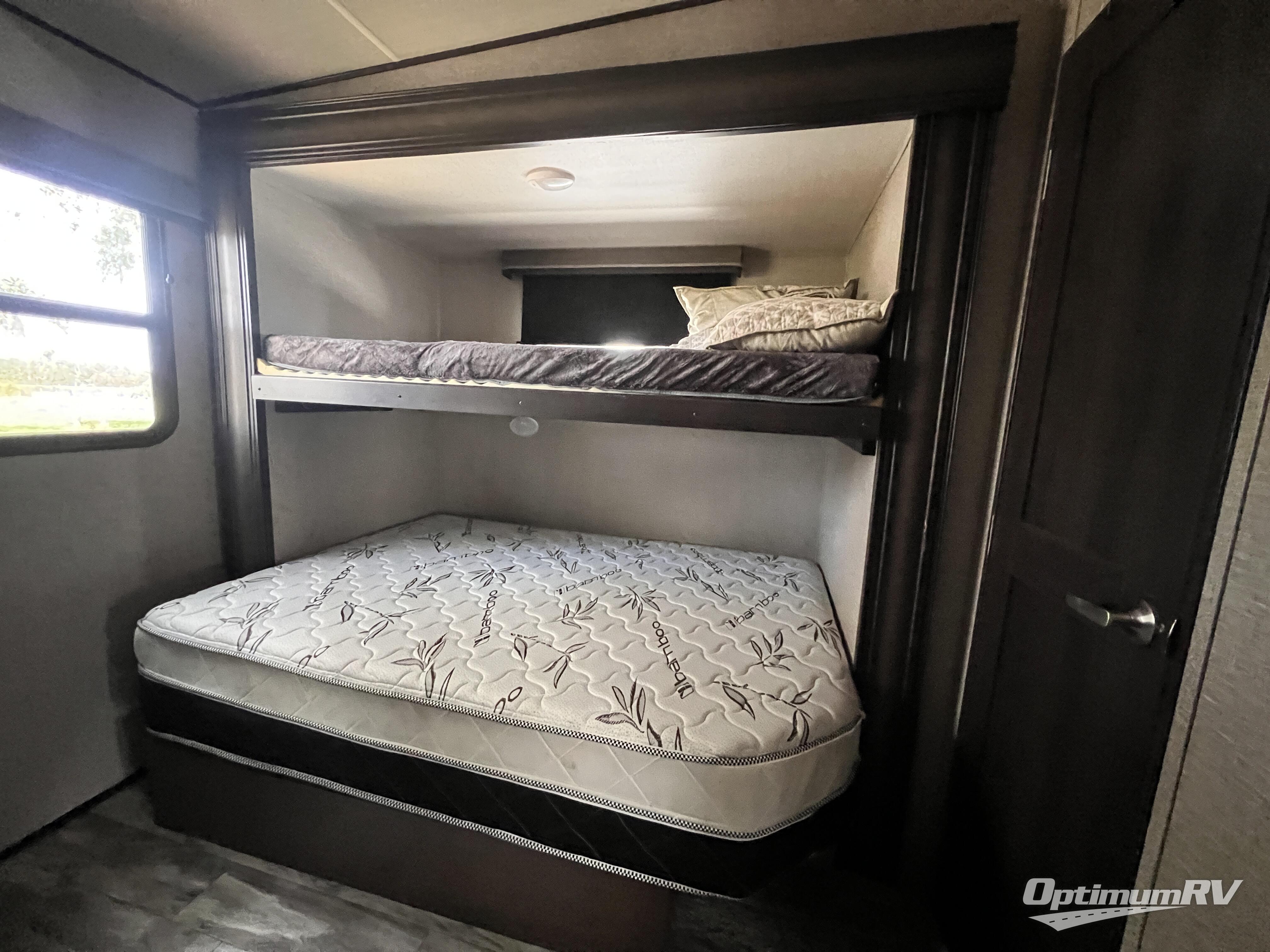 Have you been dreaming about traveling with your family to see the countryside? Well then, check out this Reflection fifth wheel! It has everything you could need to make your trip fun, from the front private bedroom with a queen bed, and access into the dual entry bath, to the rear bunkhouse that features a flip bunk above a tri-fold sofa and a bunk bed with a window and storage space below it for their clothes. There is also a half bath conveniently located just outside of the bunkhouse. The chef has the luxury of cooking inside or outside, plus there is a large sink at the kitchen island to easily wash the dishes. The exterior unobstructed pass-through compartment allows for more outdoor gear to be packed, and the two awnings provide extra protection from the elements. Your daydream is over, the perfect RV for you and your family is this Reflection!