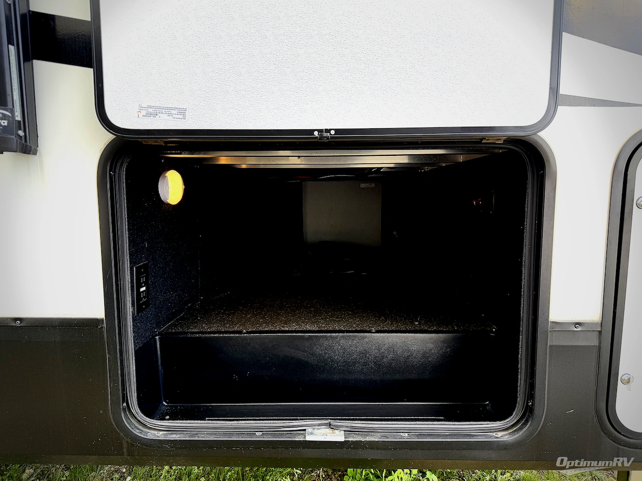 Your family is going to love camping in this decked out Reflection fifth wheel! It features not only one bedroom, but also a second bedroom for you to use it however you please with the upper bed above the tri-fold sofa and the desk for you to do some work if needed. The rear living area and kitchen offer plenty of seating, a large pantry, and all the appliances to make your favorite meals, plus a large sink to make your cleanup even easier. There is even extra sleeping space on the tri-fold sofa next to the 40" TV and fireplace. And when you need to escape the chaos, head into the front private bedroom where you will find a queen bed, an area prepped to add an optional TV, and a large wardrobe that is also prepped for you to add the optional washer/dryer so you can have clean clothes throughout your entire trip. Your search is over, this is the model for you!