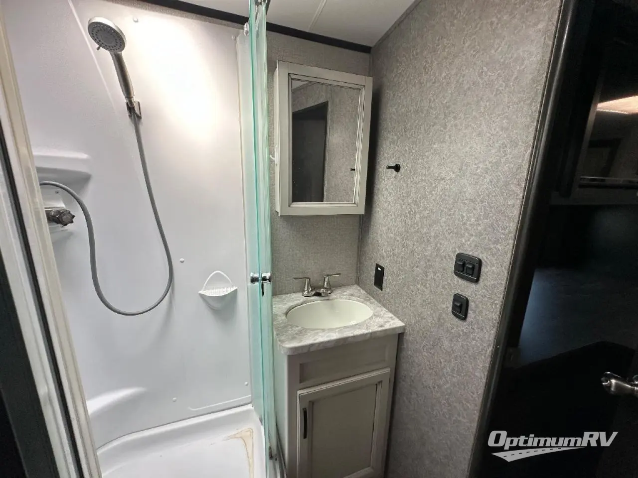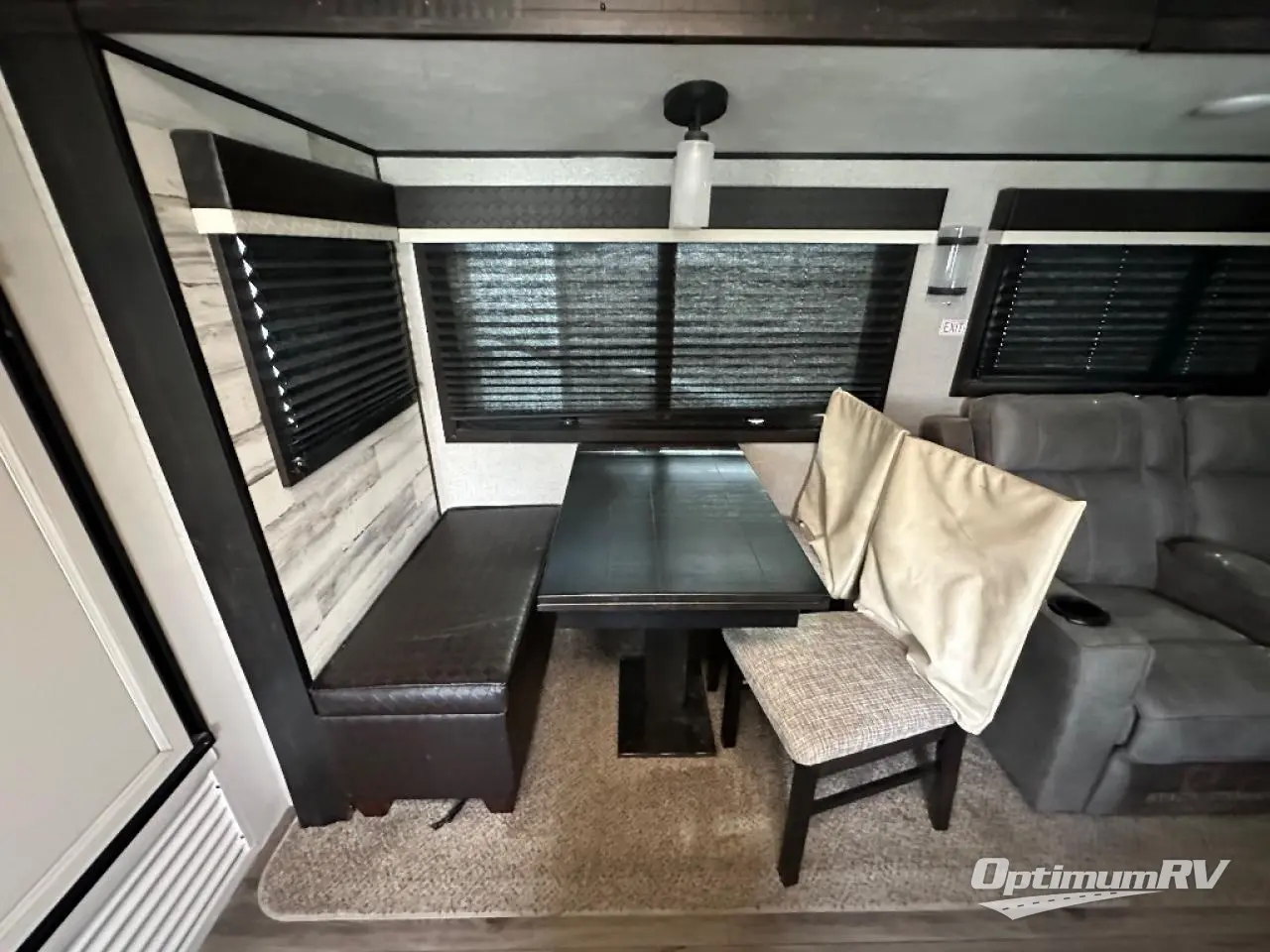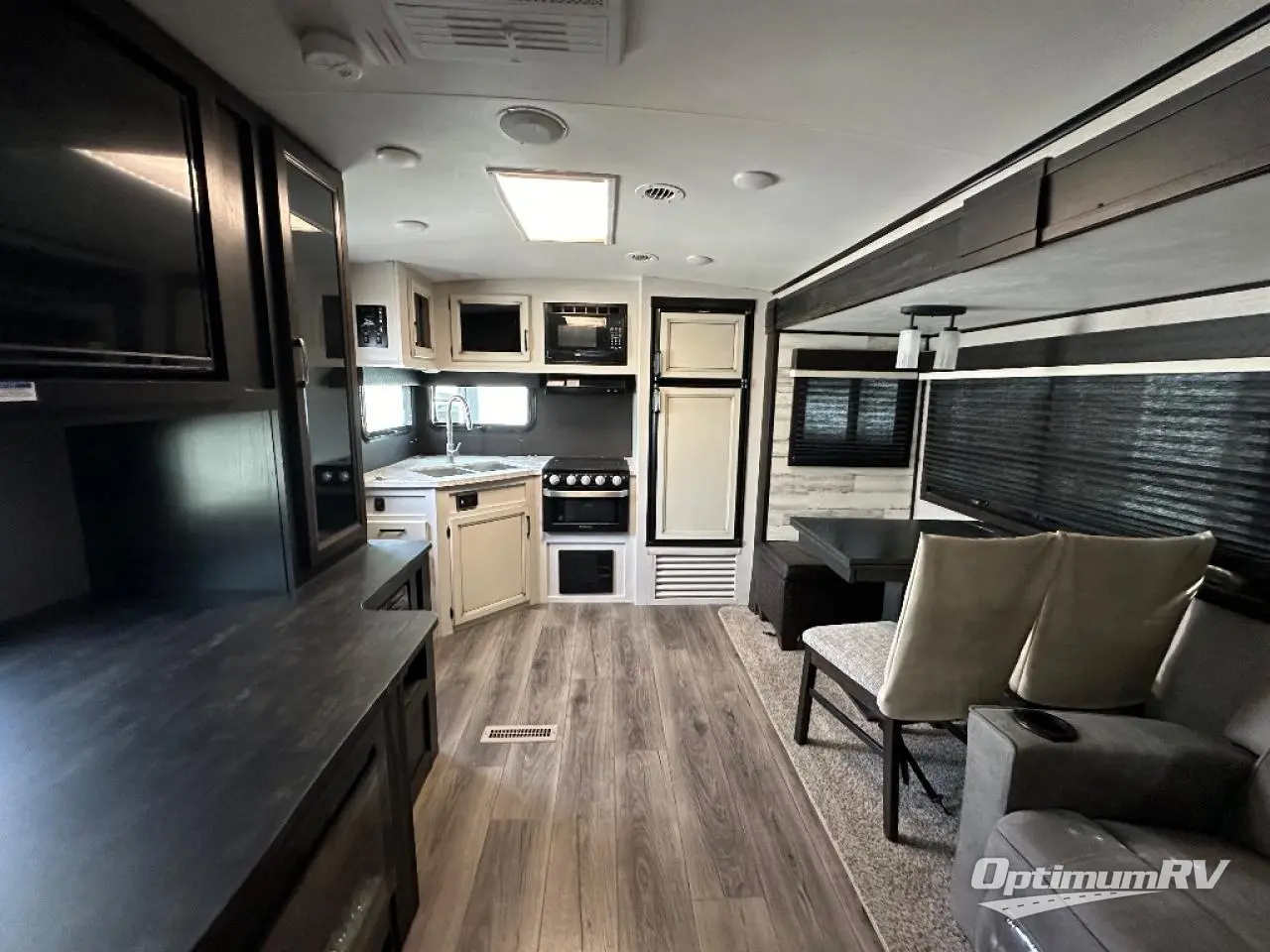 For worry-free family fun, take your next adventure in this White Hawk travel trailer. The booth dinette and tri-fold sofa add plenty of seating space to the living area so that you can enjoy a movie night on the 40" LED TV with the whole family, and the rear kitchen with a three-burner recessed cooktop with oven gives you the perfect space to create those movie-night snacks everyone loves. The walk-through bath gives you the extra room that you need as you get ready for the day, and the skylight brightens up the entire space with the sunshine that it brings in each morning. Because this trailer has two entry doors, the front bedroom is able to have its own private entrance to and from the trailer.