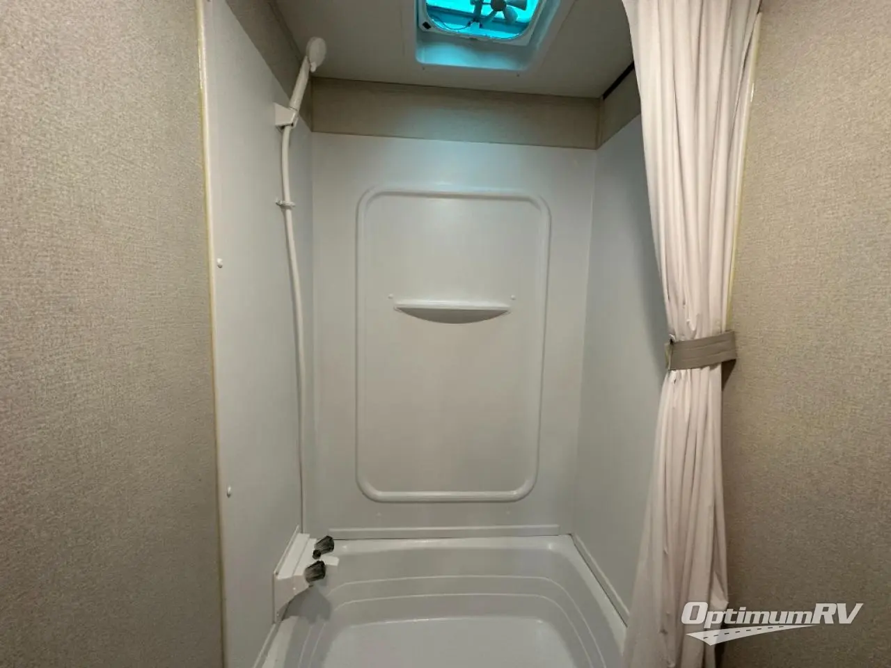 With sleeping for nine, this Keystone Hideout is the perfect camper for a larger family to enjoy. This model offers a full bathroom where you can easily and privately get ready for the day. Sleeping space for everyone can be found with the set of double-size bunks, a queen-size bed in the private bedroom, a booth dinette, and a sofa. Throughout this model you will find shelf space, as well as overhead cabinets for all of your extra camping items, and the two bedroom closets will come in handy for holding onto those extra sweaters and hiking boots. In the evening if the weather is nice, you will want to sit out under the lighted adjustable power awning and enjoy the scenic sunset together!