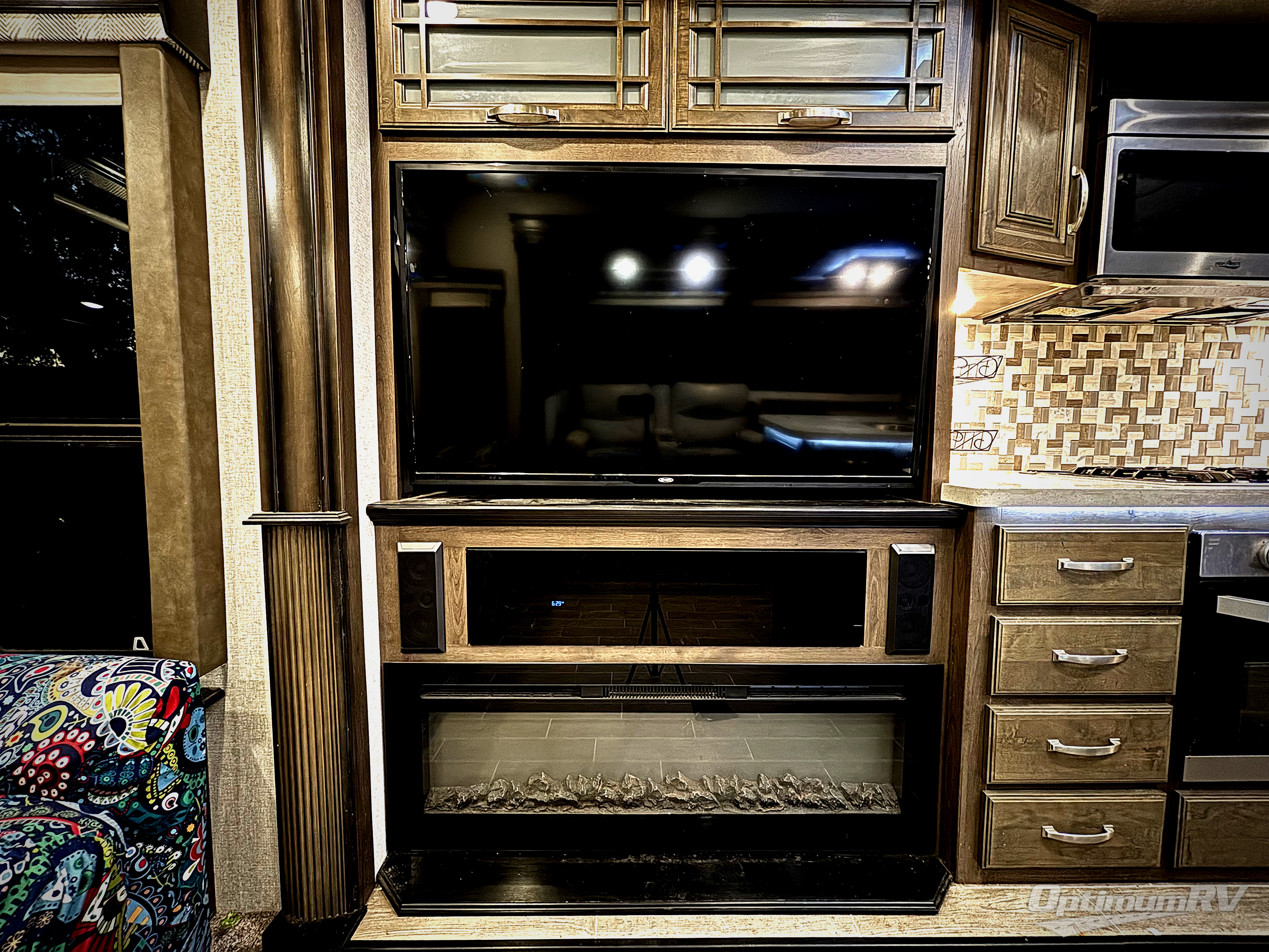 Watch your favorite show from the power theatre seating or the hide-a-bed sofa while the chef prepares a meal in the full kitchen including an island, a pantry, and a coffee station. The convection microwave will probably be a favorite appliance for many. You will also love your master bedroom with a slide out queen bed or choose an optional king, plus you will have plenty of storage for everything under the bed, within a dresser, and inside the closet up front. There is a space to add a washer/dryer option and the barn door into this room offers style and saves space. You may like to relax outside with protection from two awnings, and the 2" towing hitch might come in handy as well.