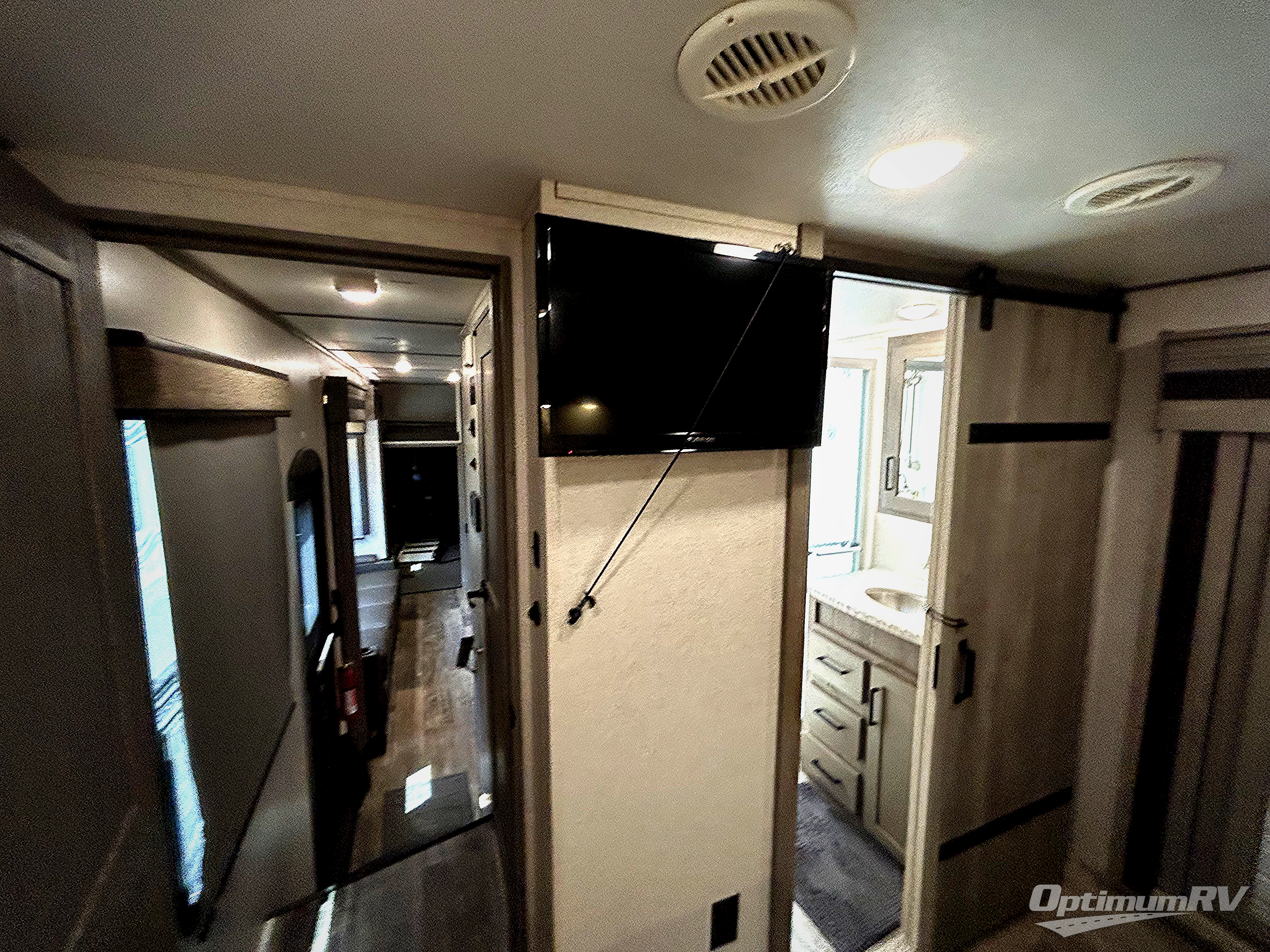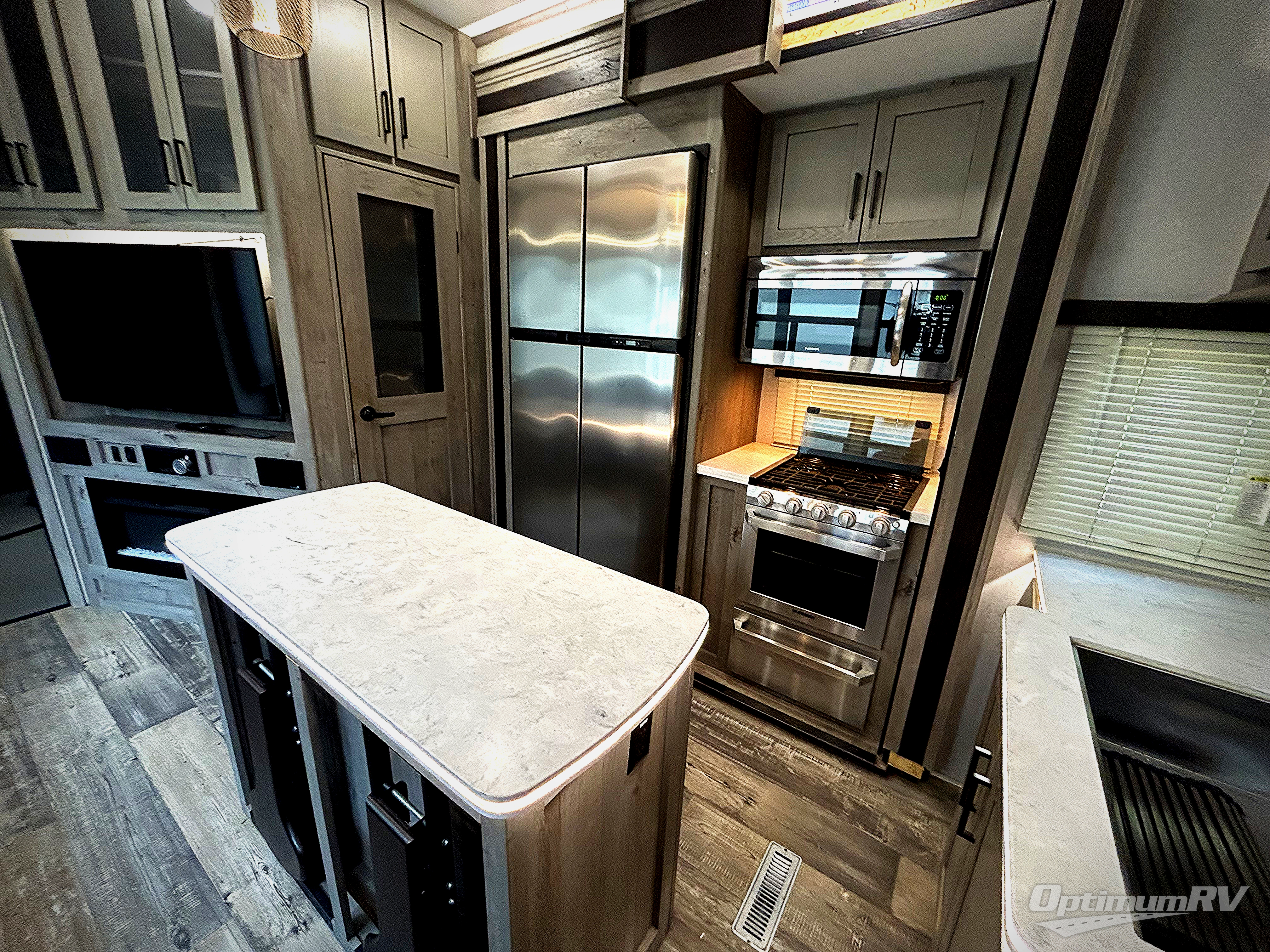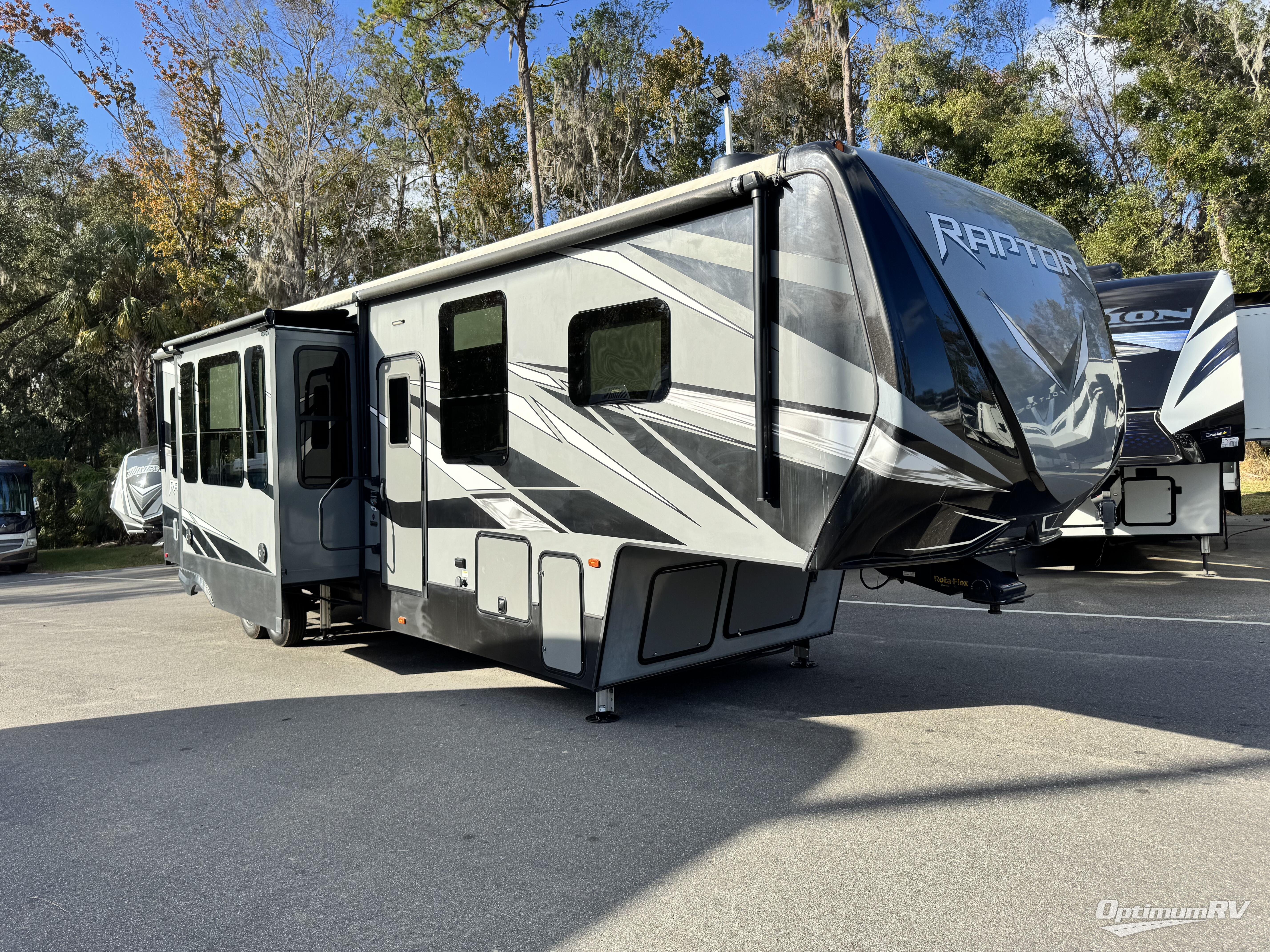 Each Raptor toy hauler fifth wheel by Keystone is built with the 6-point hydraulic auto-leveling, an on-board fuel station, the Ram air ventilation system in the garage, Equa-Flex Trailair suspension, frame-welded tie downs for your toys, and a heated and enclosed underbelly allowing you to travel 365 days if you like. Inside you will experience comfort, convenience and style with reclining furniture with heat, light and massage, USB ports in the sofa slide out box, wood crown molding, plus much more! Why limit yourself, choose the Raptor that fits your adventurous side and start your engines!