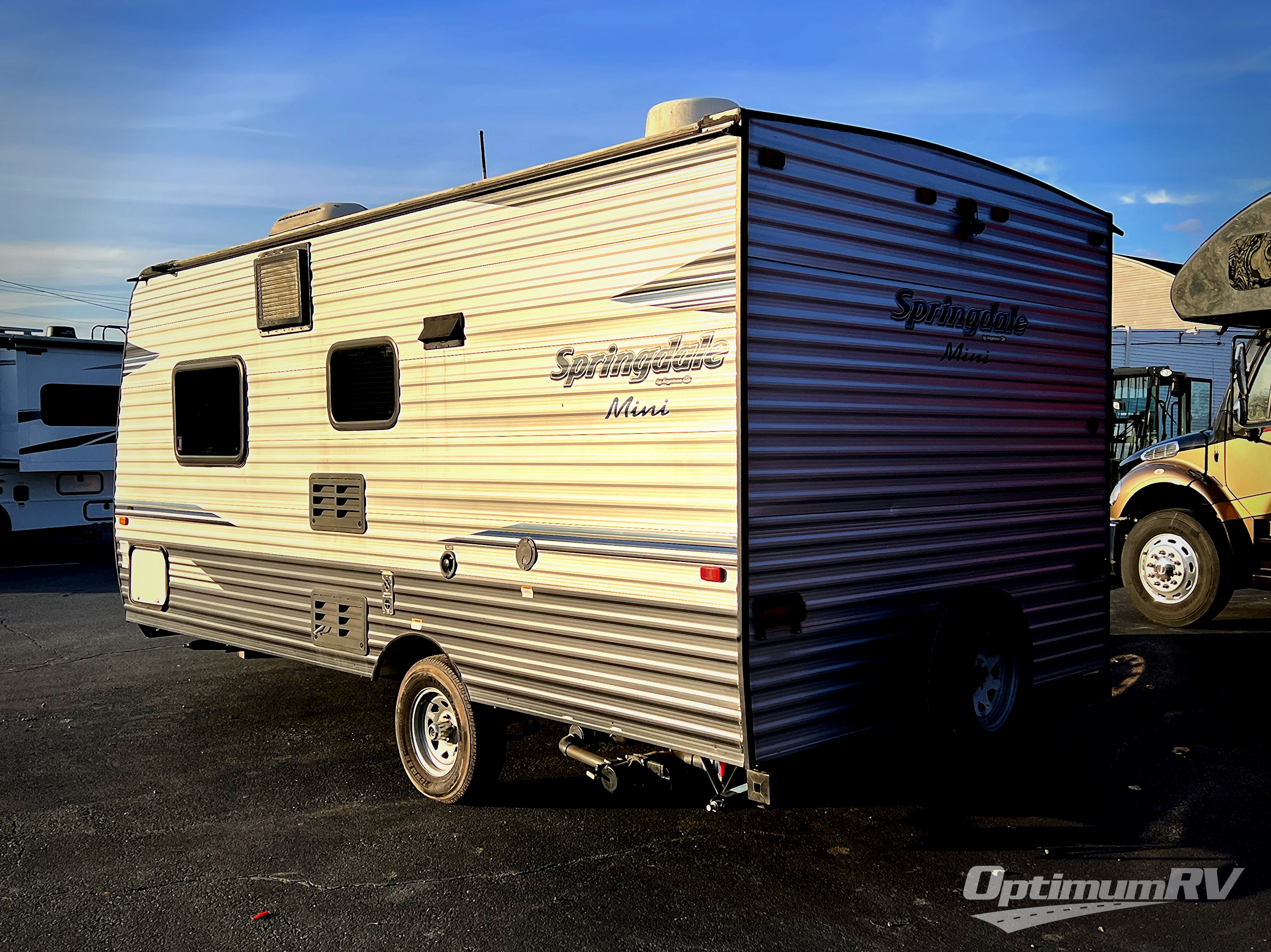 Get ready for any camping trip whether near or far! You will want an easy to tow, lightweight Keystone Springdale Mini travel trailer or toy hauler. These models have tinted safety glass windows, a mega exterior pass through storage area, E-coated corrosion-resistant wheels for a smoother ride. Inside you will enjoy plenty of features such as the cable TV hookup with a booster, the sleek black Furrion microwave, plus there is LED lighting so that you can see clearly whether day or night. There is also a CD/Bluetooth radio and a reversible bedspread, plus so much more! So don't waste anymore time, come choose today the Keystone Springdale Mini travel trailer or toy hauler that best suits you!