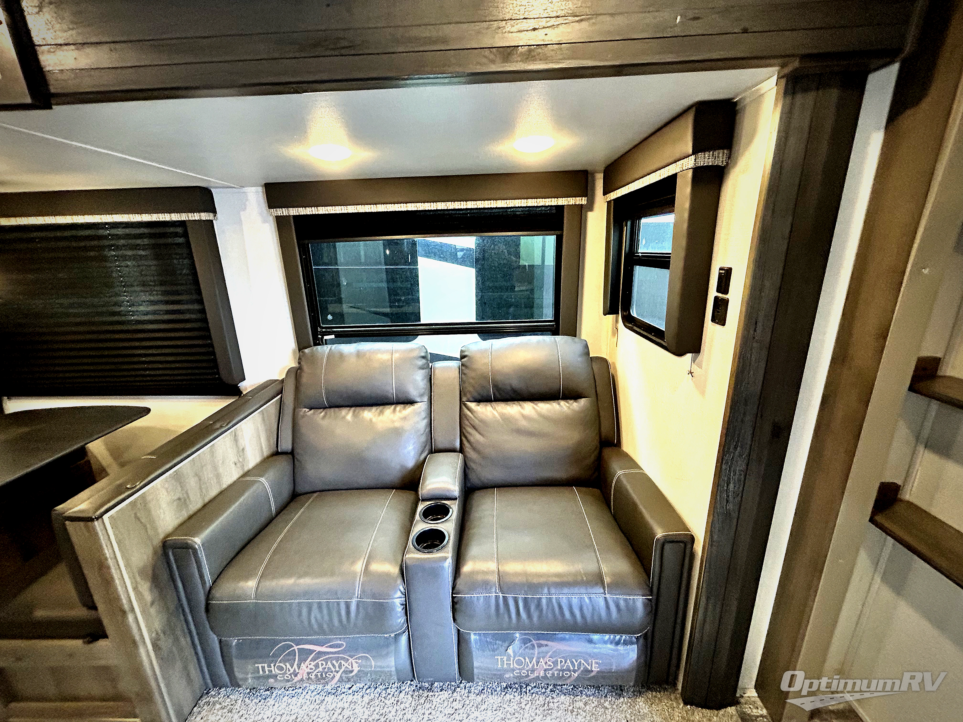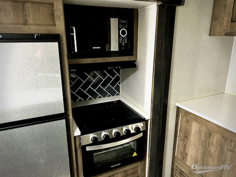 This travel trailer will be perfect for your larger family or group since it features a rear private bunkhouse and plenty of interior space to relax comfortably. Let the chef of the family prepare breakfast on the three burner range and the XL sink and faucet will make clean-up a breeze. Spend your day outdoors riding bikes or swimming at the lake and the full bath with a residential shower will allow you to clean up before bed. Make it a movie night with the 50" pop-up HDTV with a fireplace below and you'll find comfortable seating space on the full reclining theater seating. This model also includes a front private bedroom with a king bed and dual closets to store all your clothes.