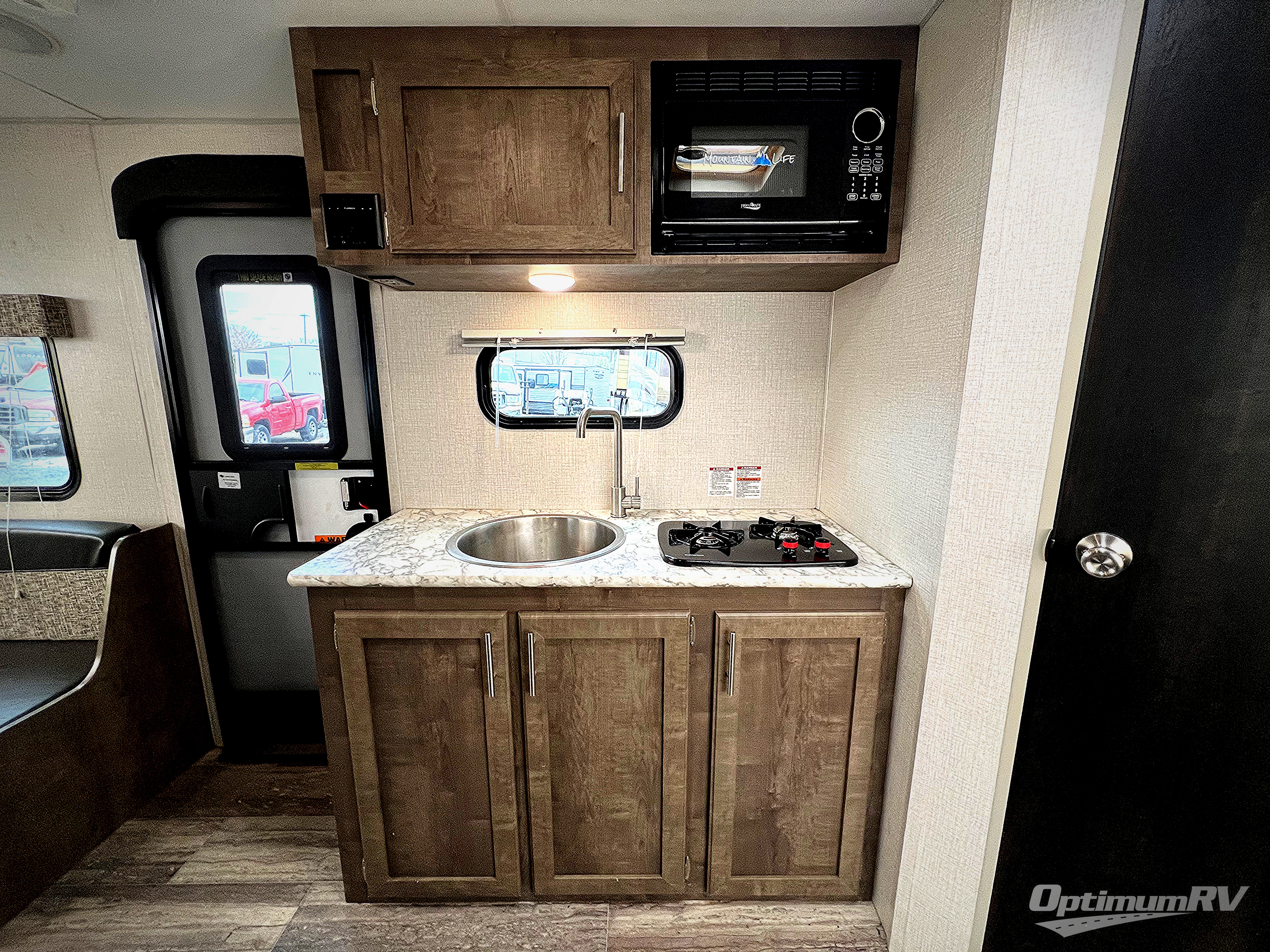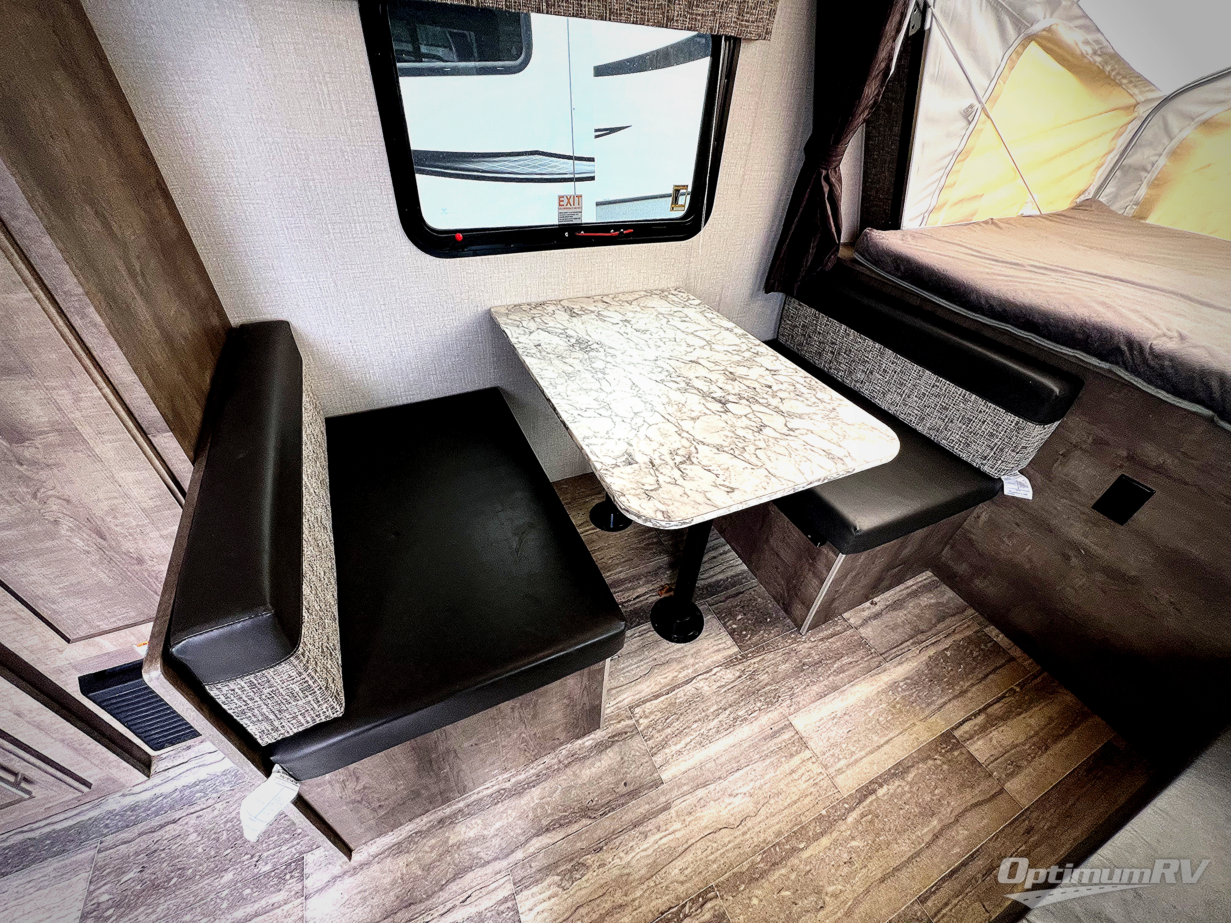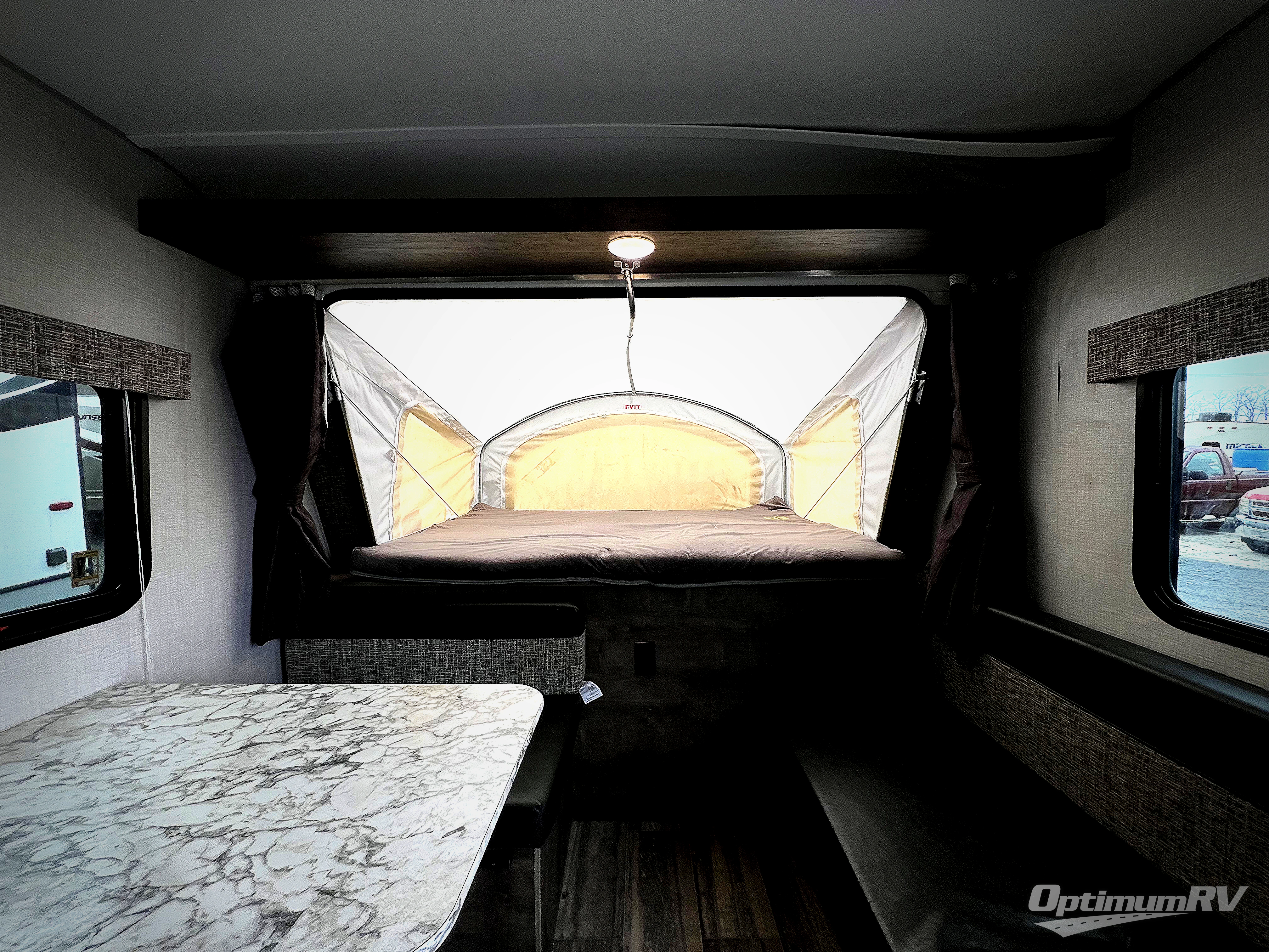 Load up your larger family in this Sportsmen Classic expandable for a fun weekend in the great outdoors with indoor comforts such as three full-size tent end beds, a booth dinette, and a bench seat. You will also find more floor space to move from the beds to the full bathroom and to the entry/exit door so that you can head back outside to hike and relax under the 13' power awning. You can make warm meals inside with the kitchen appliances which include a two-burner range and 7 cu. ft. refrigerator. And the stainless steel round kitchen sink allows you to keep everything clean for the next meal.