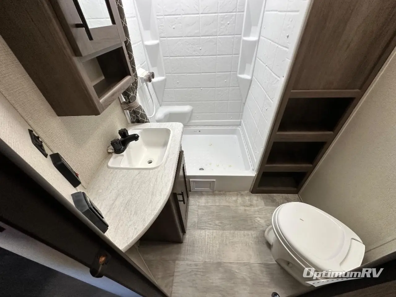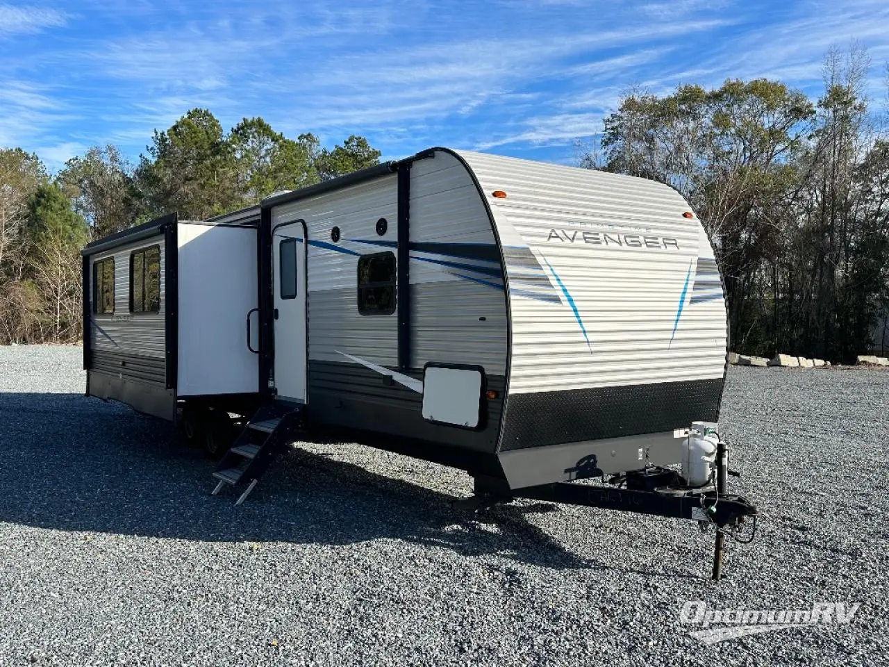 Don't waste any time getting out to your favorite getaway spot with an Avenger travel trailer from Prime Time RV! The Avenger will provide long-term quality and durability because of its exclusive EVERLAST construction, Dexter EZ-Lube axles, diamond-plate rock guard, and Solid Stance fold-down steps. Plus, the Avenger will also deliver industry-leading beauty on the interior with its designer window treatments, its seamless Carefree Congoleum flooring, its large fully vented windows throughout, and its premium fabrics. You will also be grateful to find a massive under-bed storage space so that you can keep extra luggage hidden away and out of sight.