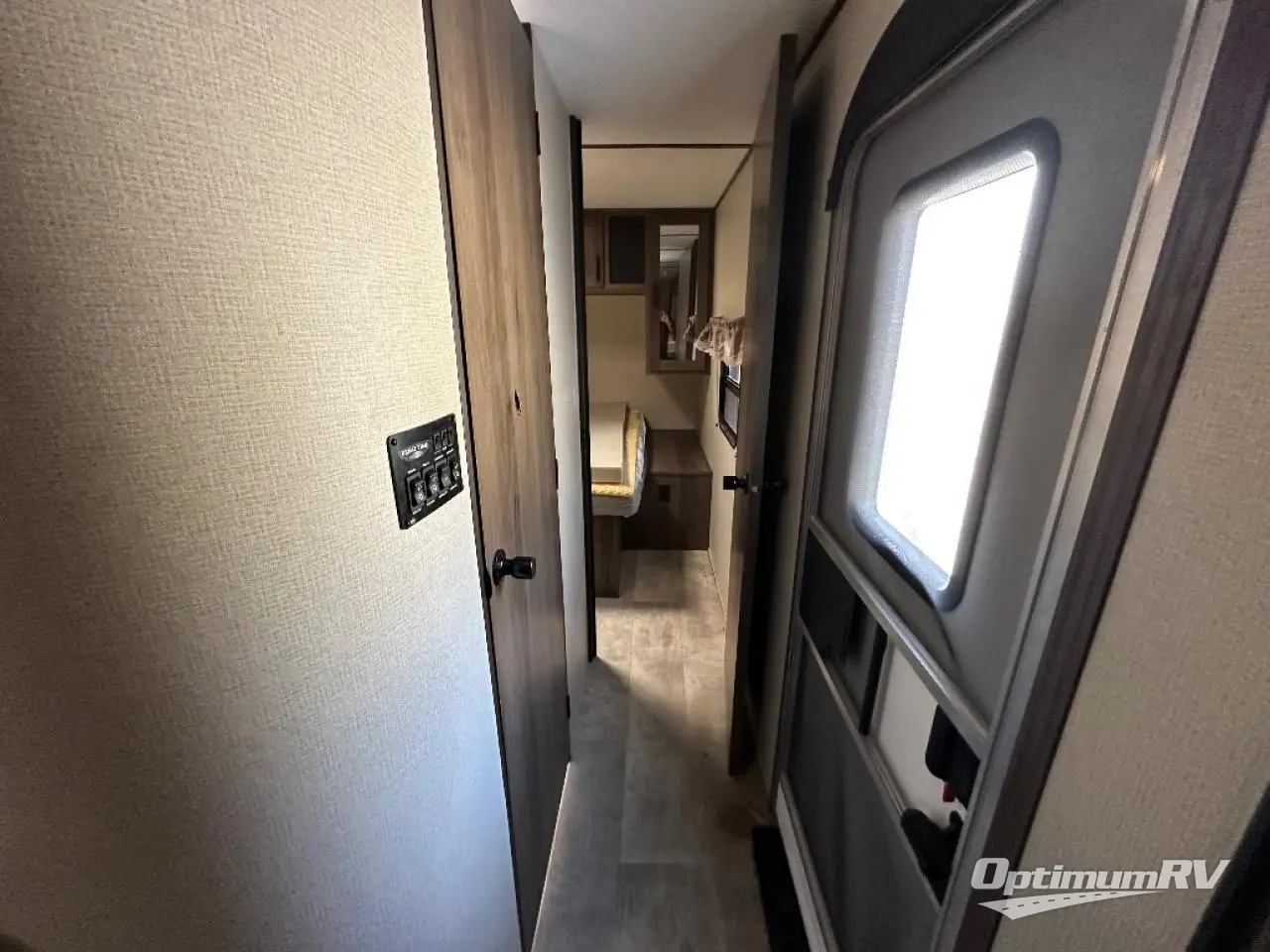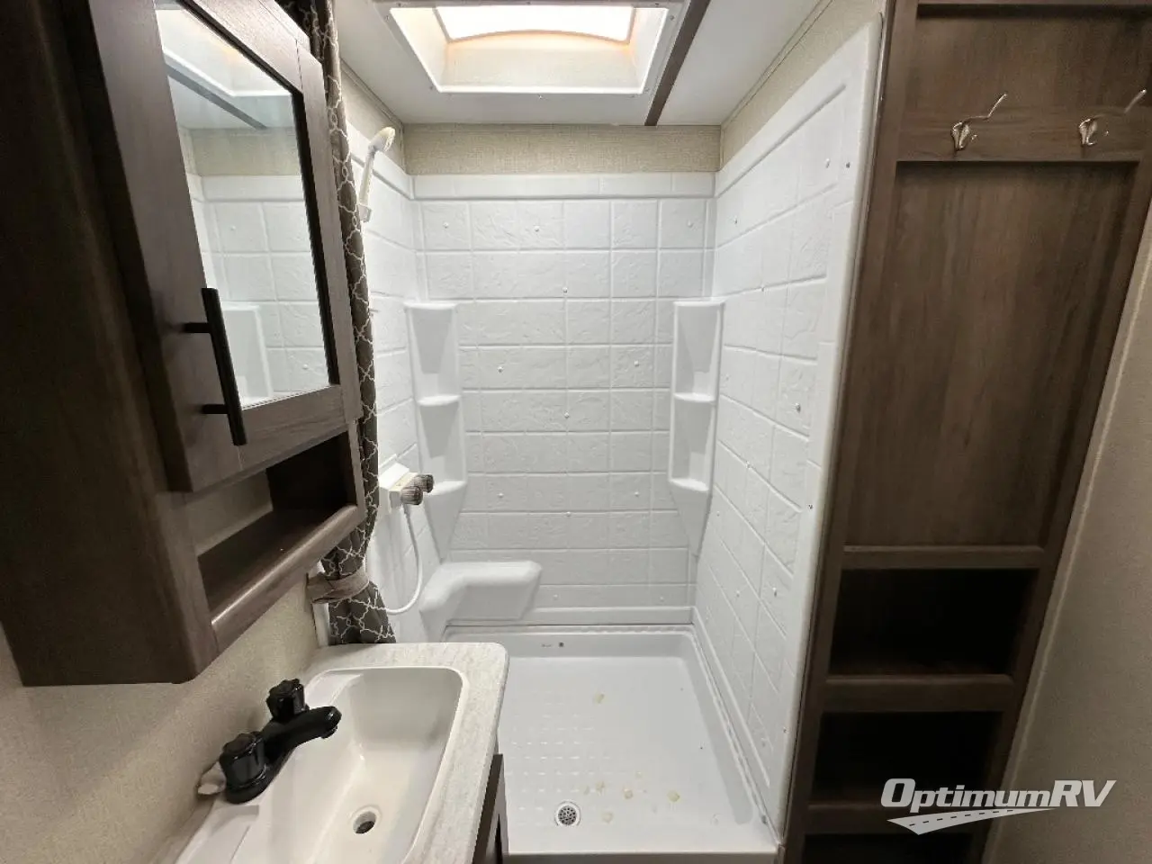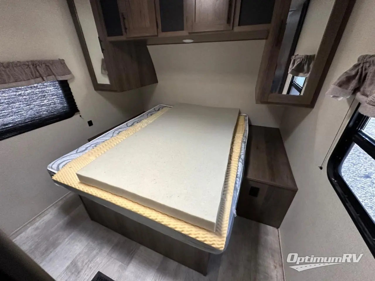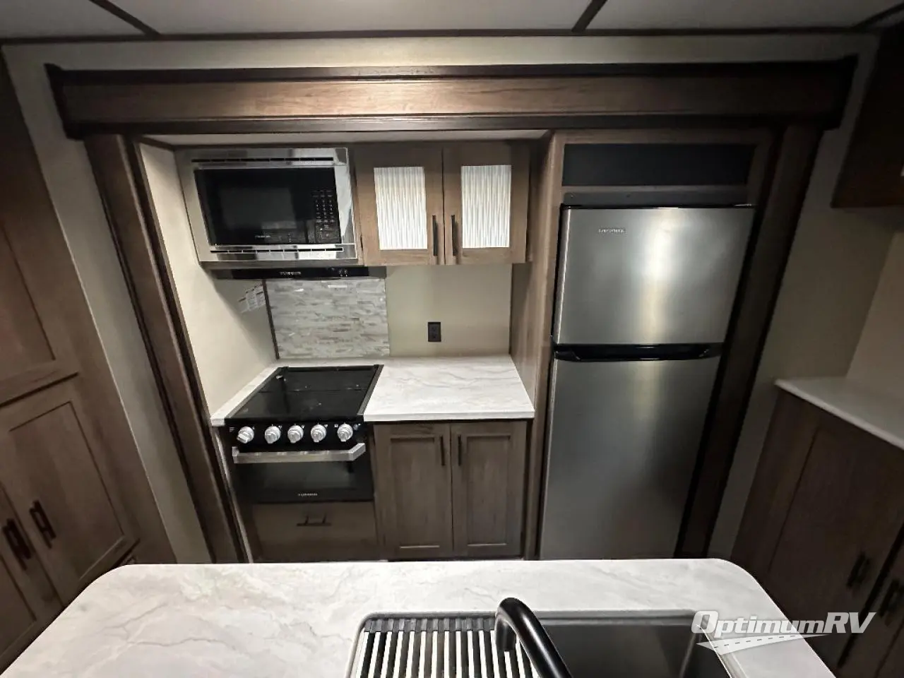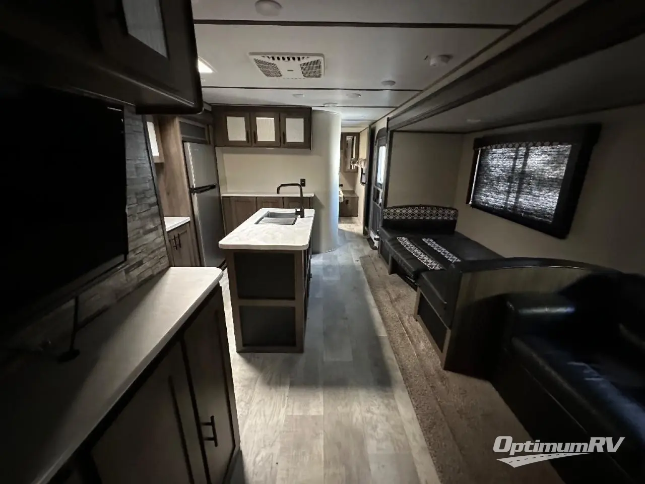 Are you looking for an RV with a private bedroom for yourself and a private bunkhouse for the kids? Then this Avenger travel trailer has everything you've been looking for, plus more! This unit features a jackknife sofa and a large 87" U-shaped dinette so that everyone can fit around it at dinner time. The family chef has the option of cooking inside and serving food on the kitchen island or on the hutch/buffet, or they can take the meal prep outside and use the outdoor kitchen. Camping with family shouldn't feel cramped which is why this trailer has three slides, giving everyone space to move around. This unit also features multiple storage areas, plus a third wardrobe closet in the front bedroom for all your clothes and valuables.