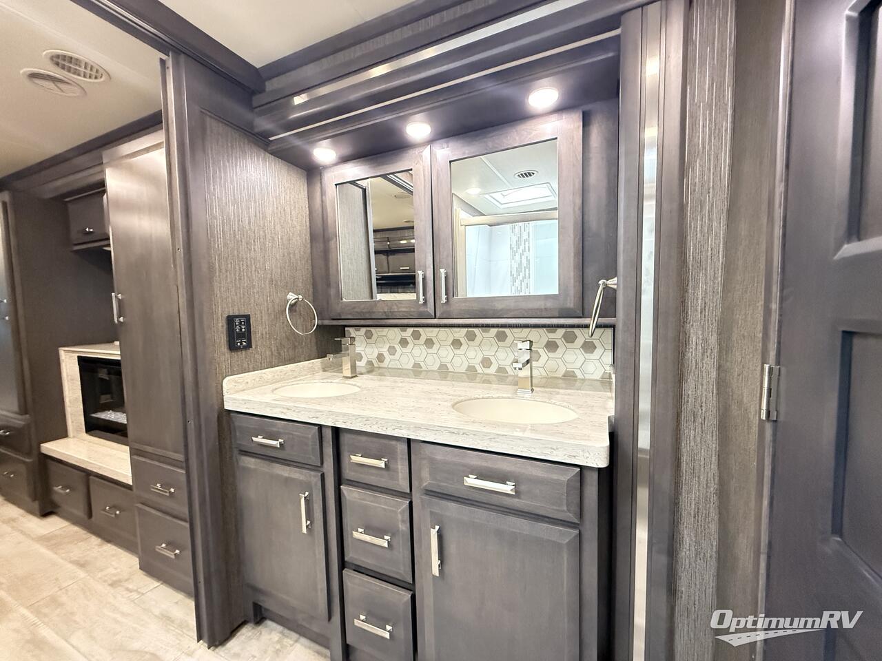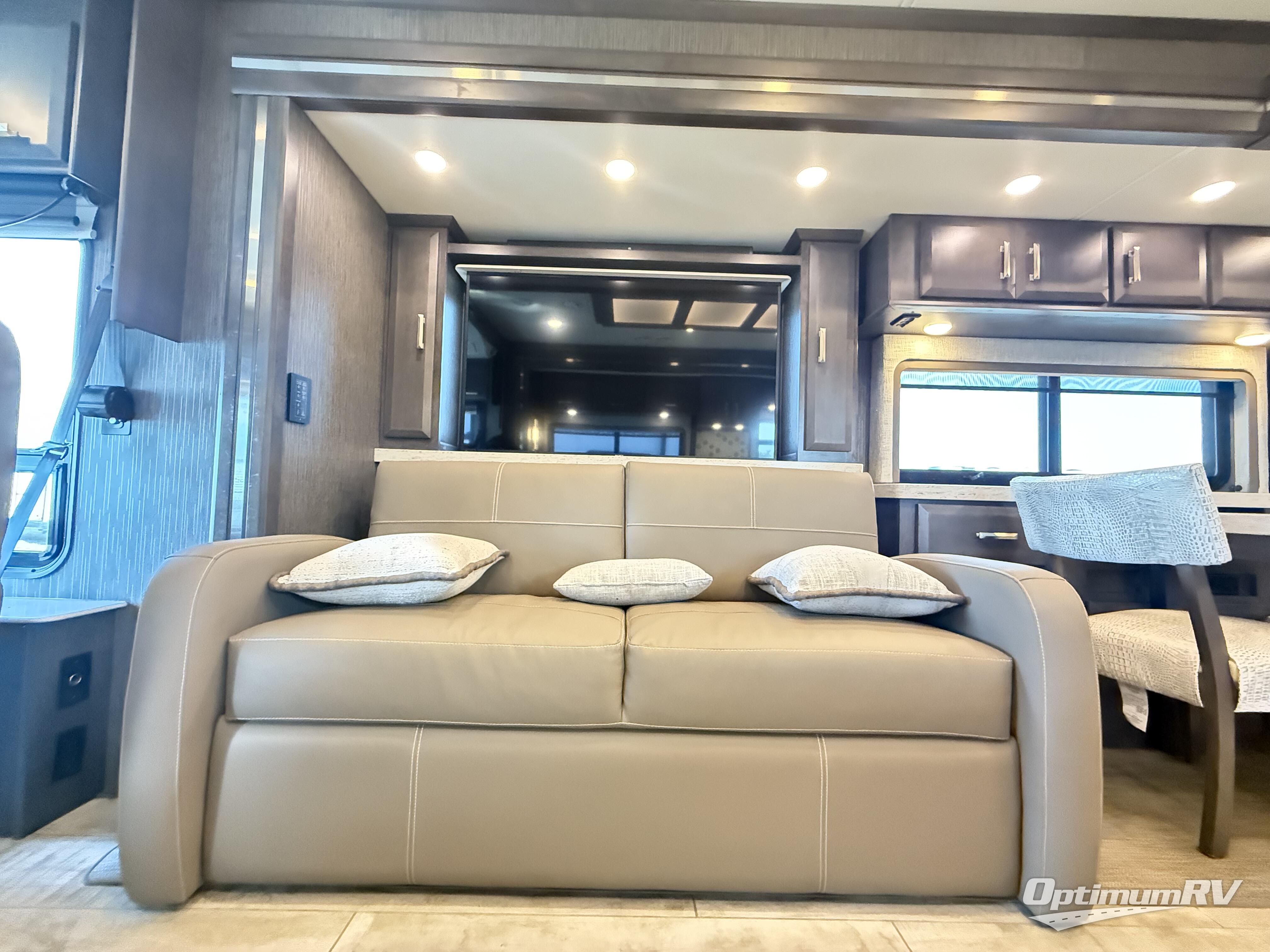 If you are ready for a luxury motorhome that offers beauty, style, and power with the most livable floor space, then choose a Tuscany by Thor Motor Coach. The Tuscany offers high-end amenities, such as a 20 cubic foot stainless steel residential French door refrigerator, a Fisher Paykel dishwasher, and a designer tile backsplash. You can even find polished porcelain tile flooring, decorative ceiling treatments with mood lighting, and high-gloss glazed cabinetry located all throughout the interior, and every Tuscany sits upon a Cummins ISL 8.9L engine to make sure that quality begins and ends with the foundation.