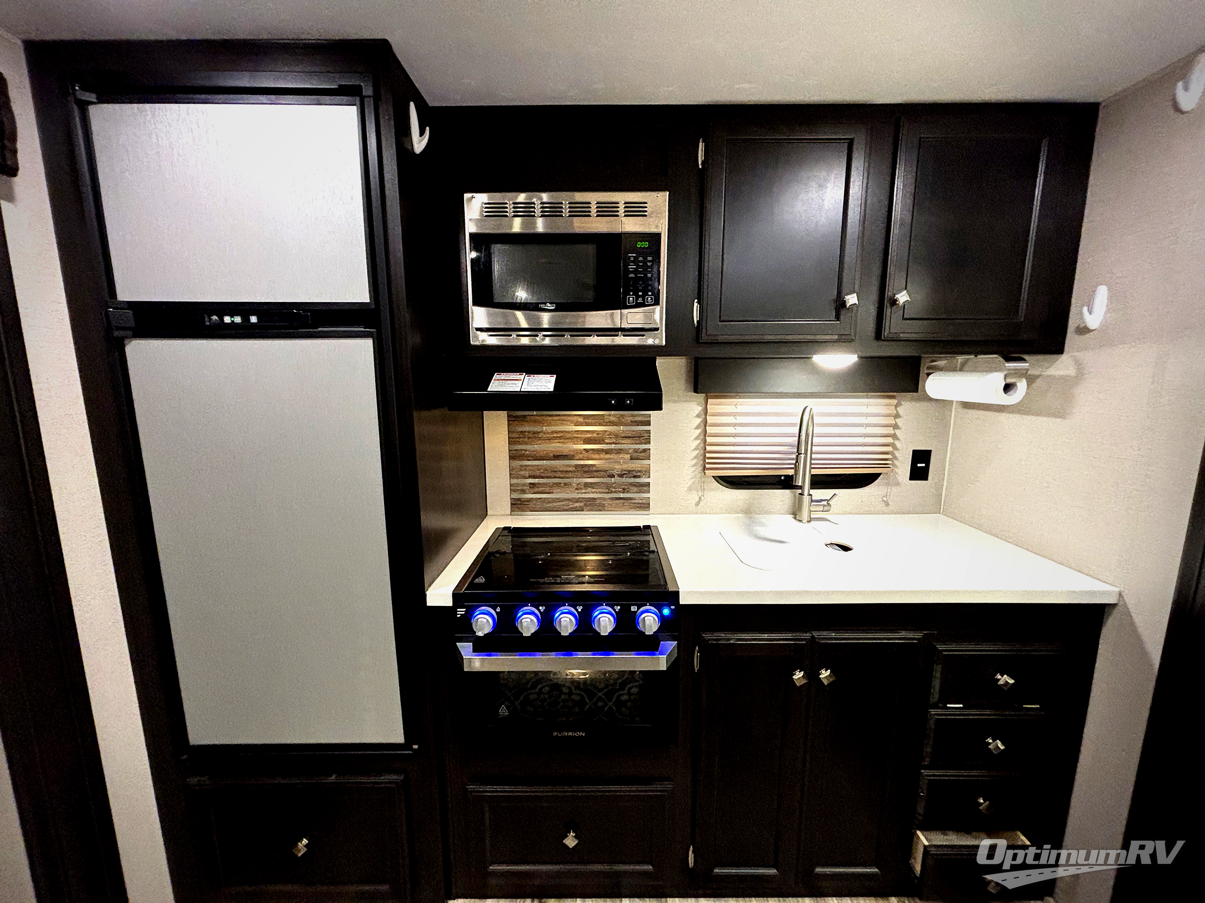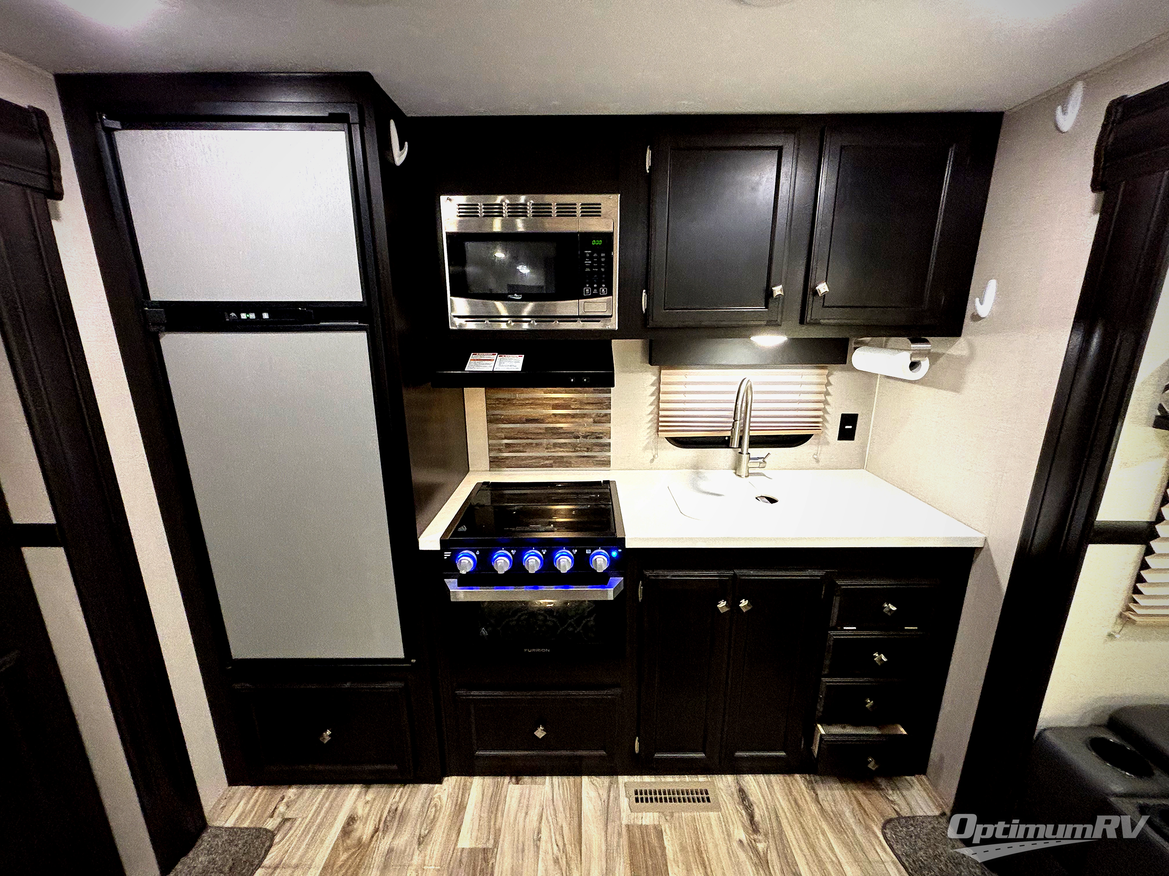 Pack your bags and head to your favorite campground in this travel trailer that features a rear kitchen with tons of floor space. The fireplace gives this area an at-home feel while the chef is preparing dinner and you'll find a second fireplace in the bedroom for added comfort. If the weather is nice, you may want to head outdoors to grill burgers on the campfire cafe and everyone will love to sit under the power awning with LED lights. When it's time to turn in for the night, your guests can sleep on the tri-fold sofa bed while you and your spouse enjoy the front private bedroom with a slide out king bed. You'll also enjoy the front window seat to catch up on your book and there is plenty of space to hang your clothes for the next day.