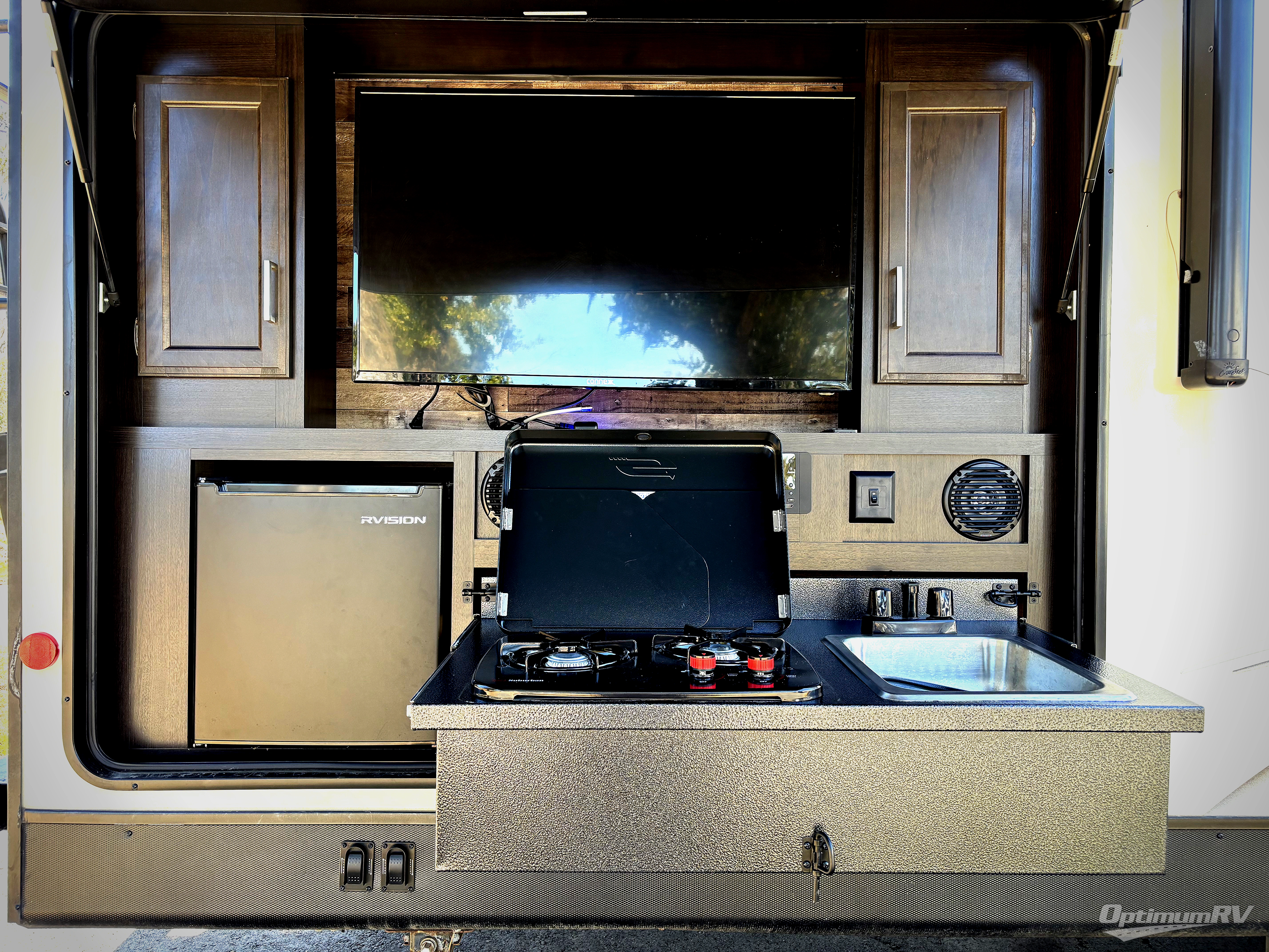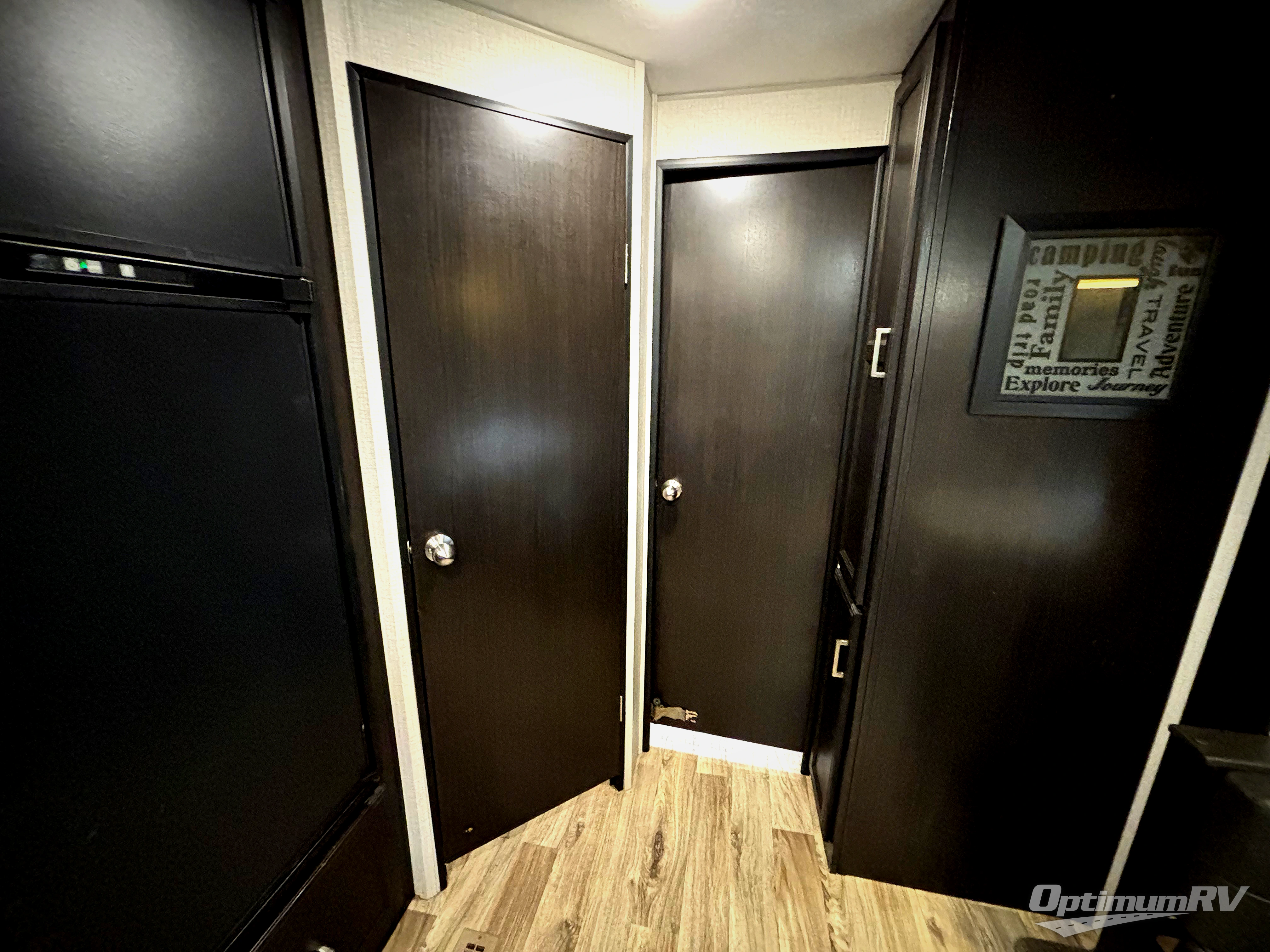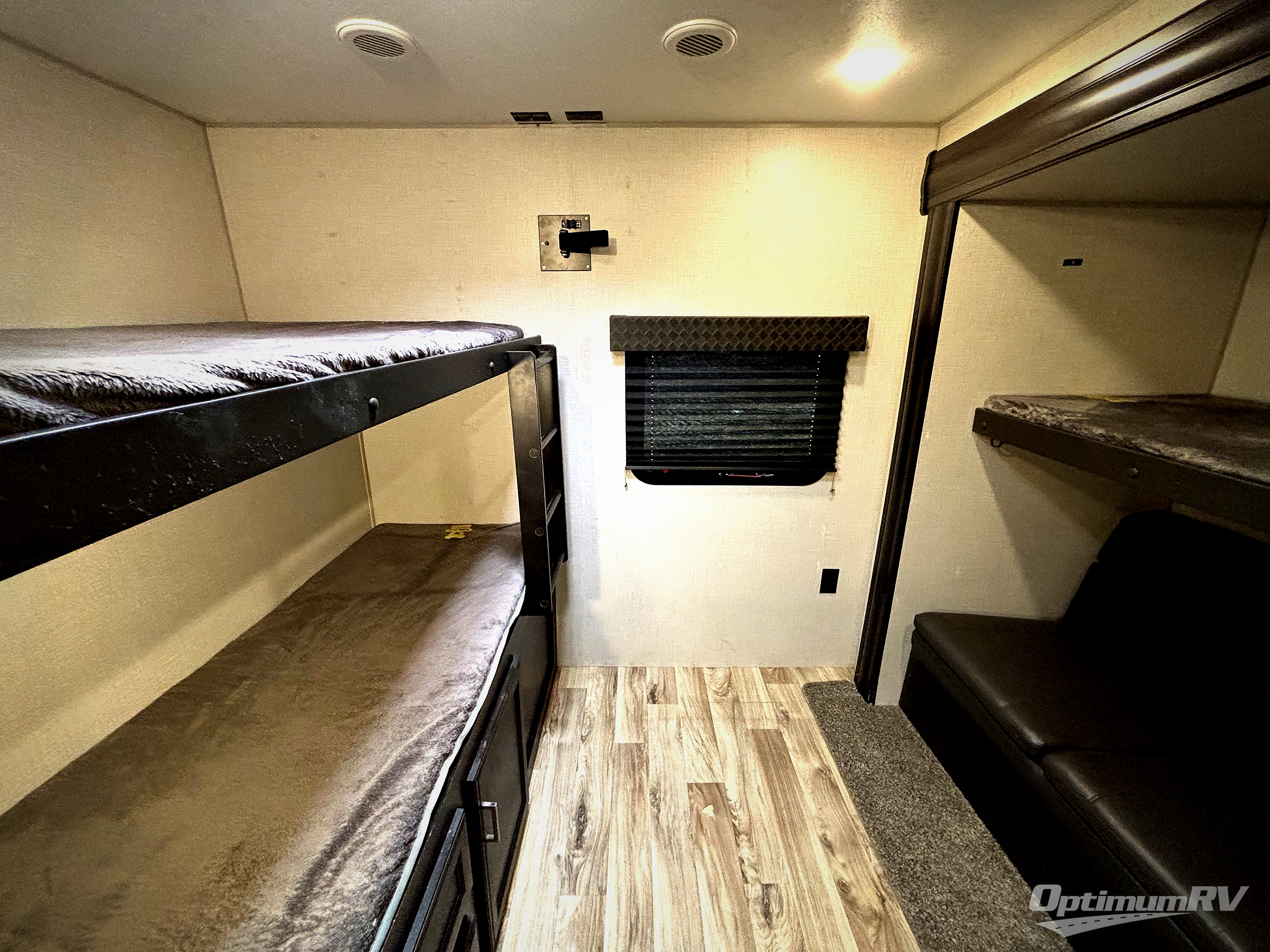 If you've been looking for a travel trailer that includes at-home features and allows you to bring along the family, look no further than this unit! The kids will love the rear private bunkhouse with its slide out for added space, three bunks, plus a table under the flip-up bunk so they can play a game. Mom and dad will appreciate the front master suite with a slide out queen bed, their own fireplace, plus a large front dresser and closet. The bath and a half included in this unit will be a big plus since you'll have a larger group camping with you and the outside campfire cafe will allow you to grill burgers for everyone. There is even an exterior 40" TV to watch the game on!
