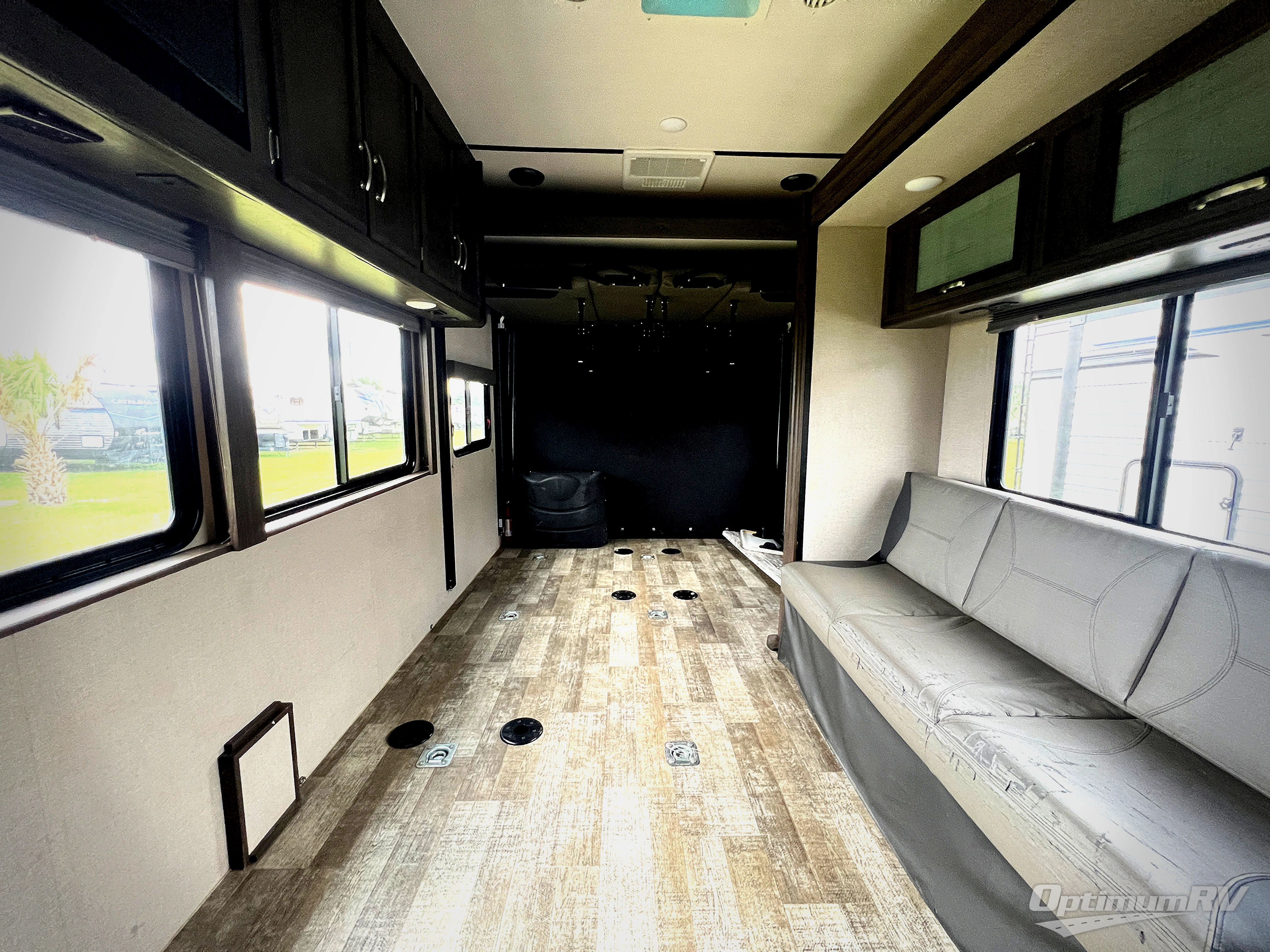 With double slides, a king bed, plus 14' cargo space, this toy hauler is packed with all the features you are sure to love. In the evening your guests can sleep on the Happi Jak sofas or on the drop-down queen bed in the garage and you'll appreciate your own private bedroom with access to the dual entry bath for convenience. Whip up some breakfast on the three burner range or make something quick in the microwave before taking your Harley on a ride and you'll appreciate a full bath to clean up after a long day. This unit also includes a 70" wall-mount sofa that is great for watching a movie on or for even more sleeping space.