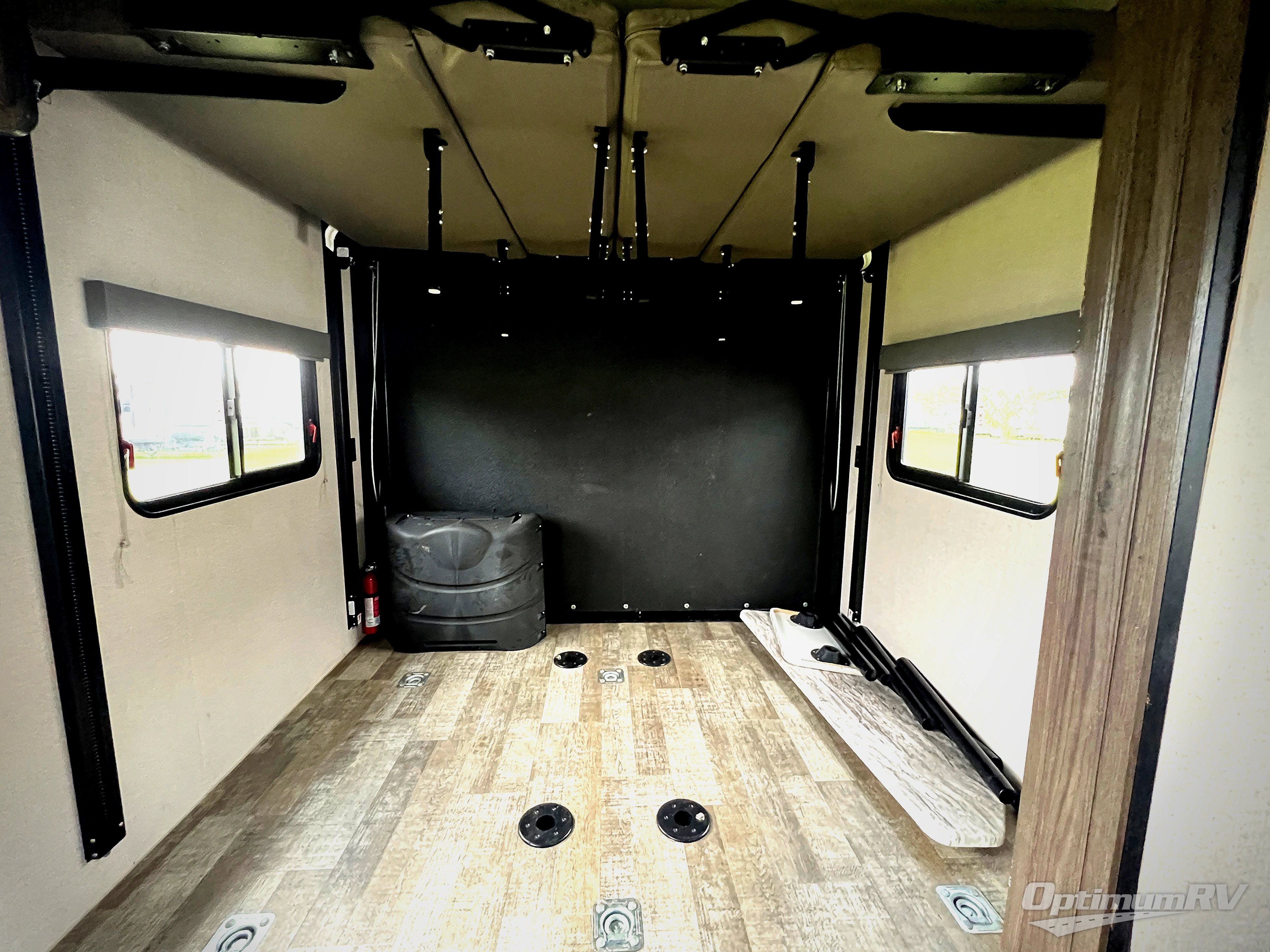 With each Spyder toy hauler by Winnebago Industries Towables you will appreciate the leaf spring suspension, the aluminum frame rear ramp door, and the 30 gallon fuel station to keep your toys ready to go when you are. The cold crack resistant floor provides a durable floor and the 2,500 lb. tie downs will keep your four wheelers secure during transportation. inside, you'll enjoy beautiful solid stained hardwood doors and drawers, a stainless steel kitchen sink, a large shower with a skylight, and an LED TV so you won't miss out on the weather or the news. These models also feature a beaver tail rear end and an exterior shower so you can wash off your riding boots after kicking up some mud!
