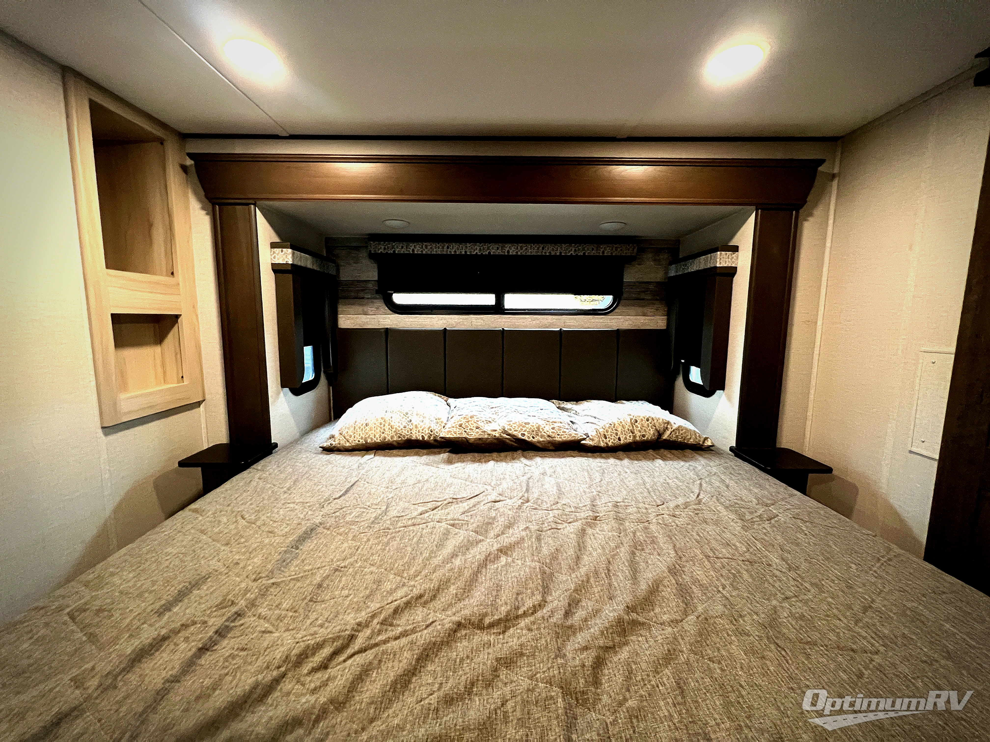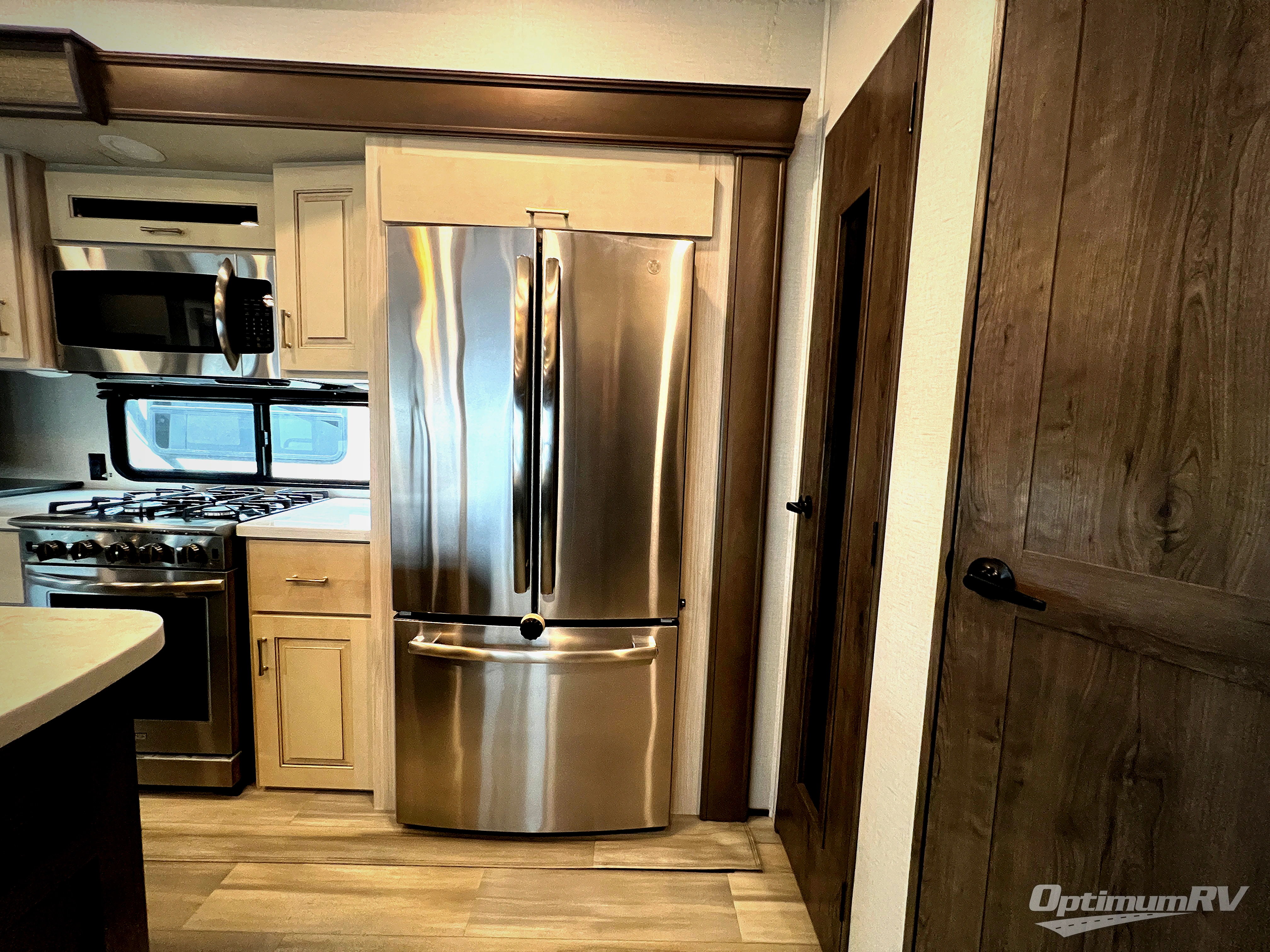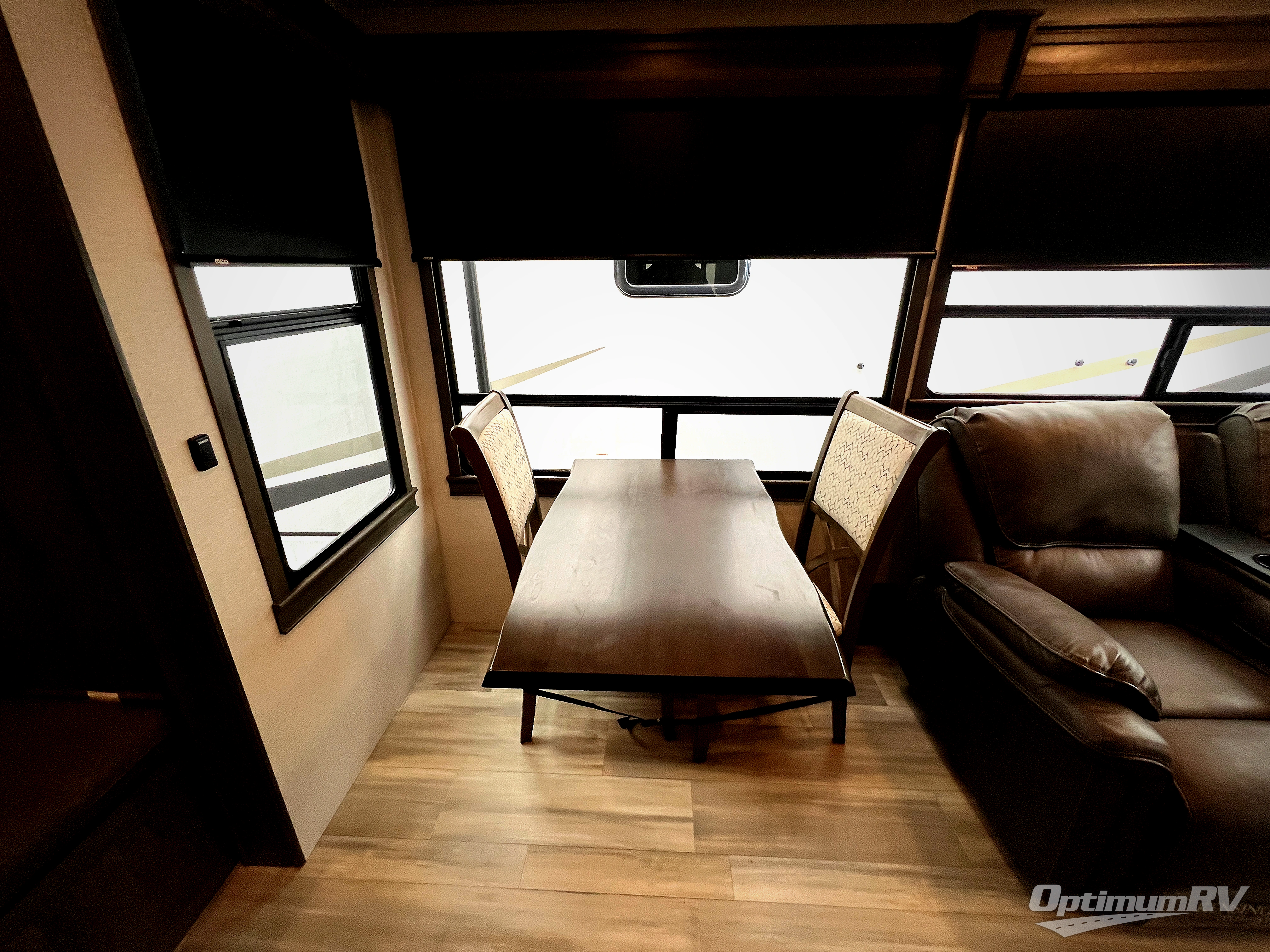 The Paradigm fifth wheel from Alliance RV is absolutely a dream to own because it combines high quality and luxury with features that you have specifically requested over the years! Some of the exterior customer-driven features are the Benchmark chassis, the G-range tires rated at 4,400 pounds, and the MorRyde CRE3000 suspension, and the Paradigm offers some of the industry's largest tank sizes at 98 gallons for fresh water and 106 gallons for gray water. The PVC roof covering will do an excellent job at protecting your RV from water intrusion, and it has increased solar reflectivity. You won't find any carpet in the Paradigm, and another great feature that has been reconstructed to meet the customer's needs is the flush-floor slide. The soft-close doors and drawers with magnetic catch are a high-end residential feature that isn't typically found on other RVs, and the excellent hidden storage capabilities of the Paradigm will surprise you when you find them.