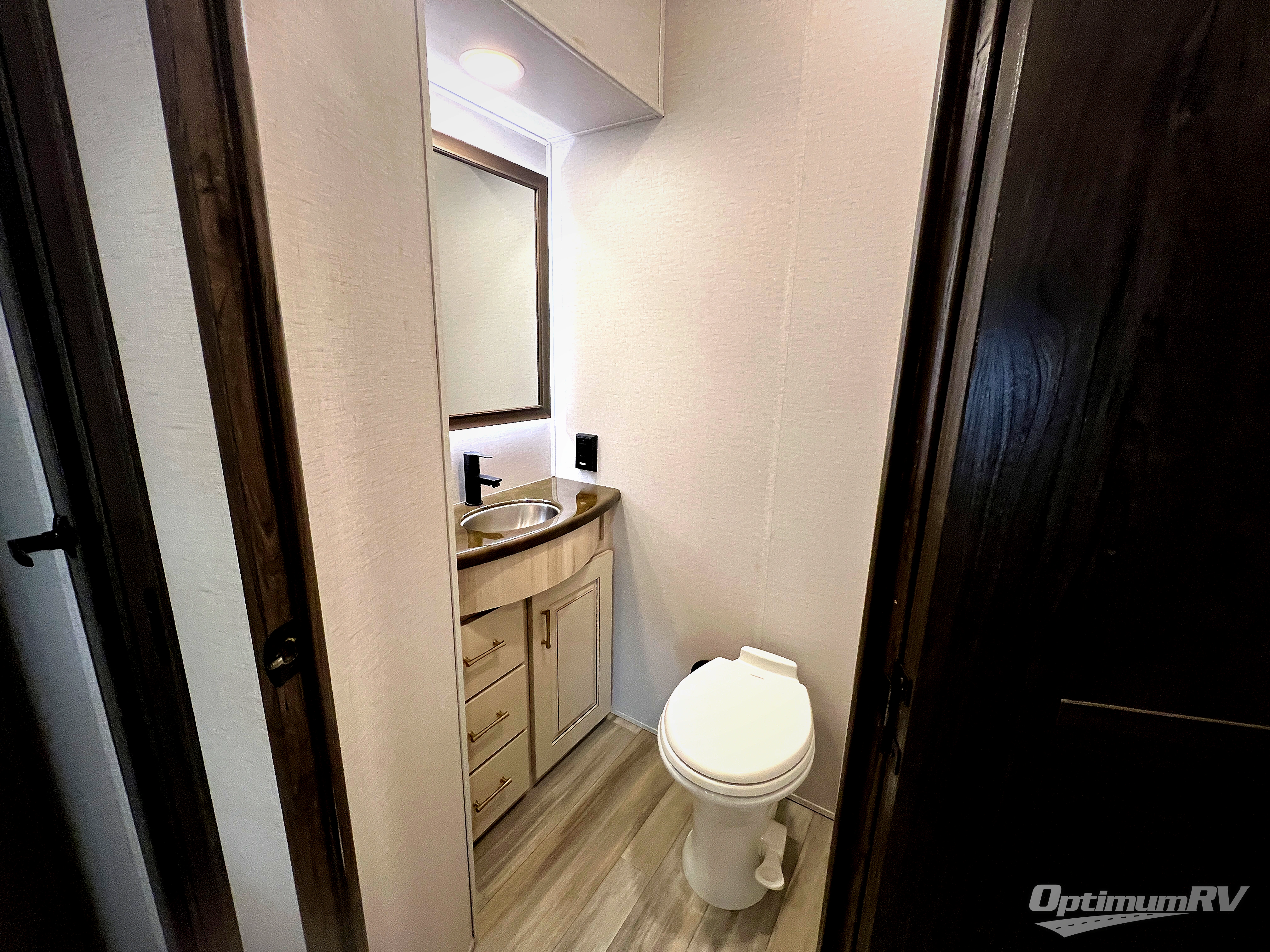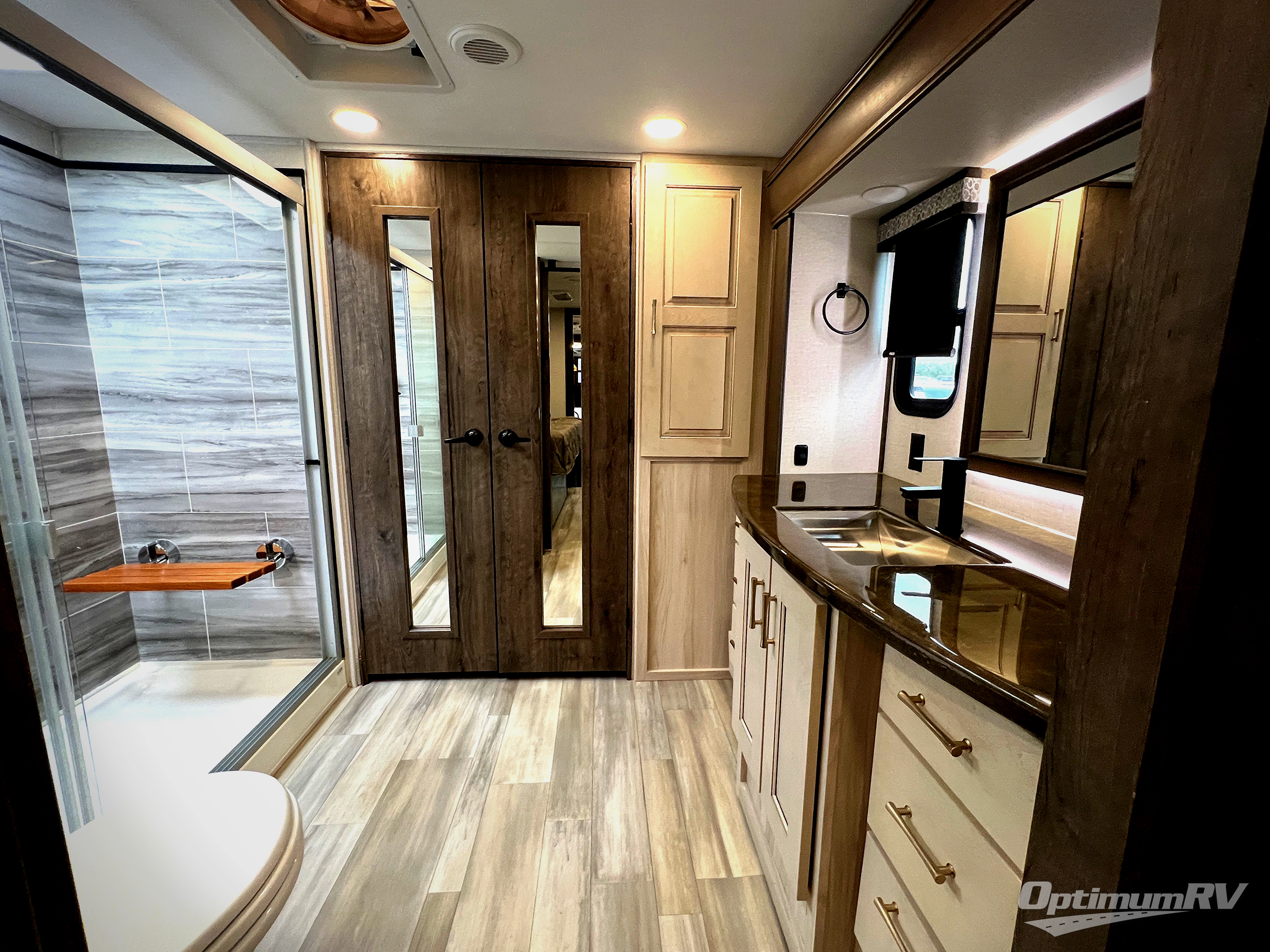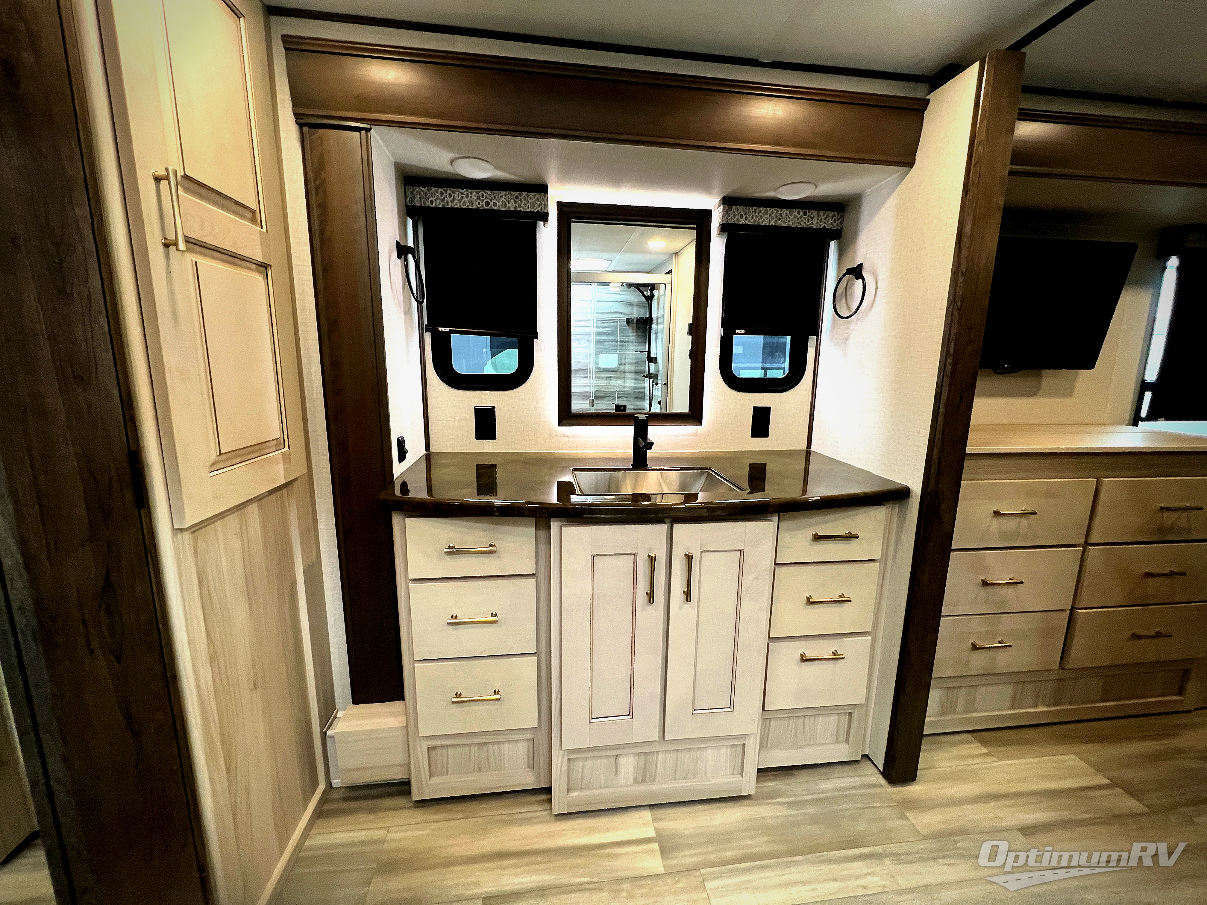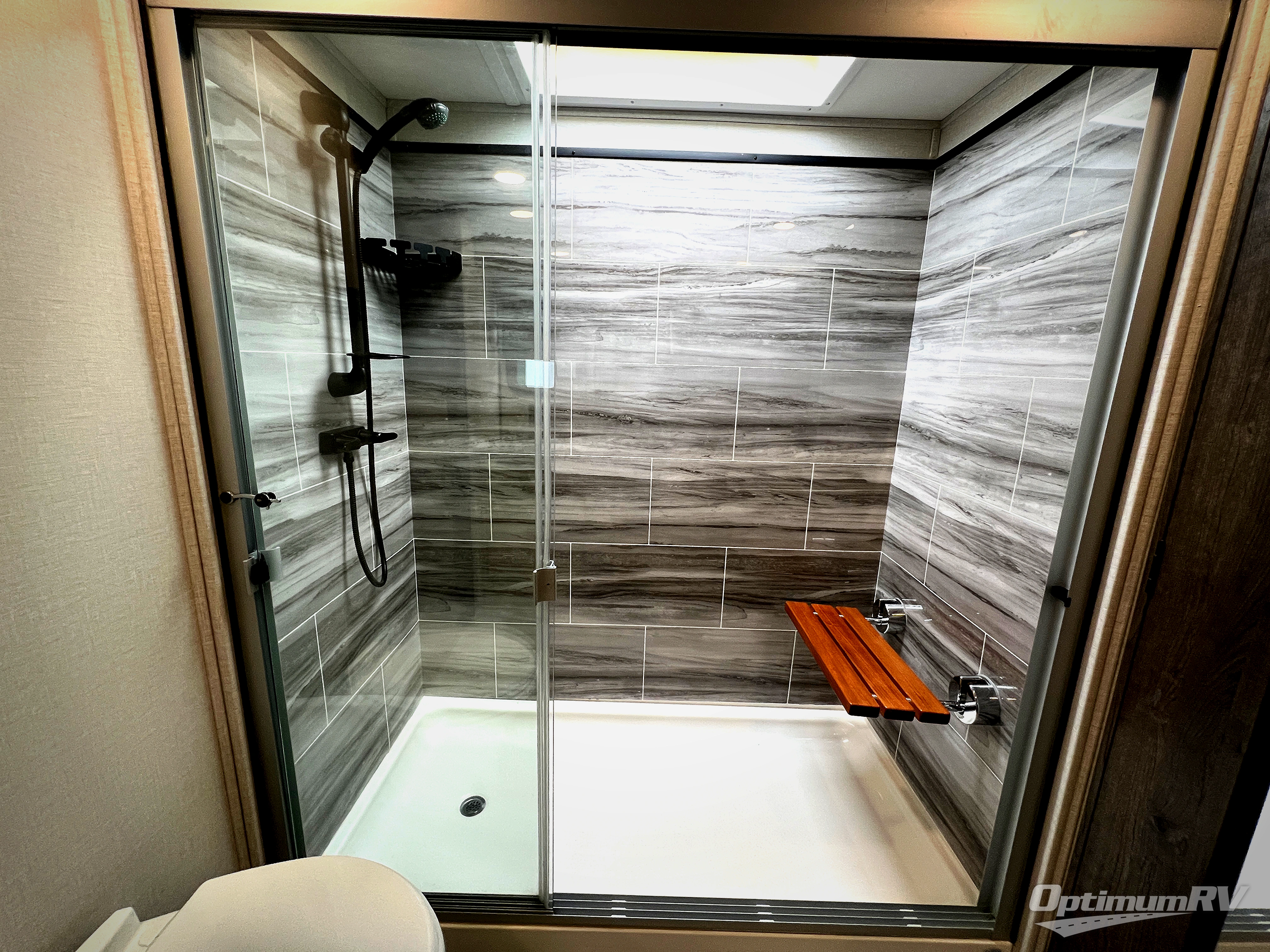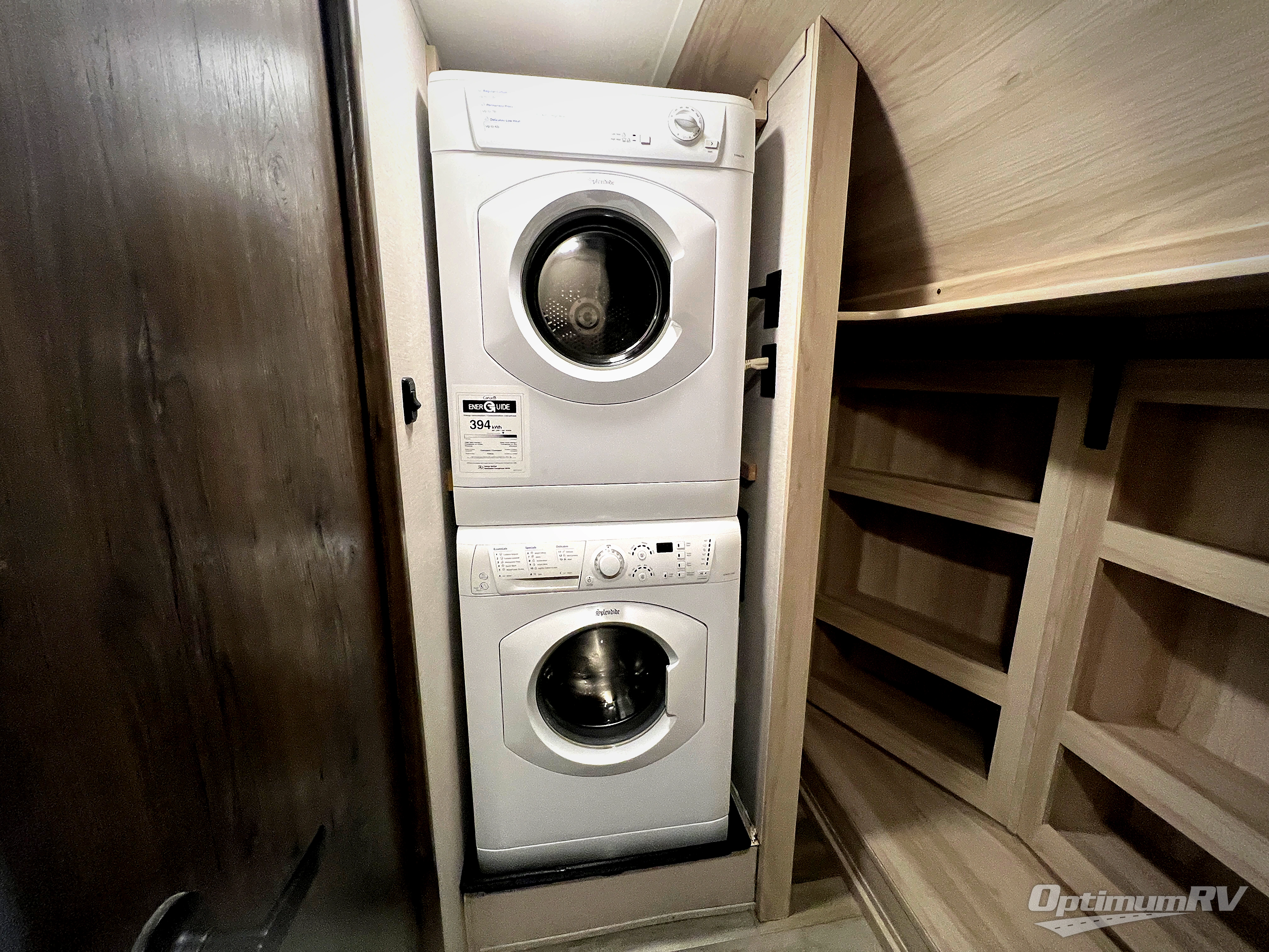 This Paradigm fifth wheel is an absolute dream! Whether it's the sunlight streaming in through the Atrium windows, or it's the bright LED dimmable lighting on the interior, you will find illumination all throughout this unit. The backlit crown molding in the living area provides an elegant feel to this already stylish fifth wheel, and modern technology is abundant with the two Smart TVs, USB charging ports, and LED motion lights in the pantry. You will be completely set for full-time living with the preparations for a dishwasher and the preparations for a washer/dryer, and the hamper in the walk-in closet will make it easy to keep your dirty clothes out of sight.