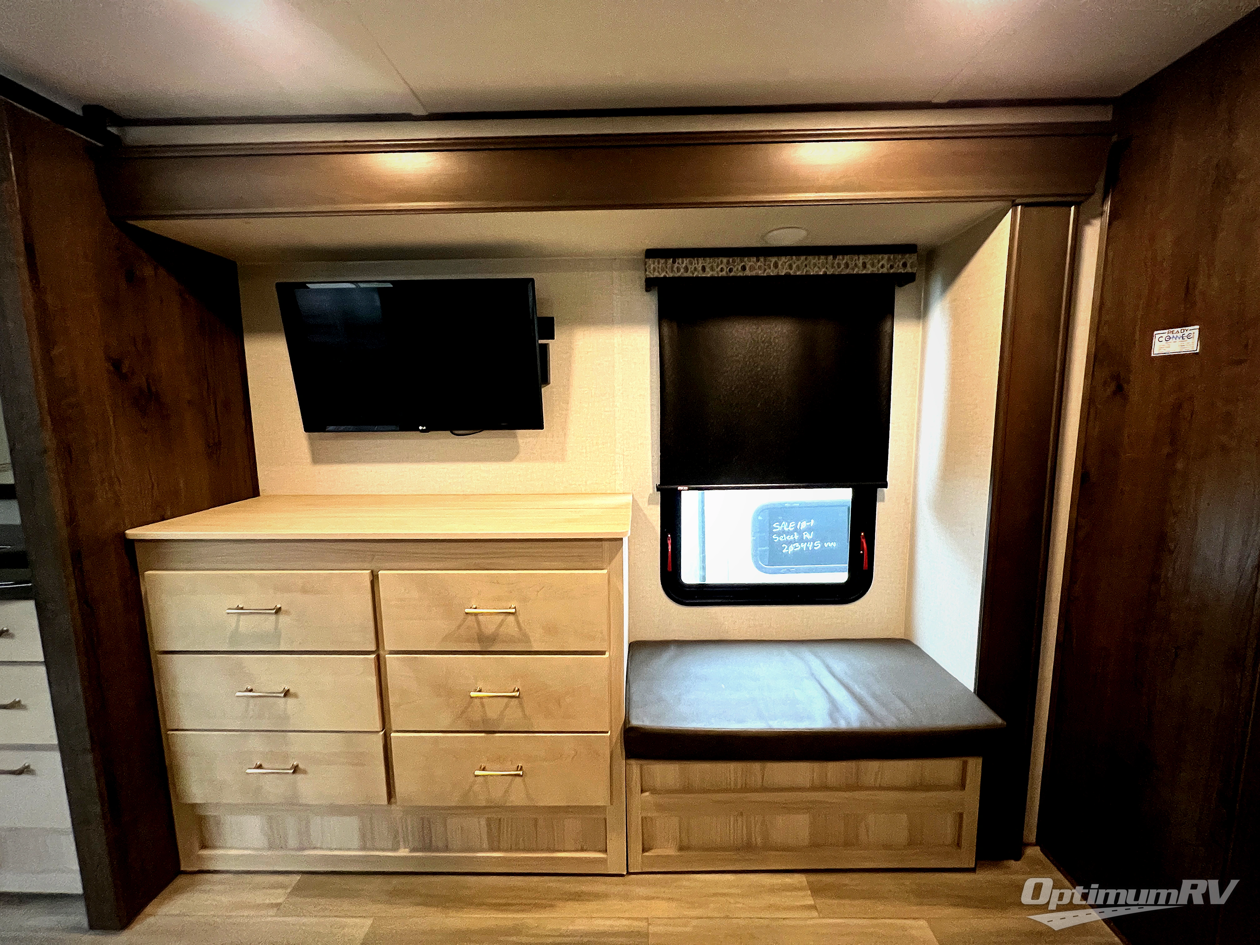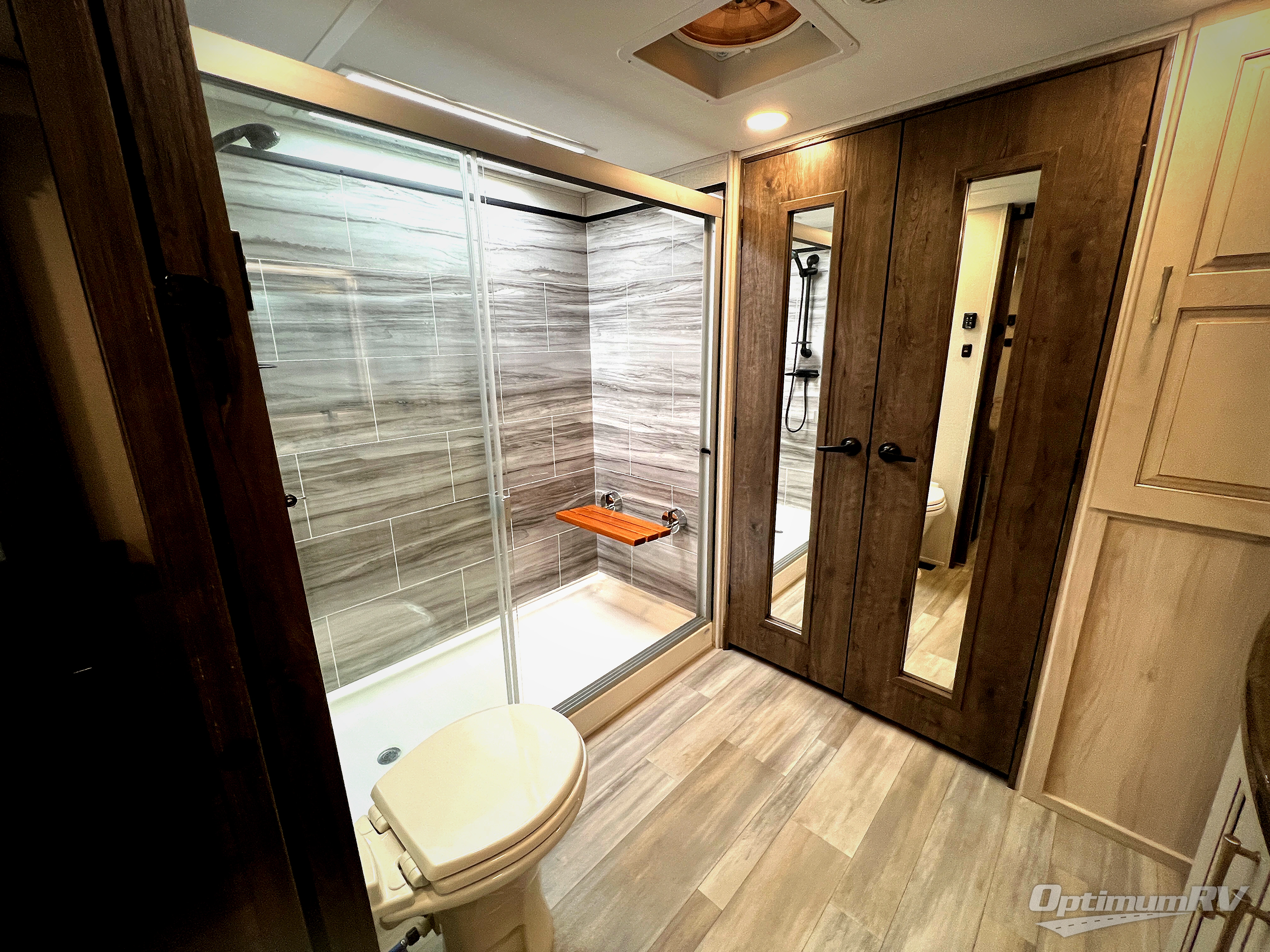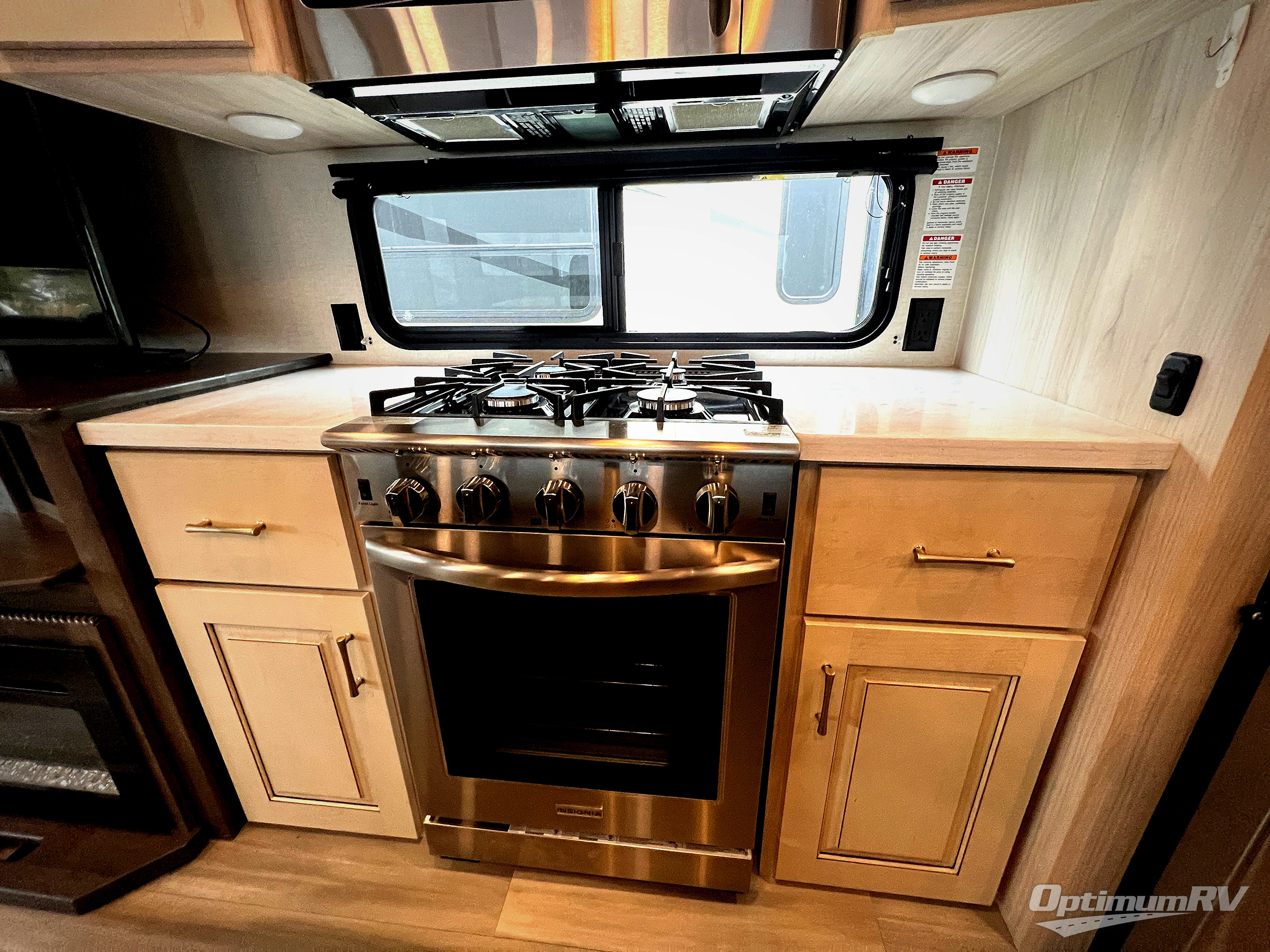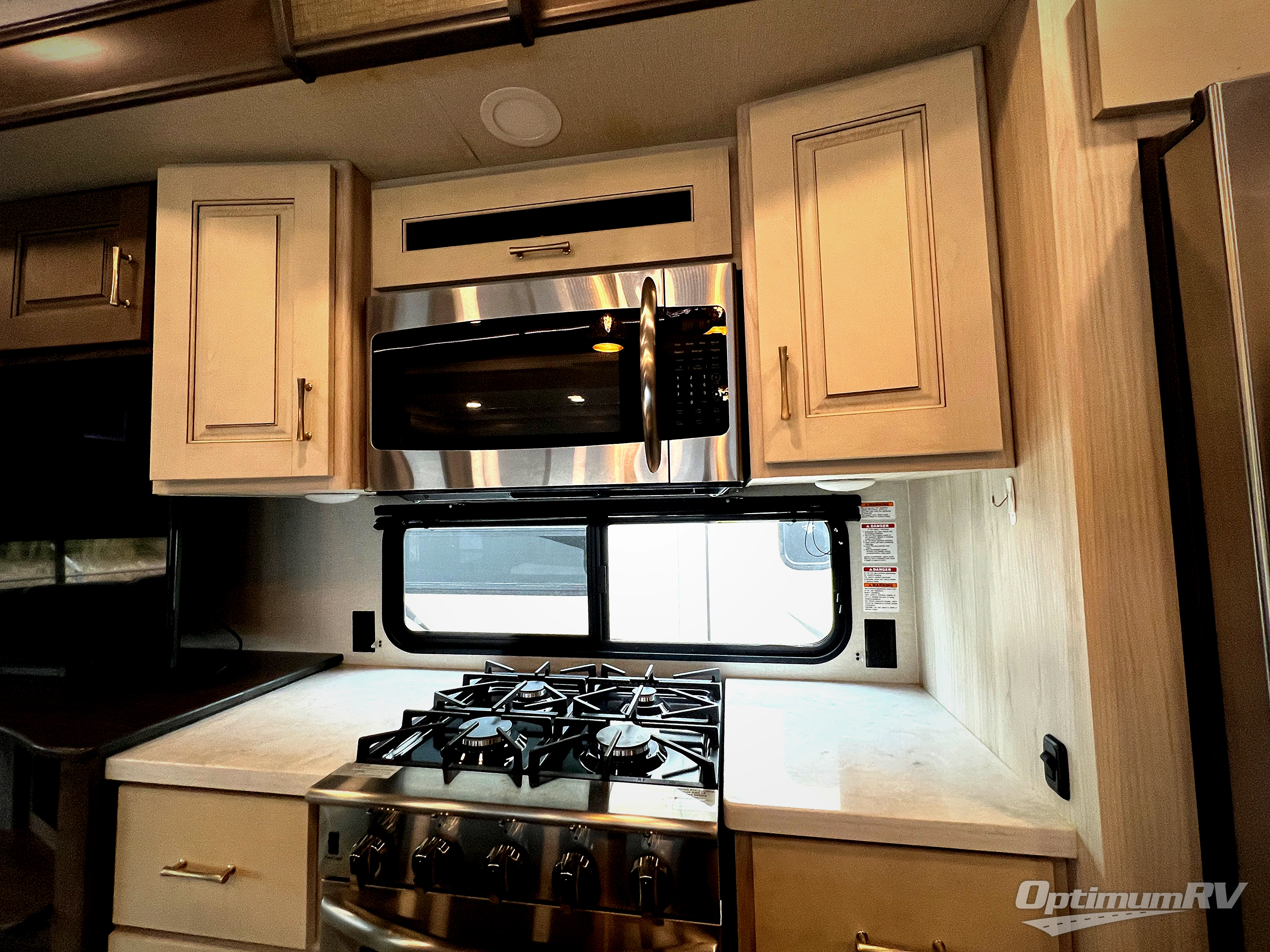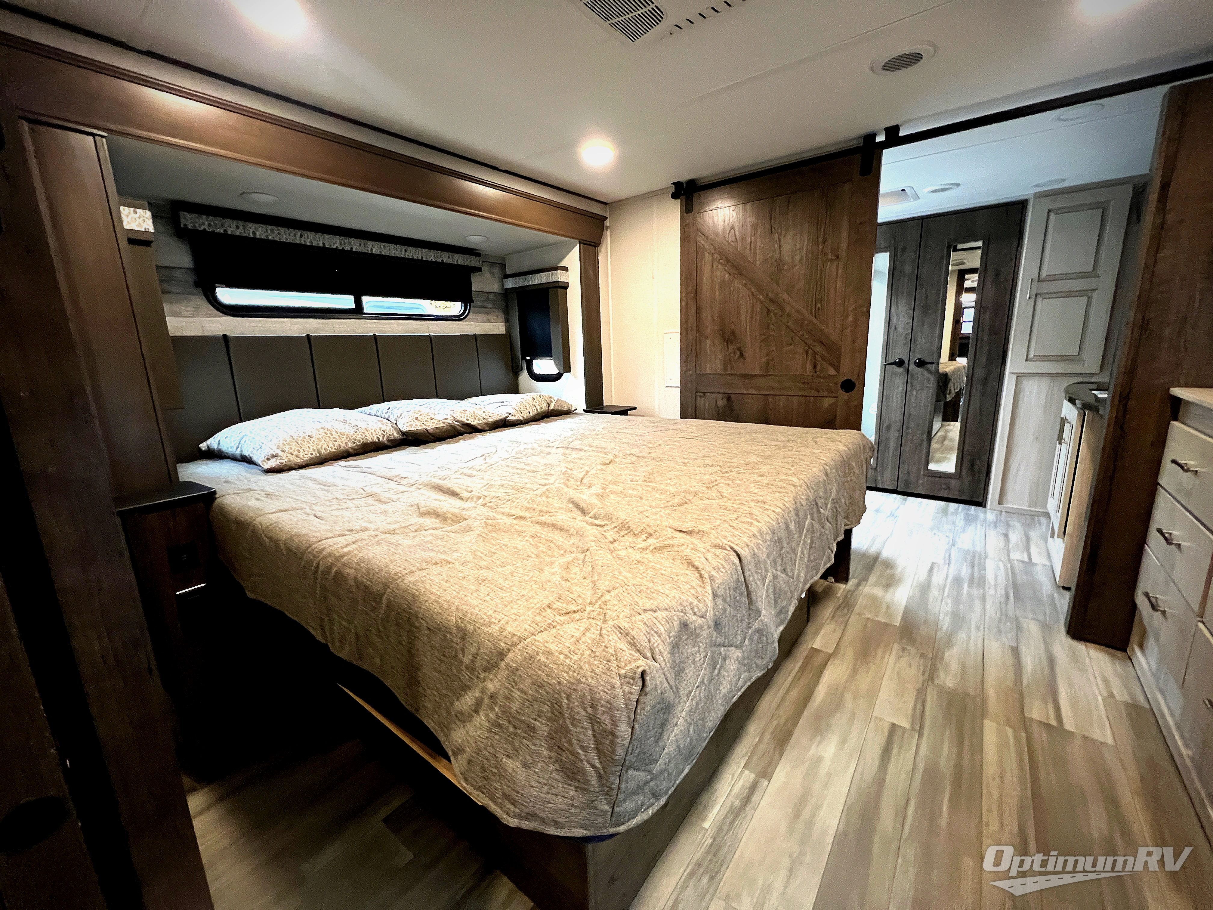 This Paradigm fifth wheel is an absolute dream! Whether it's the sunlight streaming in through the Atrium windows, or it's the bright LED dimmable lighting on the interior, you will find illumination all throughout this unit. The backlit crown molding in the living area provides an elegant feel to this already stylish fifth wheel, and modern technology is abundant with the two Smart TVs, USB charging ports, and LED motion lights in the pantry. You will be completely set for full-time living with the preparations for a dishwasher and the preparations for a washer/dryer, and the hamper in the walk-in closet will make it easy to keep your dirty clothes out of sight.