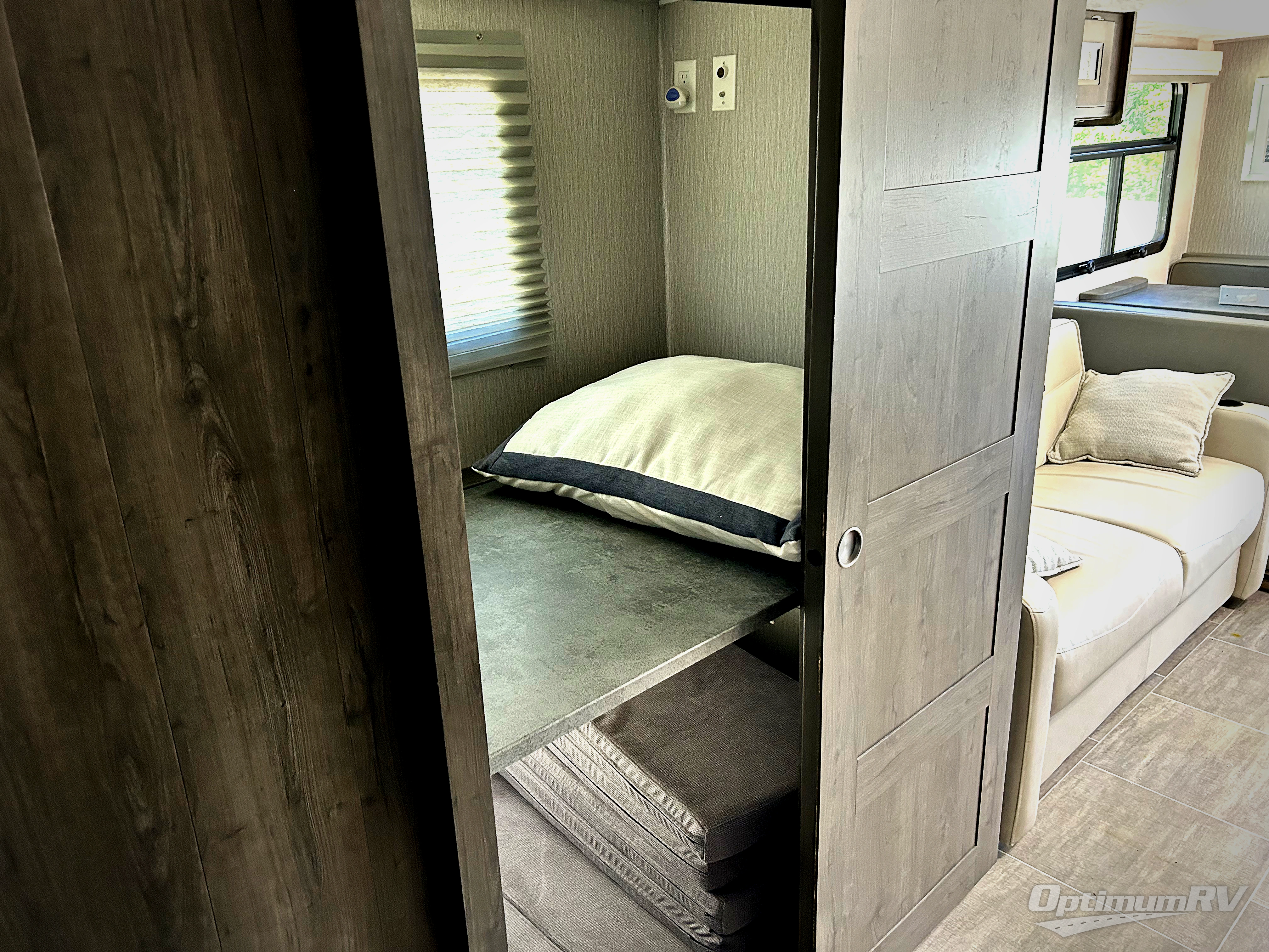 Whether you are a family or couple that loves to travel, this coach offers everything you will need, plus some! From the passenger having a computer workstation while moving down the road and the driver appreciating the power of the engine to the kids having bunk beds and the power drop-down bunk to call their own, there is something for everyone.  Gather in the main living area to enjoy lots of space thanks to the large slide, and the sofa with hide-a-bed plus dinette offer seating along with the recline/swivel pilot seats.  The 40" LED TV and fireplace provide entertainment and a cozy evening, and the kitchen offers stainless steel appliances along with a farm sink for easy clean up.  At night you can retire to your own bedroom with a walk-around king bed slide with amenities such as a washer/dryer prepped space, a dresser, a 32" LED TV, and a place to store your CPAP machine if necessary.  And having a full bathroom nearby is even more convenient.