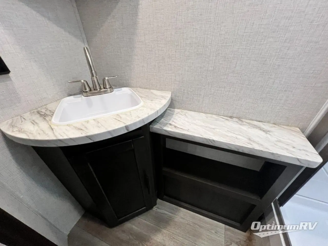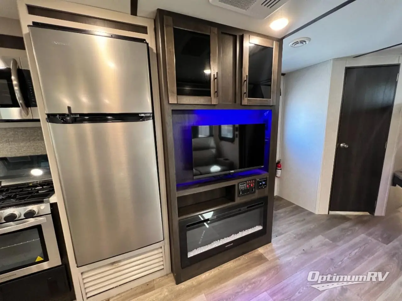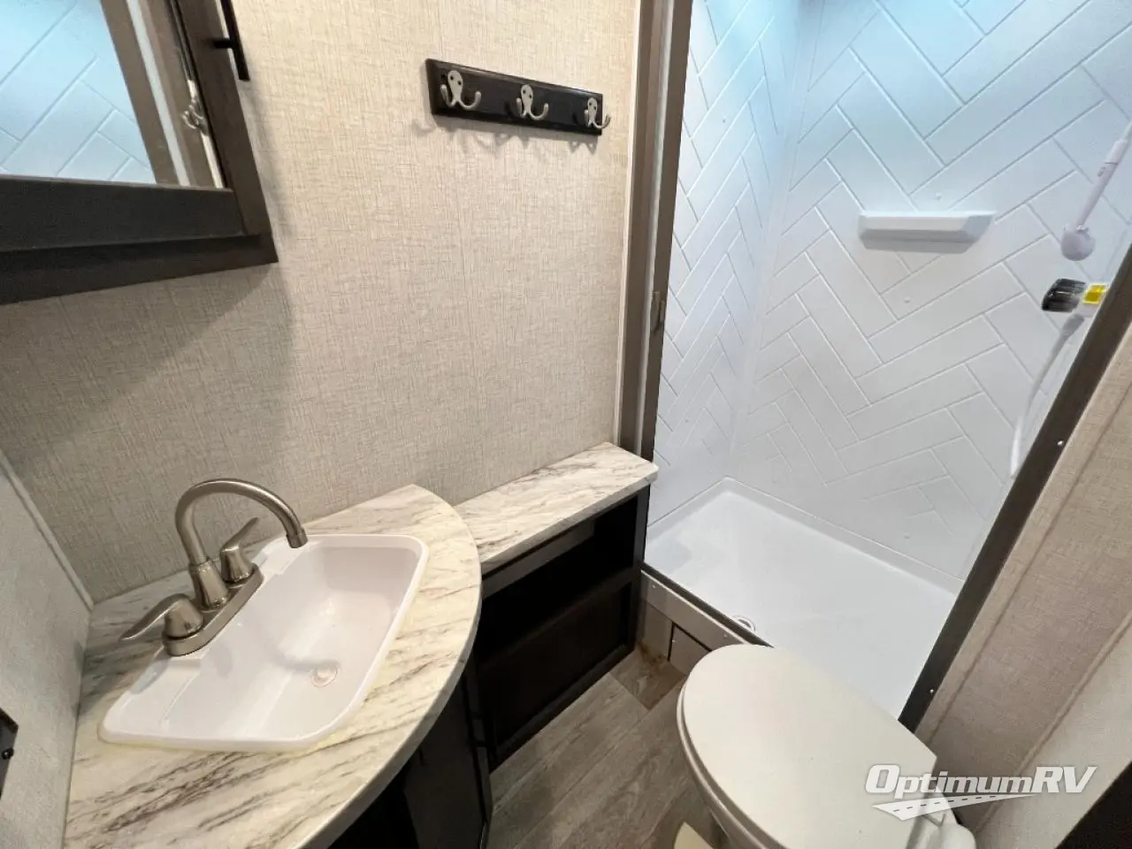 The CrossRoads RV Cruiser Aire fifth wheels and travel trailers have been made with your needs in mind. You will find many conveniences to make camping easier than ever, including Secure Stance entry steps, a Keyed-A-like lock system, a friction hinge entry door with a window, and more! The one piece seamless Super Flex roof includes a rear roof ladder so you can easily clean the top of your unit after a weekend in the woods. You can easily bring along all of your necessities with convenient storages spaces, like the full truck under-bed storage, the spacious bedroom closets, and the exterior heated pass-through storage. The high-rise faucet in the kitchen will make clean-up a breeze, and the hardwood cabinet doors will give that extra touch-of-home!