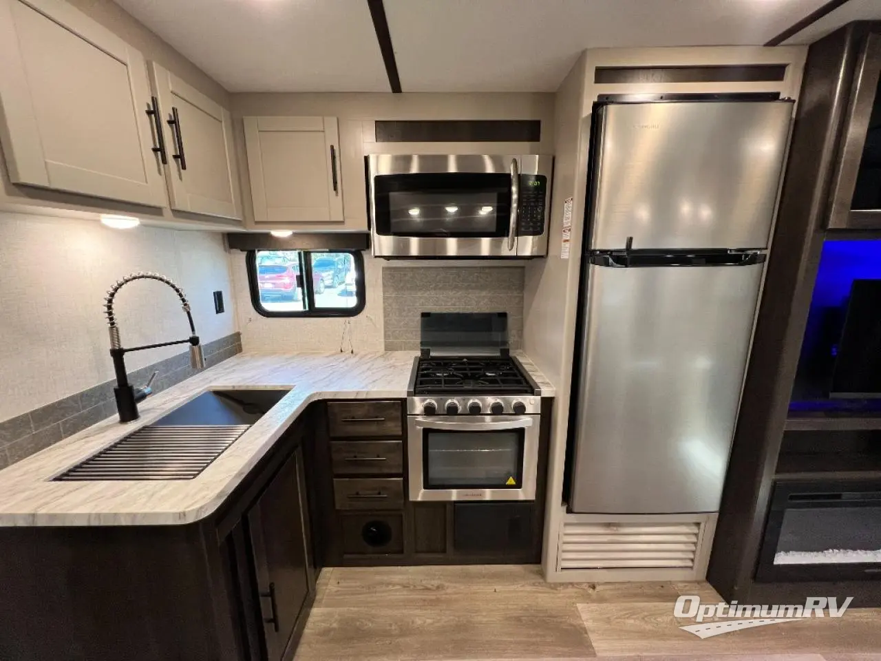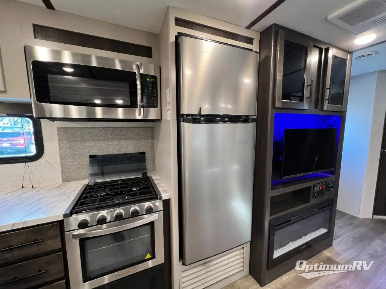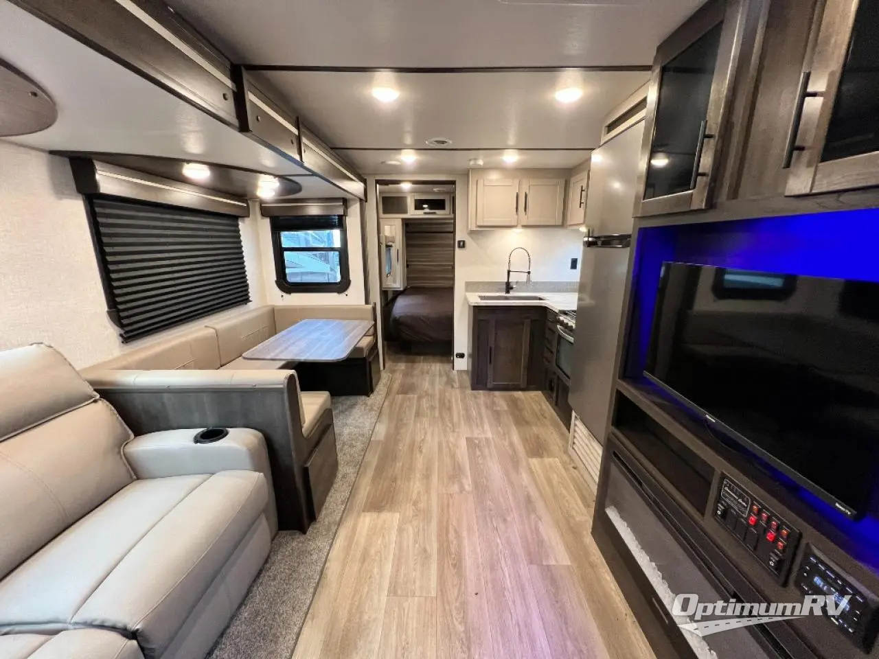 The CrossRoads RV Cruiser Aire fifth wheels and travel trailers have been made with your needs in mind. You will find many conveniences to make camping easier than ever, including Secure Stance entry steps, a Keyed-A-like lock system, a friction hinge entry door with a window, and more! The one piece seamless Super Flex roof includes a rear roof ladder so you can easily clean the top of your unit after a weekend in the woods. You can easily bring along all of your necessities with convenient storages spaces, like the full truck under-bed storage, the spacious bedroom closets, and the exterior heated pass-through storage. The high-rise faucet in the kitchen will make clean-up a breeze, and the hardwood cabinet doors will give that extra touch-of-home!