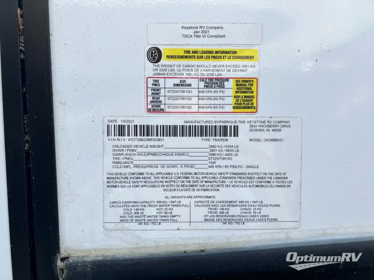CrossRoads RV Cruiser Aire travel trailer CR28BBH highlights: