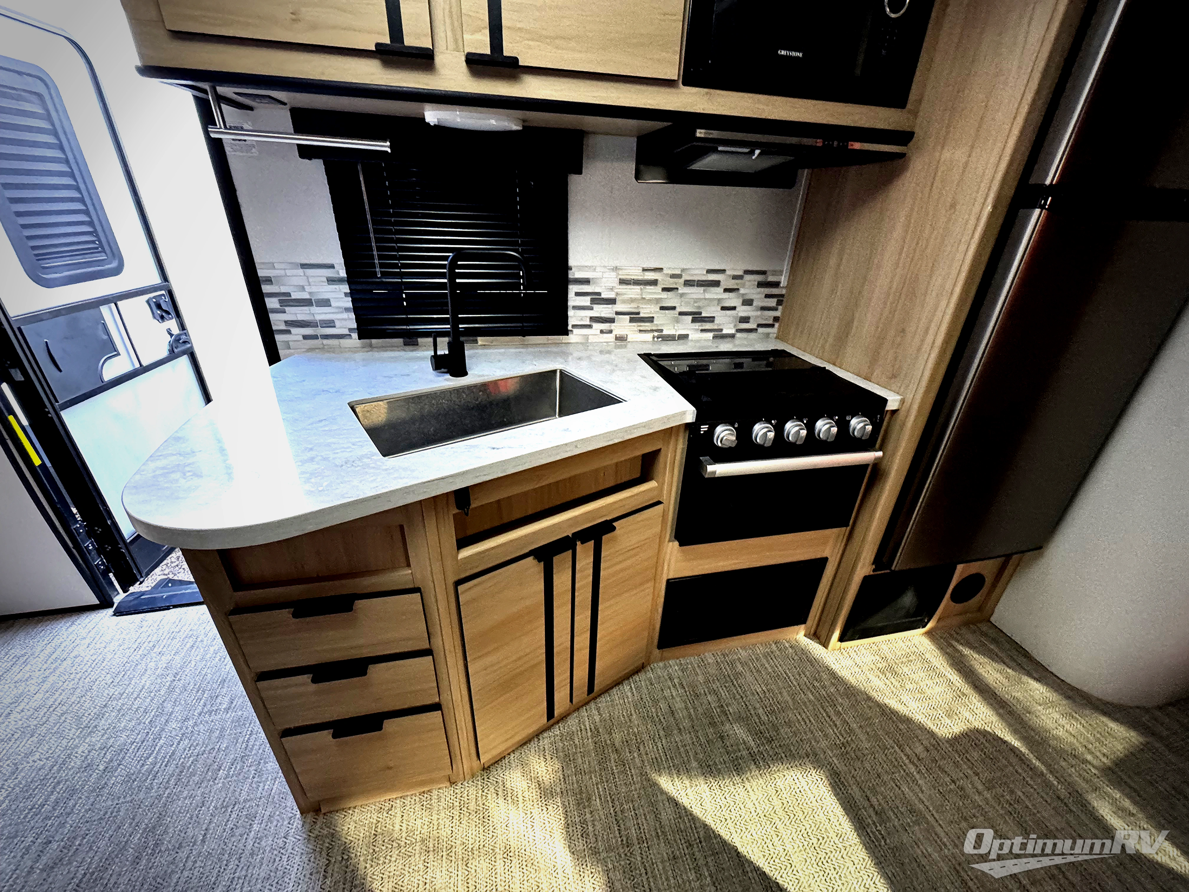 Enjoy full featured luxury camping in a Radiance Ultra Lite travel trailer by Cruiser! These lightweight units feature Azdel composite laminated walls, a 6' 11" barrel roof, and 5-sided aluminum construction for a strong, sturdy RV made to last. You will also appreciate the patent pending Full Belly Storage for all your gear, and the painted, fully molded fiberglass cap for a clean sleek look. The inside will be easy to keep clean since there is no carpet throughout, and the black-out roller shades in the living area will provide privacy when the campground is busy. Each model includes seamless countertops throughout, plywood flooring, plus more drawers, cabinets, and cubbies for all your belongings. These models also include a dual ducted A/C system to keep your comfortable, a patent pending king bed slide system, and industry-leading ceiling heights to make you feel right at home!