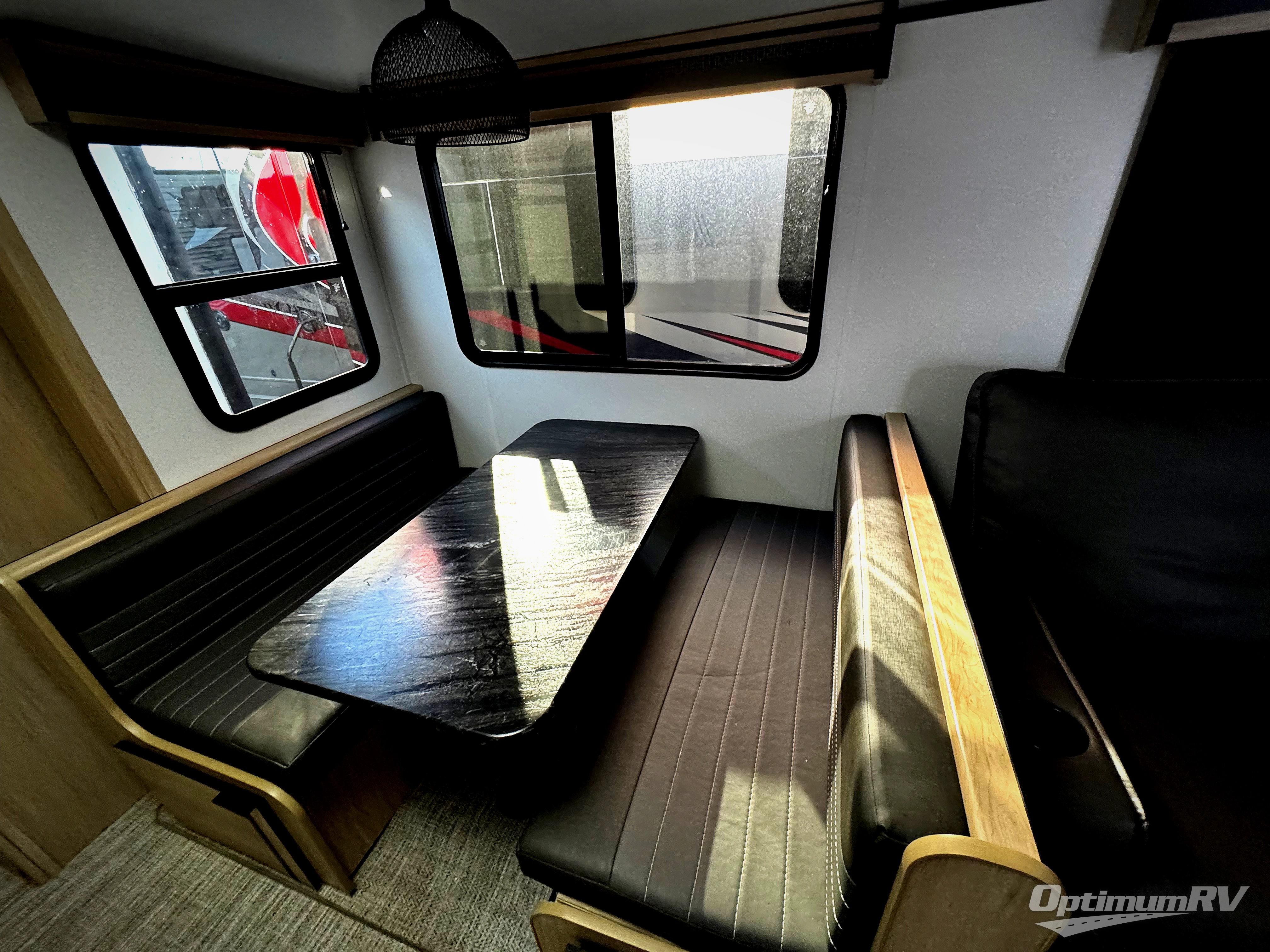 Dual entry doors, a private bunkhouse, plus an outside kitchen; this model has it all! You can sleep nine people comfortably each night, and the double slides provides ample space to move around freely. Let the kids or your guests play a game of cards at the booth dinette, or they can sit at the picnic table under the 19' awning with LED lights. The front private bedroom includes a sliding king bed for convenience and you'll find plenty of storage space for your bags, flashlights, and special belongings!
