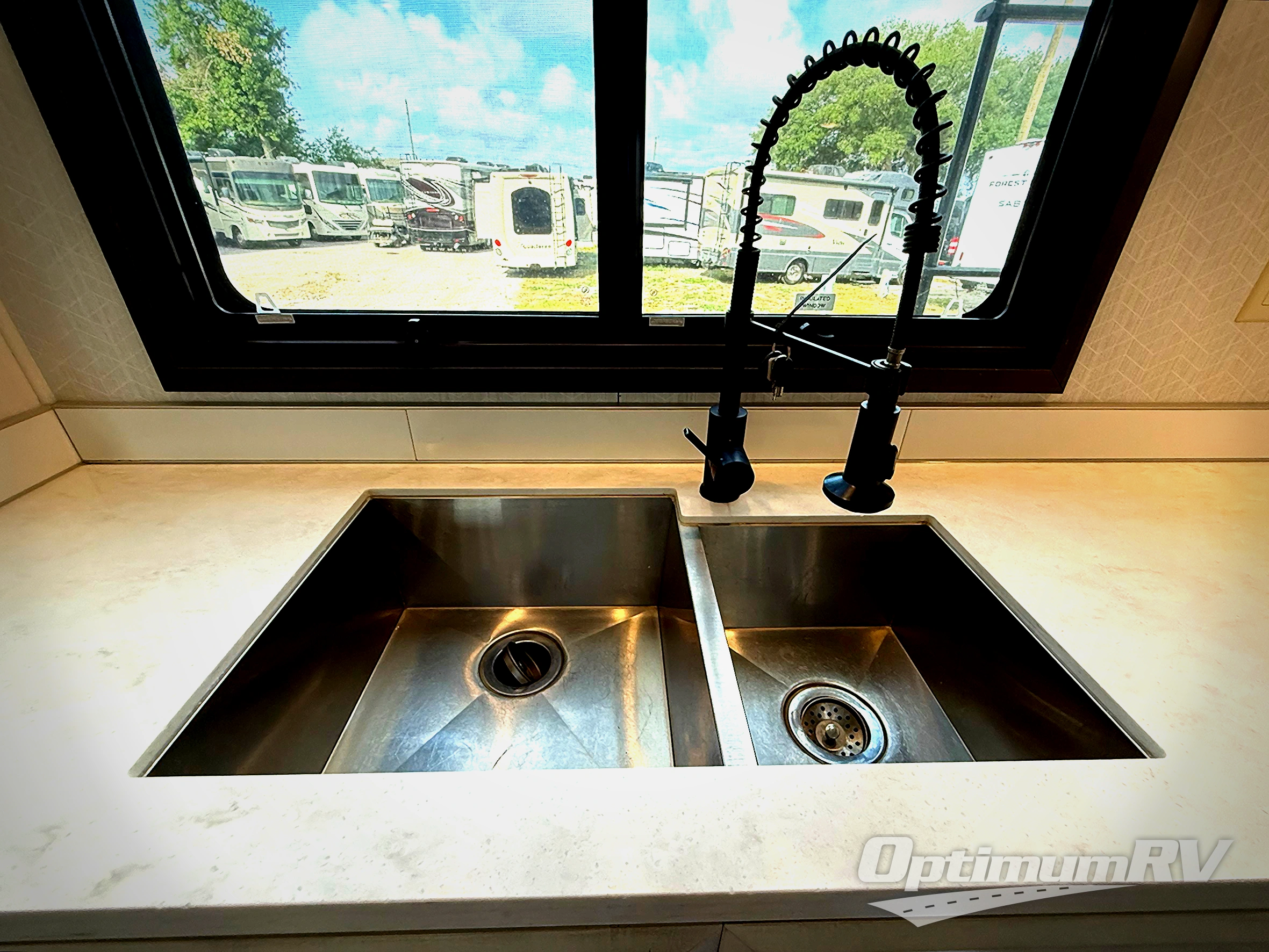With any Mobile Suites fifth wheel by DRV Luxury Suites you will enjoy durable construction, beautiful interiors, and tons of storage spaces. The MORryde I.S suspension with MORryde pin box helps absorb road shock for a smooth towing experience, and the six point hydraulic leveling system will make set-up a breeze. Each model includes hassle-free conveniences, like the SeeLevel tank monitoring, the fully ducted A/C system with cold air return, solar prep, and much more! The interior is packed with luxury features, such as custom hardwood wardrobe doors, LED ceiling lights with dimmer switches, crown molding throughout, and custom hand laid glass backsplash. You may spend all your time relaxing indoors, but don't forget to check out the exterior. A power awning with LED lights, extra thick compartment doors with gas struts, and a custom painted exterior with clear coat are just a few features that are sure to be a deal breaker!