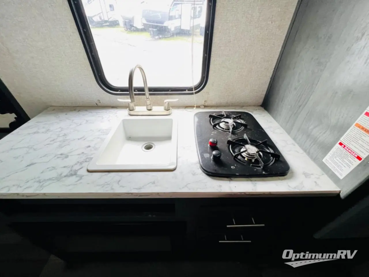 Step inside this travel trailer and see just how fun your next camping trip can be! The kids will love the set of rear corner bunk beds and you will love the front queen-size bed, plus the booth dinette can transform into an extra sleeping space when not in use. You can rinse the sand off in the rear corner bathroom, grab a cold drink from the 3.3 cu. ft. refrigerator, and then head outside and relax underneath the 10' power awning with LED lights!