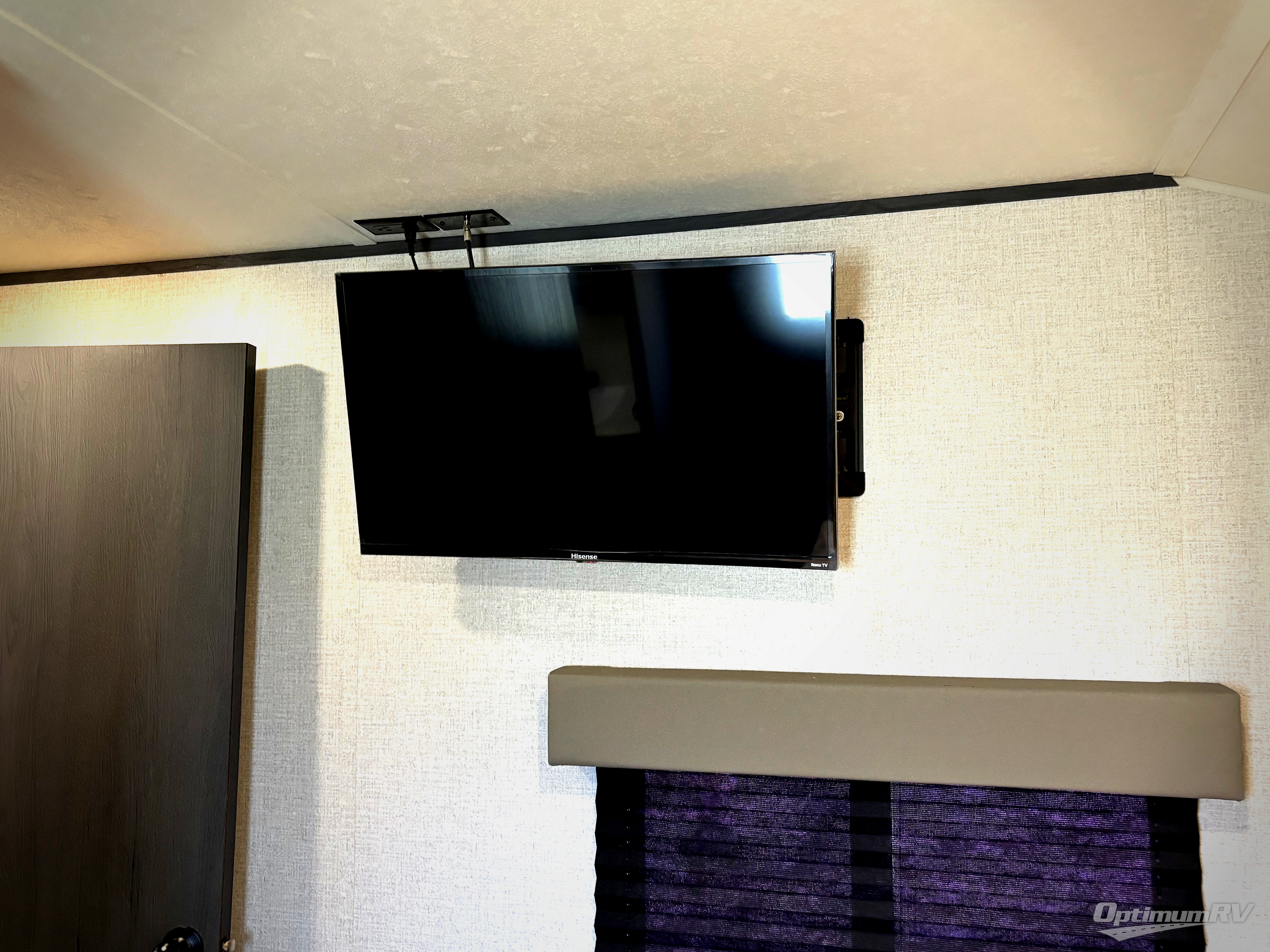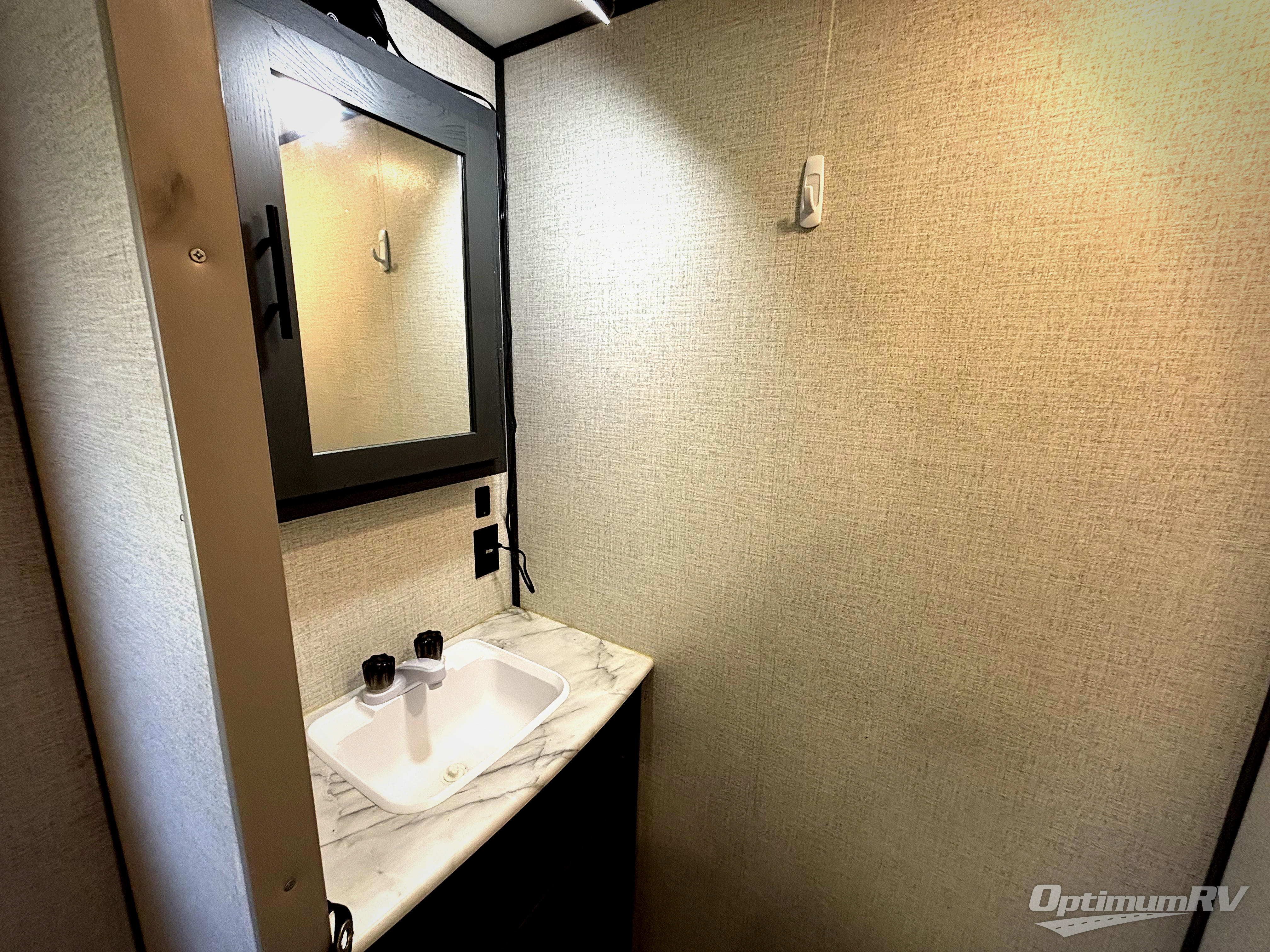 This travel trailer is decked out in features you will love! From the U-shaped dinette and sofa slide across from the hinged entertainment center with a fireplace to the front private bedroom with its very own private half bathroom. The kids will also have their own private bathroom with it being conveniently right next to the set of rear corner bunk beds. Whether you cook indoors on the three burner cooktop and oven or at the outdoor kitchen, you are sure to enjoy a delicious meal.