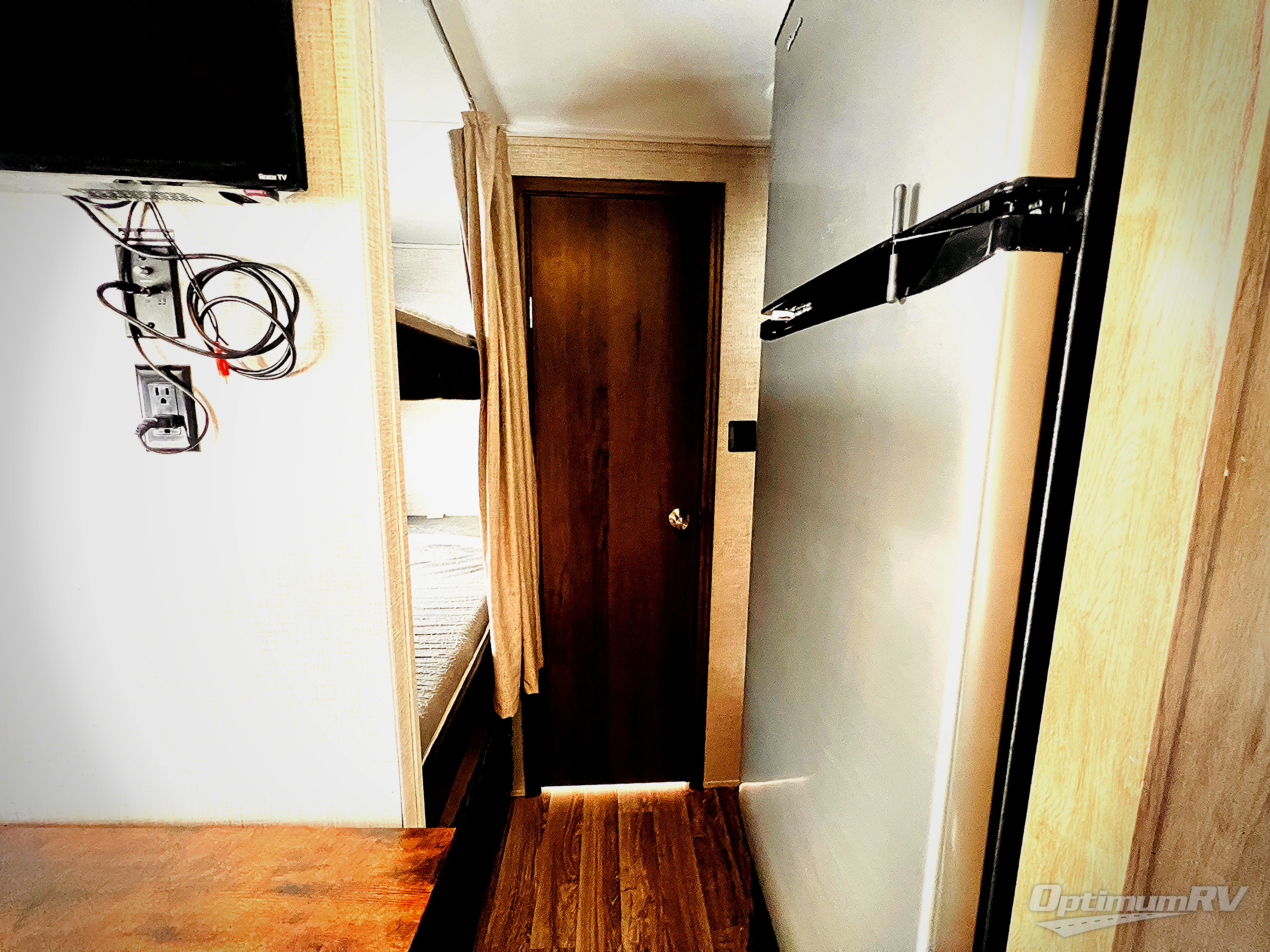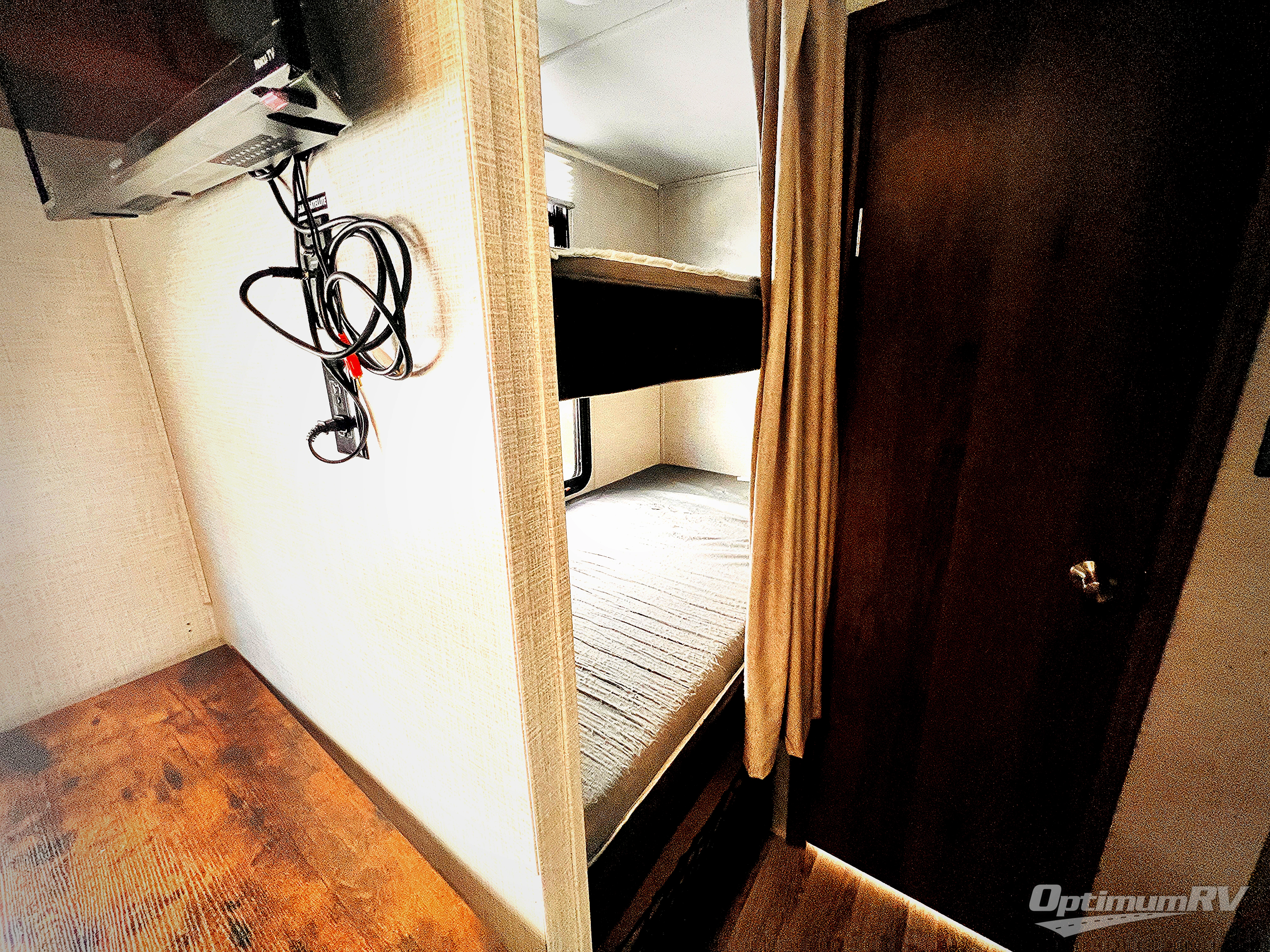 Where will your next scenic destination be with this Della Terra travel trailer? You'll be able to explore your favorite mountain range or hike within your state's local park while still enjoying home-like comforts at the end of the day. The king-size bed will provide the ultimate relaxation throughout the night, and the double-size bunks will provide such a fun experience for your kids. You will be grateful that the private toilet and shower/tub room with a bath sink just outside the door is located right next to the bunks so that your kids don't have to wander far in the middle of the night. When the sun rises, you can all come together with a hot breakfast at the booth dinette and jackknife sofa. And you might like to add the optional outside kitchen with a fridge and pull-out griddle for more choices when cooking.
