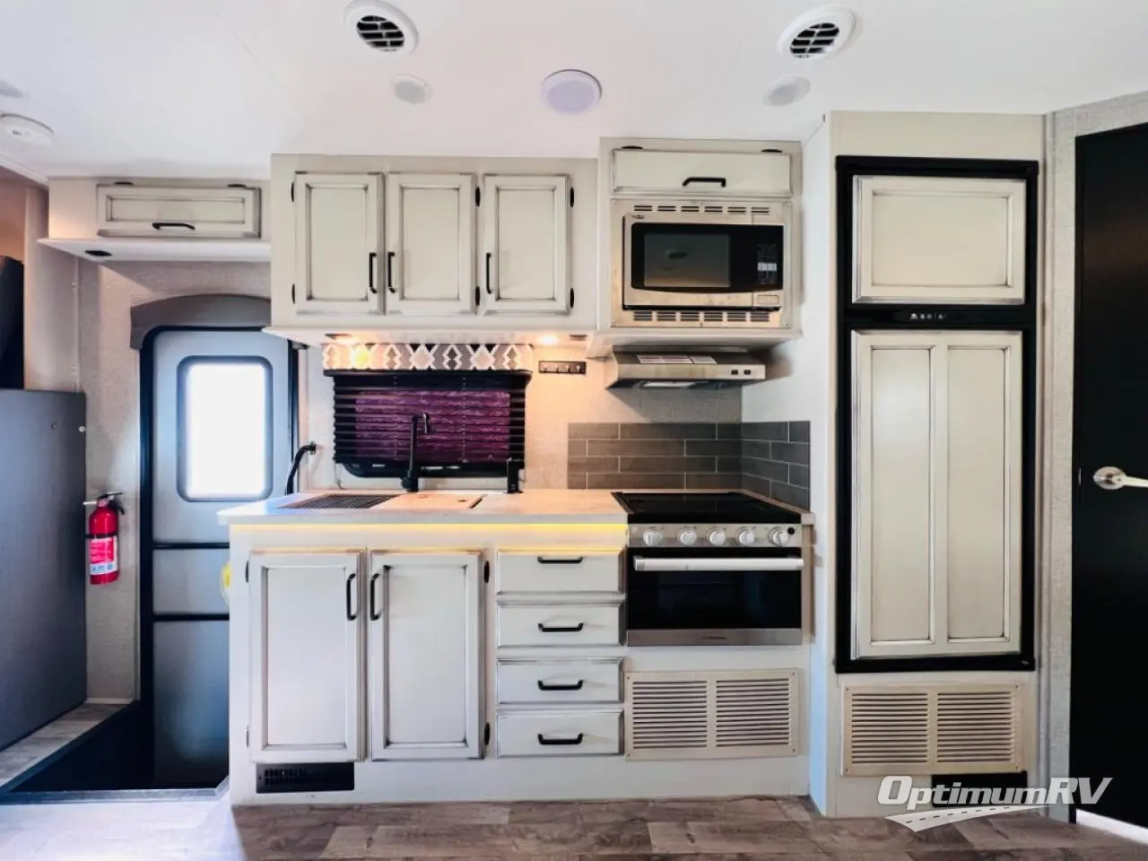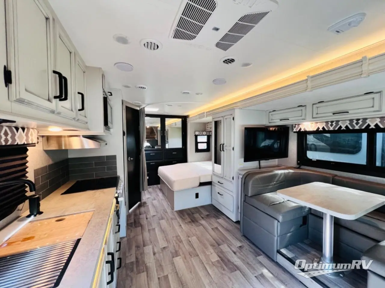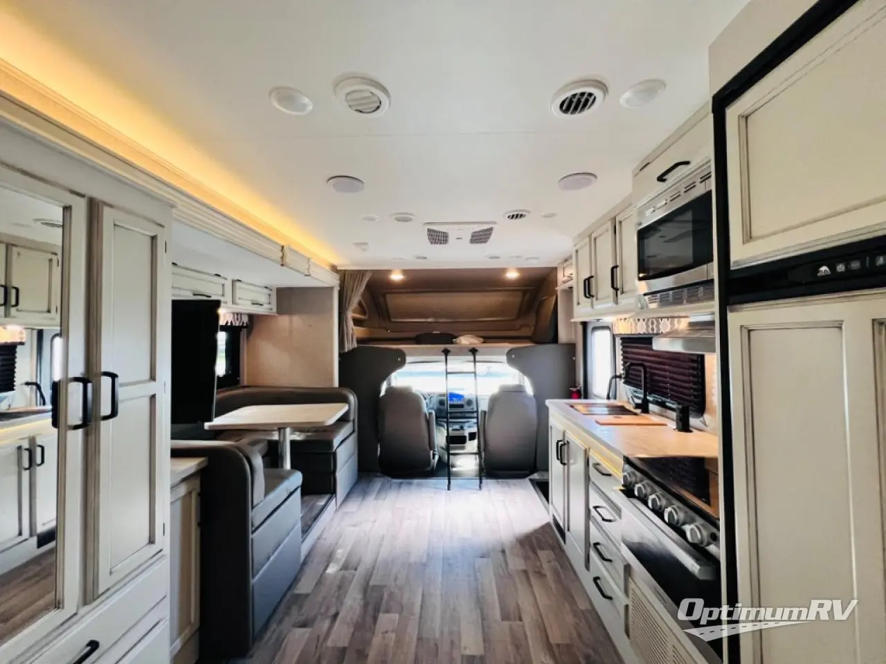 Invite the grandkids to see the Grand Canyon in this comfortable motorhome. Once you arrive at your destination, move the swivel captain's seats around to be a part of the conversation, and the kids can sit at the U-shaped dinette. You can also choose to add the optional theater sofa in place of the U-shaped dinette if you're not needing the additional sleeping space. Easily prepare lunch on the Furrion all-in-one cooktop and oven, or use the convection microwave, and everyone can freshen up in the full bath before heading out to find a trail. This model includes plenty of storage, including a wardrobe and a pantry, a bedroom closet, plus ample overhead compartments for your special belongings. The queen bed will provide a great night's rest, and you can choose to add the optional TV here if you're wanting to watch the news in bed!