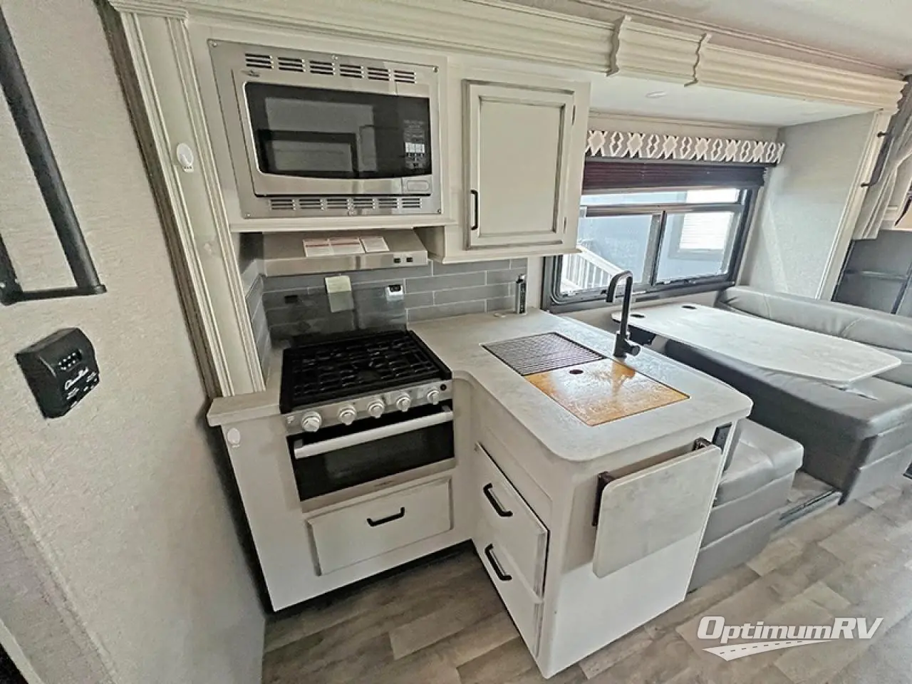 With any Odyssey Class C gas motorhome you will enjoy convenient and at-home features for a one-of-a-kind traveling experience. The kitchen includes decorative backsplash, LED-lit pressed countertops, plus a pop-up charging station with 110v outlets and USB plugs for your tablet or phone. You'll find an LED HDTV in the living area, as well as an interior command center to control your units functions with ease. Outside, the electric awning with LED lights and two high-output marine-grade exterior speakers will create an outdoor living space you are sure to love, and you can fill the dogs water bowl up with the outside shower. The Odyssey also features E-Z Drive, which includes a computer-balanced driveshaft, rubber isolation body mounts, Hellwig helper springs, plus more to provide a smooth ride across the country!