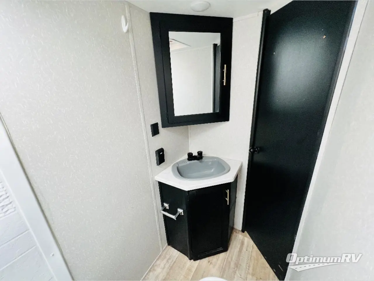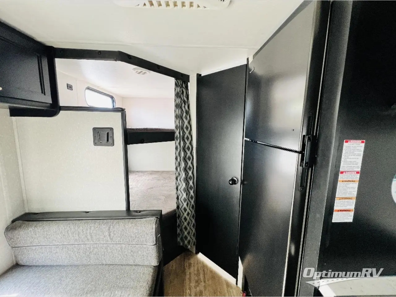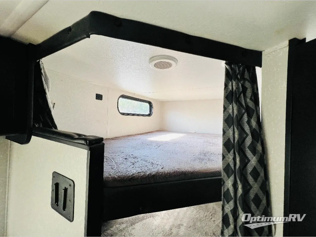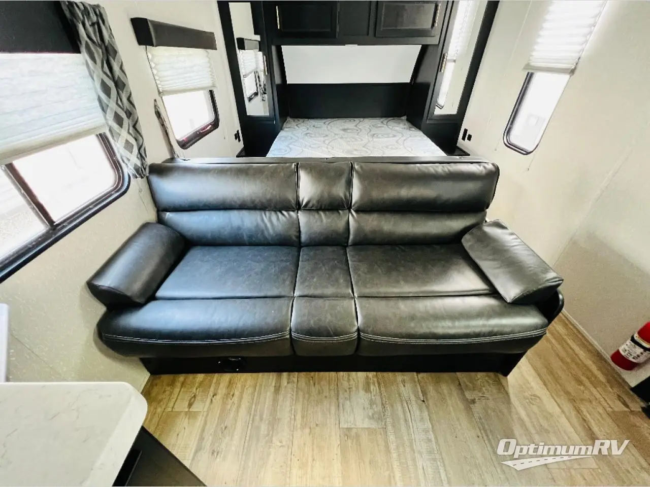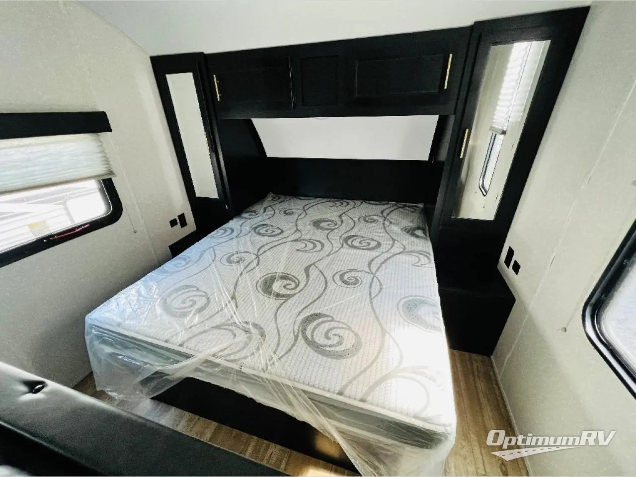 Enjoy cooking for your family of nine in this Cherokee Grey Wolf travel trailer. With a three-burner cooktop, an overhead microwave, and an oven, you can easily cook just like home. The residential farm-style stainless steel sink makes cleaning your larger pots and pans quite simple, and the large overhead cabinets make storage an easy task as well. There is plenty of seating for the whole gang with the sofa and the booth dinette to play a game or two after you have enjoyed your delicious meal. Your kiddos are sure to love having their own set of double-size bunks conveniently located next to the rear bath, and you will love having your own front semi-private bedroom when you close the privacy curtain. You can also create some outdoor living space beneath the 15' power awning so that you can enjoy the great outdoors whether rain or shine!