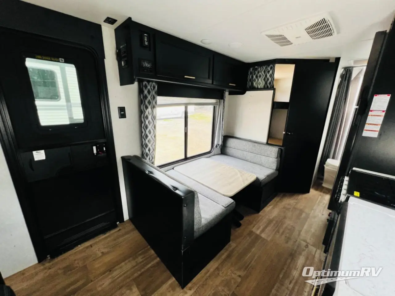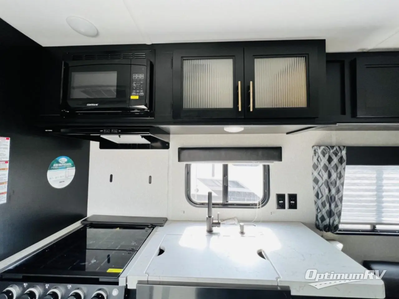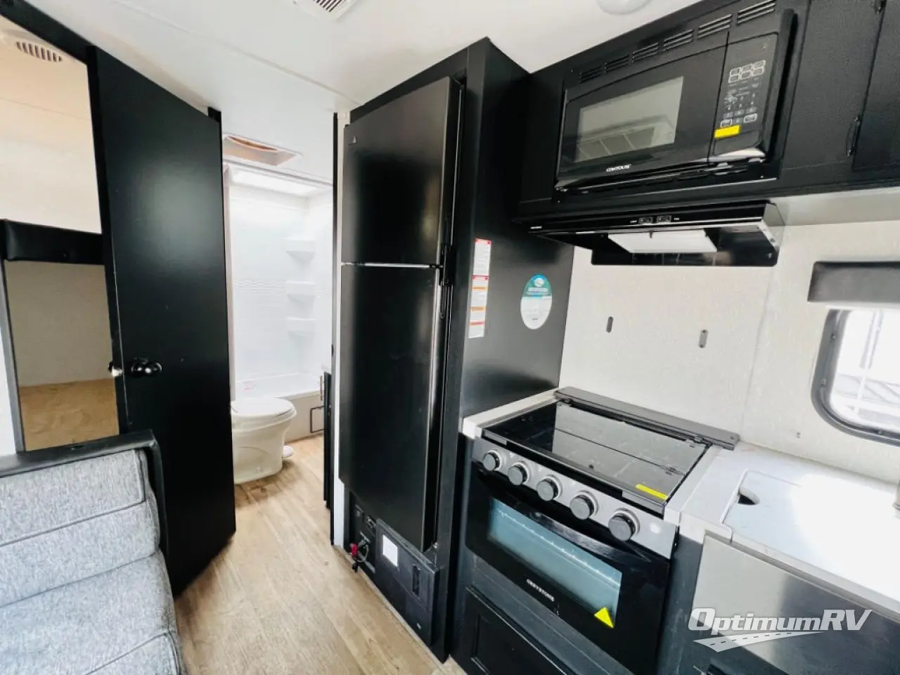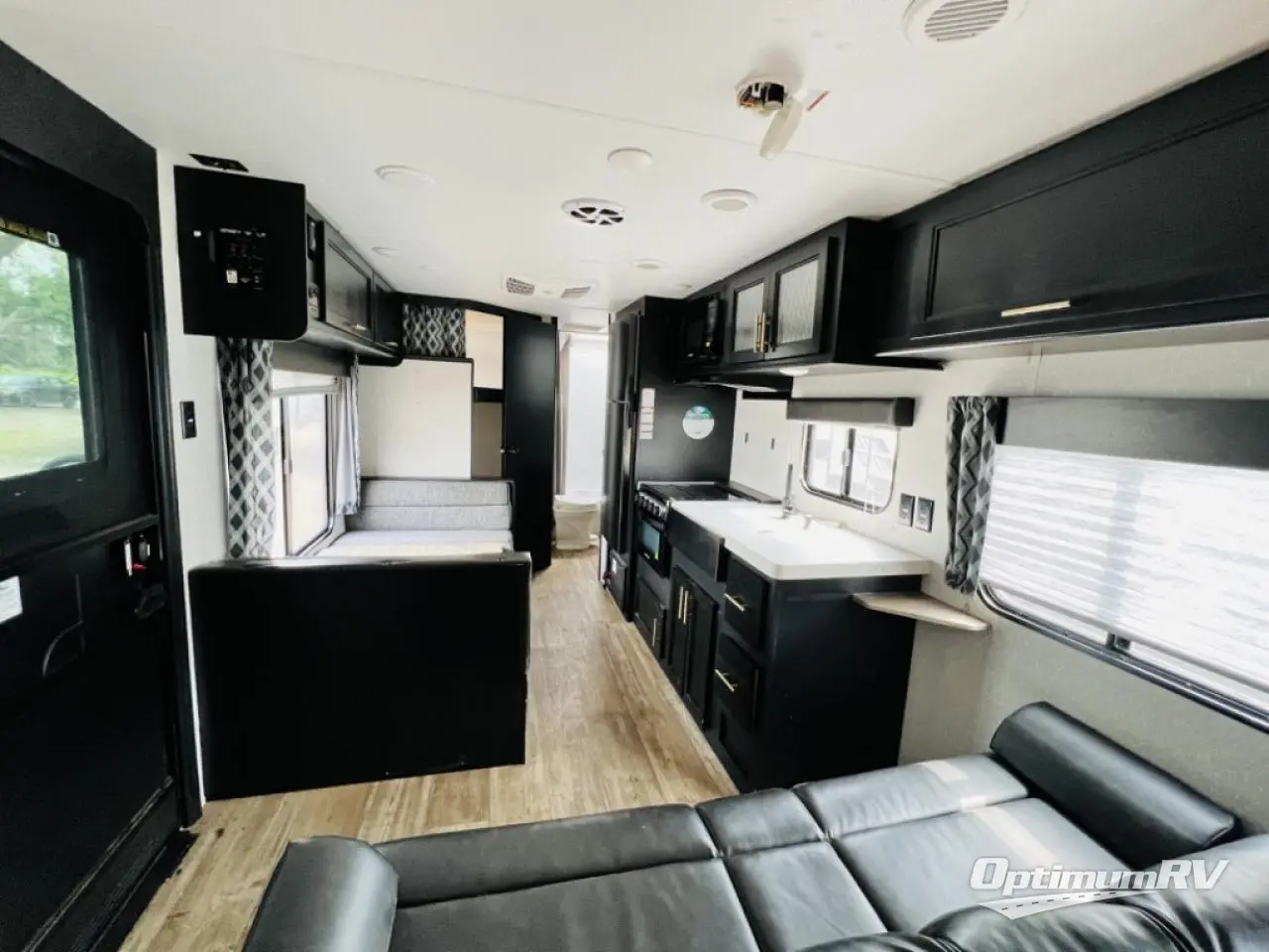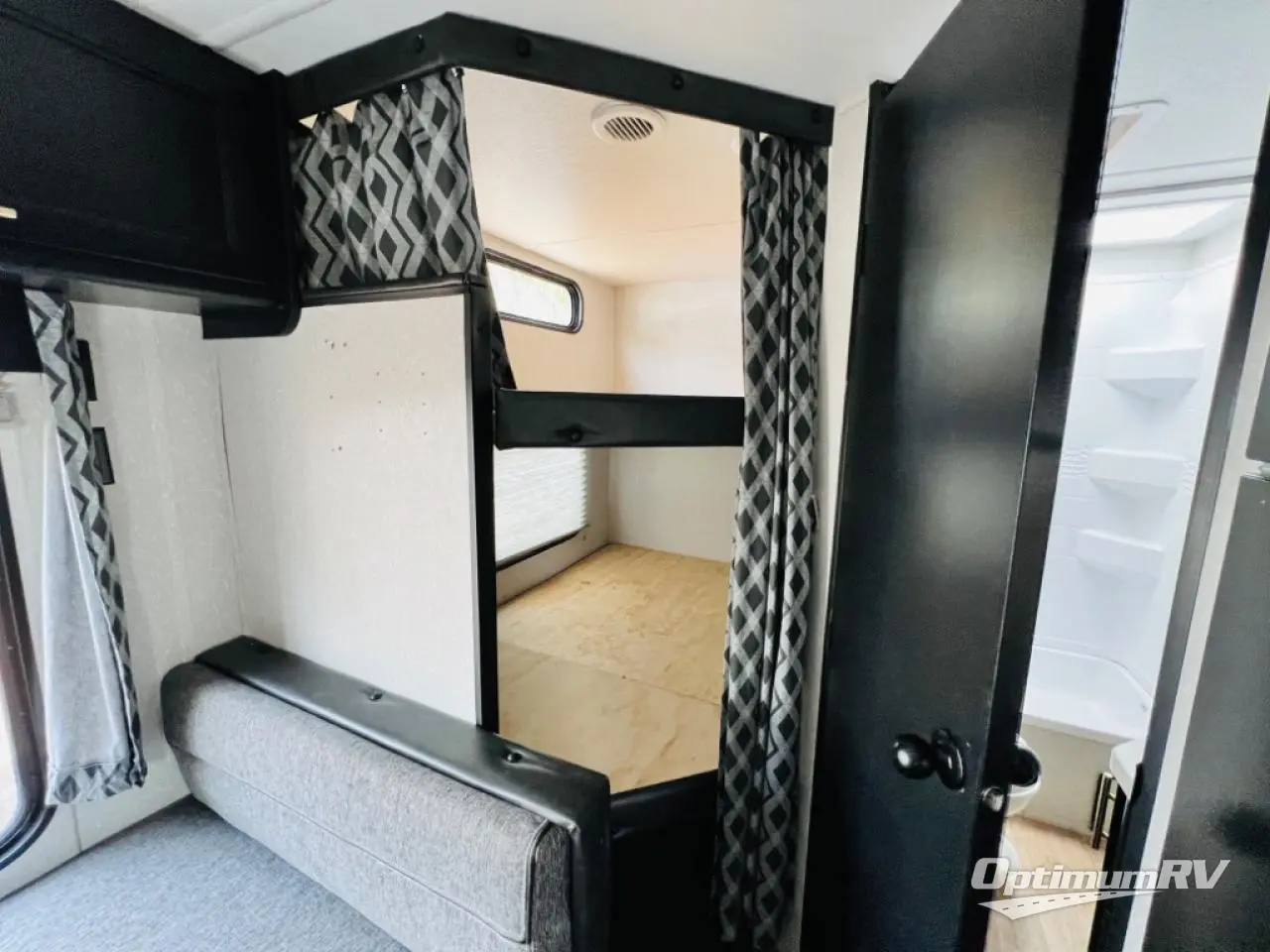 Enjoy cooking for your family of nine in this Cherokee Grey Wolf travel trailer. With a three-burner cooktop, an overhead microwave, and an oven, you can easily cook just like home. The residential farm-style stainless steel sink makes cleaning your larger pots and pans quite simple, and the large overhead cabinets make storage an easy task as well. There is plenty of seating for the whole gang with the sofa and the booth dinette to play a game or two after you have enjoyed your delicious meal. Your kiddos are sure to love having their own set of double-size bunks conveniently located next to the rear bath, and you will love having your own front semi-private bedroom when you close the privacy curtain. You can also create some outdoor living space beneath the 15' power awning so that you can enjoy the great outdoors whether rain or shine!
