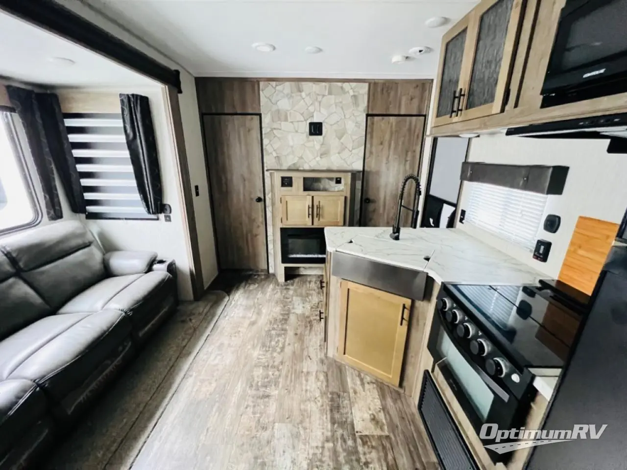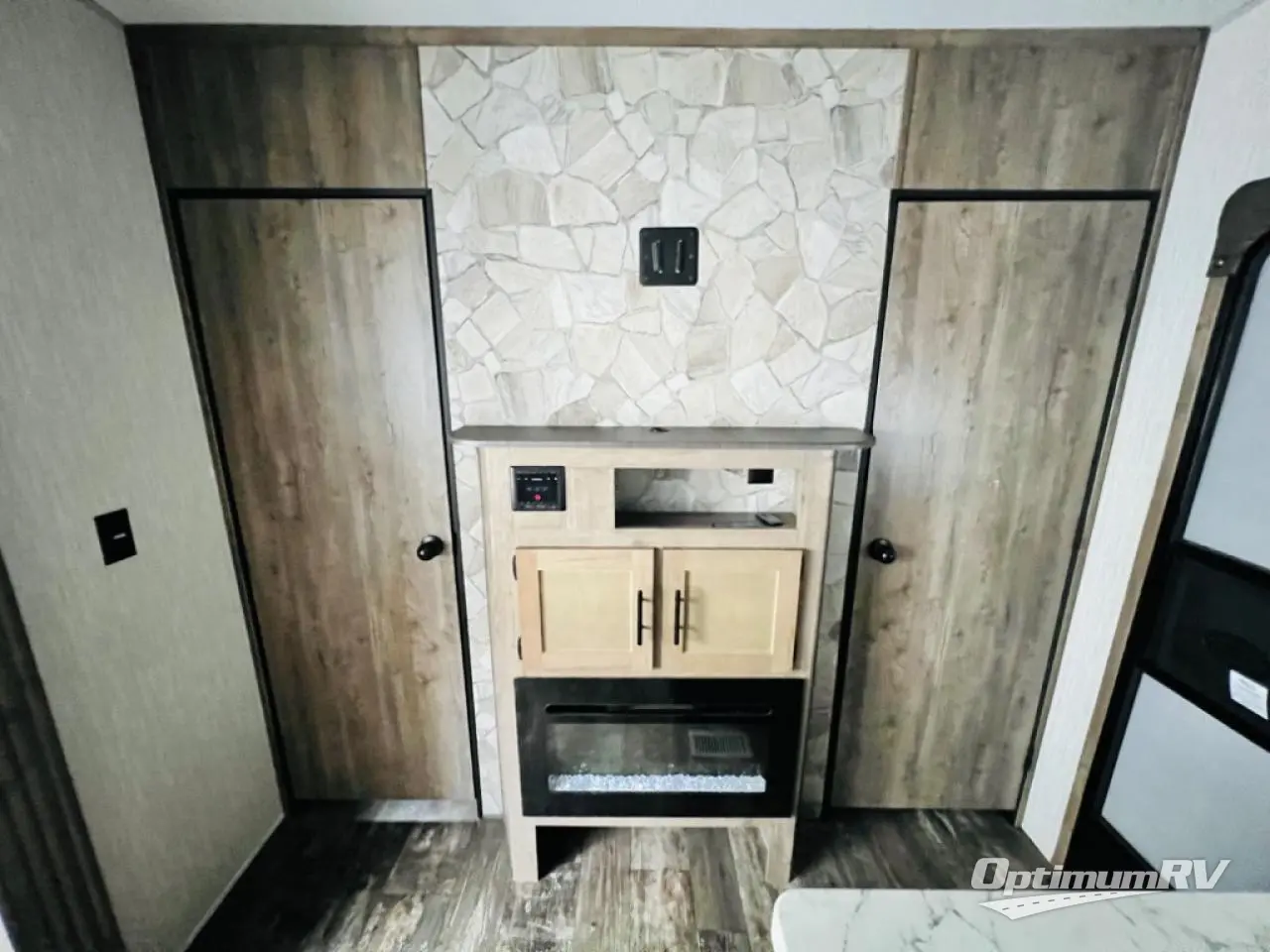This toy hauler travel trailer allows you to kick up the fun on your camping trip. Once you unload your toys from the 12' separate garage, load them up with the 30 gallon fuel station outside. The kids can play a game on the removable dinette table, or take a rest on the Happijac power bed above. Since this model includes dual entry doors, you can easily enter in through the garage, or the kitchen and main living area. The fireplace will make for a cozy evening indoors as you dine around the U-shaped dinette. And when you're ready for bed, the Wolf Pack king bed will be waiting for you!