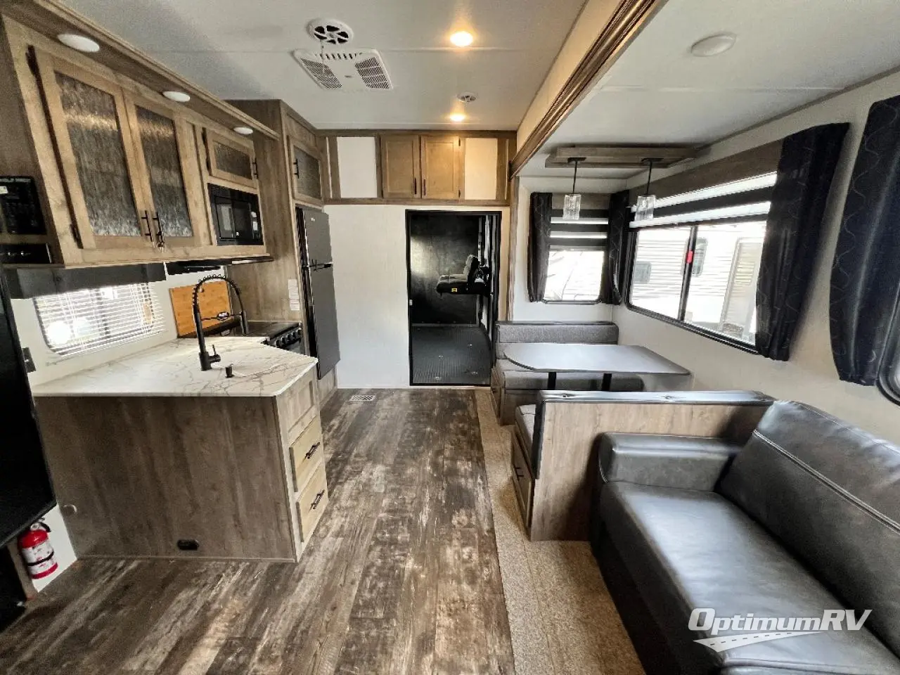 The versatile Cherokee Wolf Pack toy haulers are ready for all your excursions! Each model includes a true high gloss gel coat, a 102" wide body design, and a forced air heated underbelly and enclosed holding tanks so you can camp year around. You will enjoy hassle-free features such as, the in cab tire pressure monitor system, the Happijac bed lift system, and the 100 gallon fresh water capacity. Each model includes a shower skylight, LED interior/exterior lights, Zebra shades in the living area, and a black stainless steel farm sink for that added touch-of-home. The fifth wheels include stabilizer jacks, a second 15K A/C unit in the bedroom, and 50 Amp service. You will appreciate 30 Amp service in the travel trailers, a power tongue jack, and ramp door cables. These toy haulers also include USB charging stations to keep all your gadgets charged and ready to go, premium Teddy Bear bunk mats for comfortability, and a reverse activated light and backup camera for easy loading and unloading!