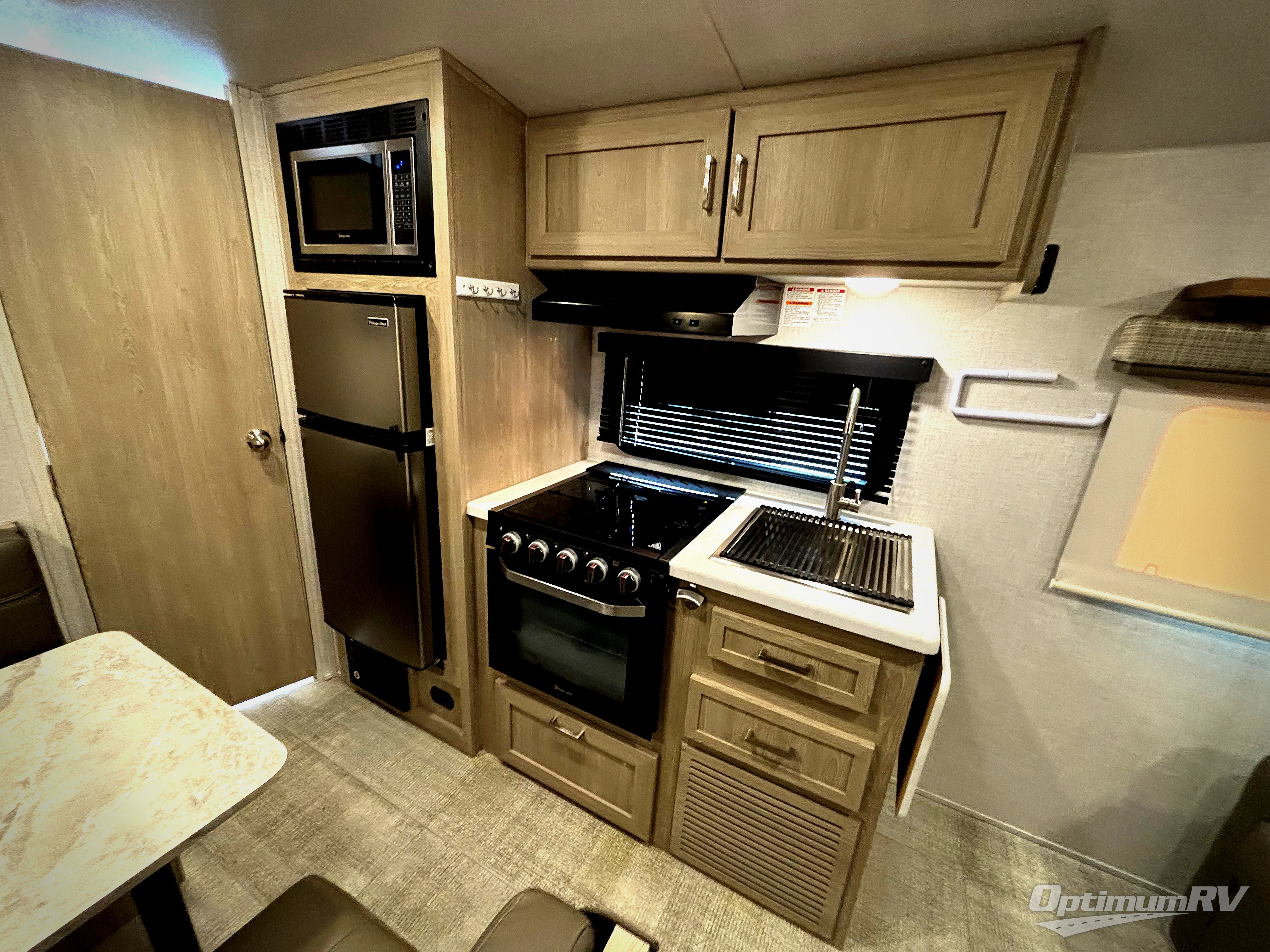 Ready, set, camp! For the camping enthusiast that appreciates convenience and full amenities, this Flagstaff E-Pro travel trailer is the one for you! You get to choose if you want to sit on the sofa or sleep on the Murphy bed whenever you like. You also have a booth dinette for extra seating and sleeping space. The rear full bath allows you to wash up after a fun day outdoors without having to use the public facilities, and you can cook inside on the cooktop and in the microwave or outside on the exterior griddle.