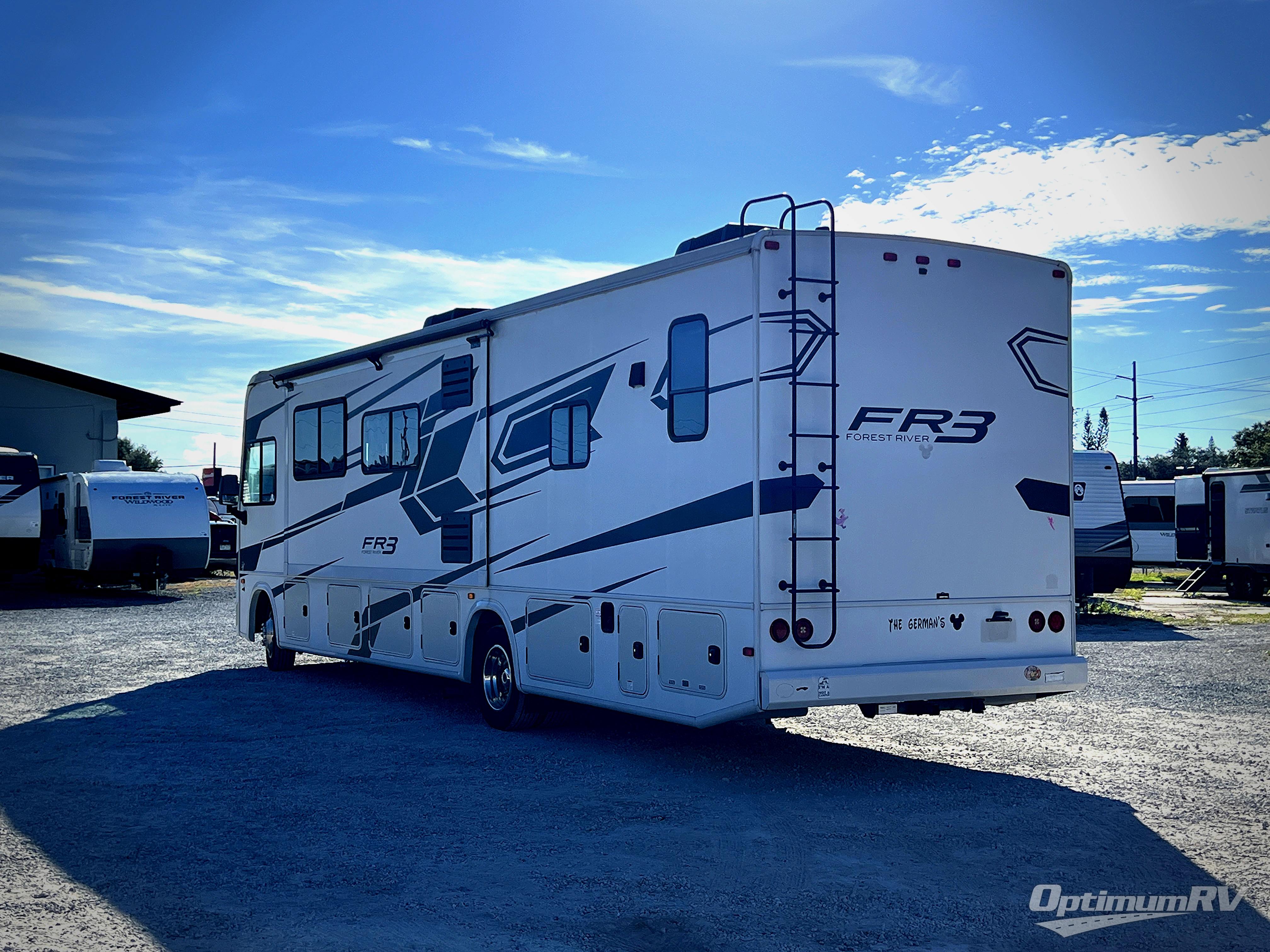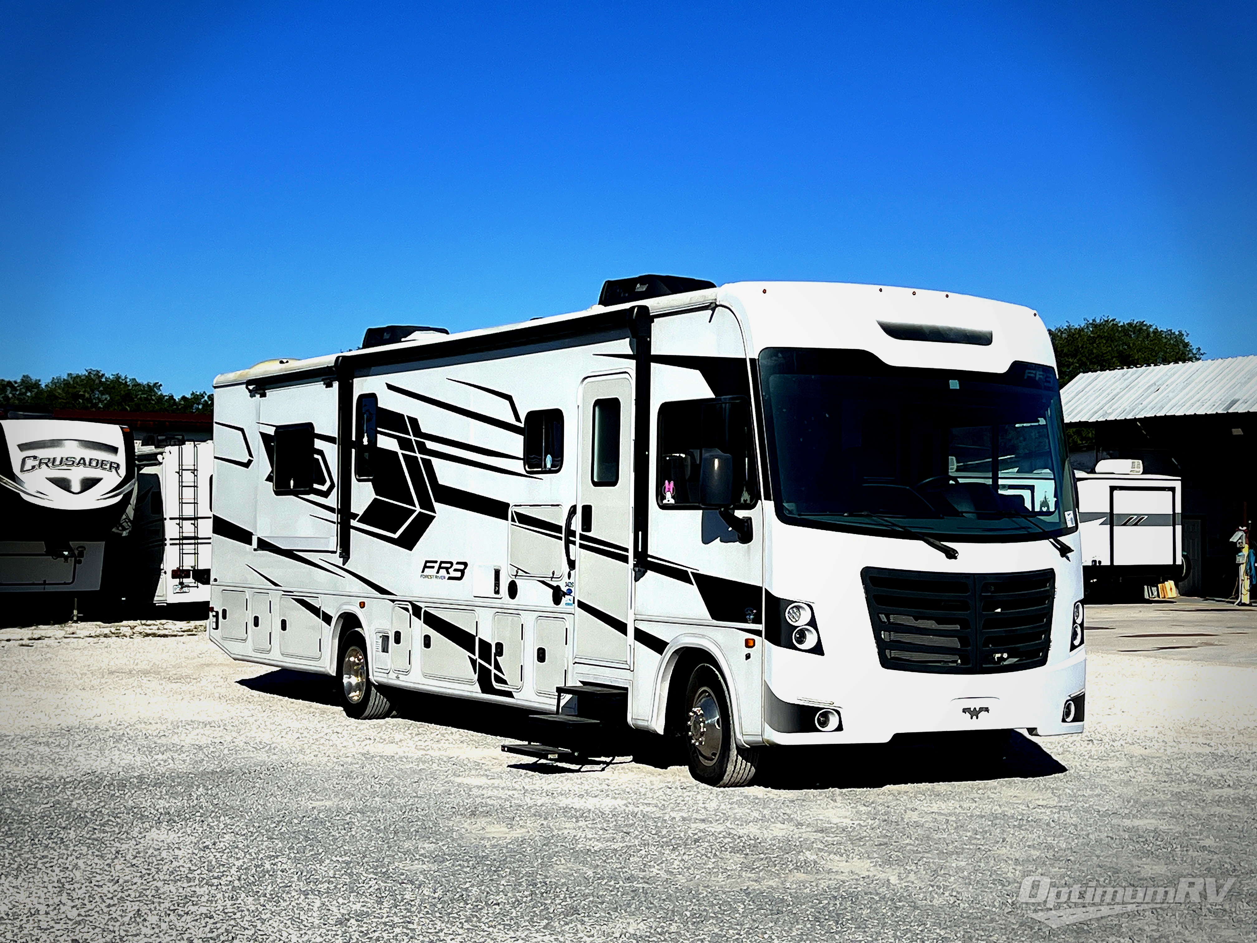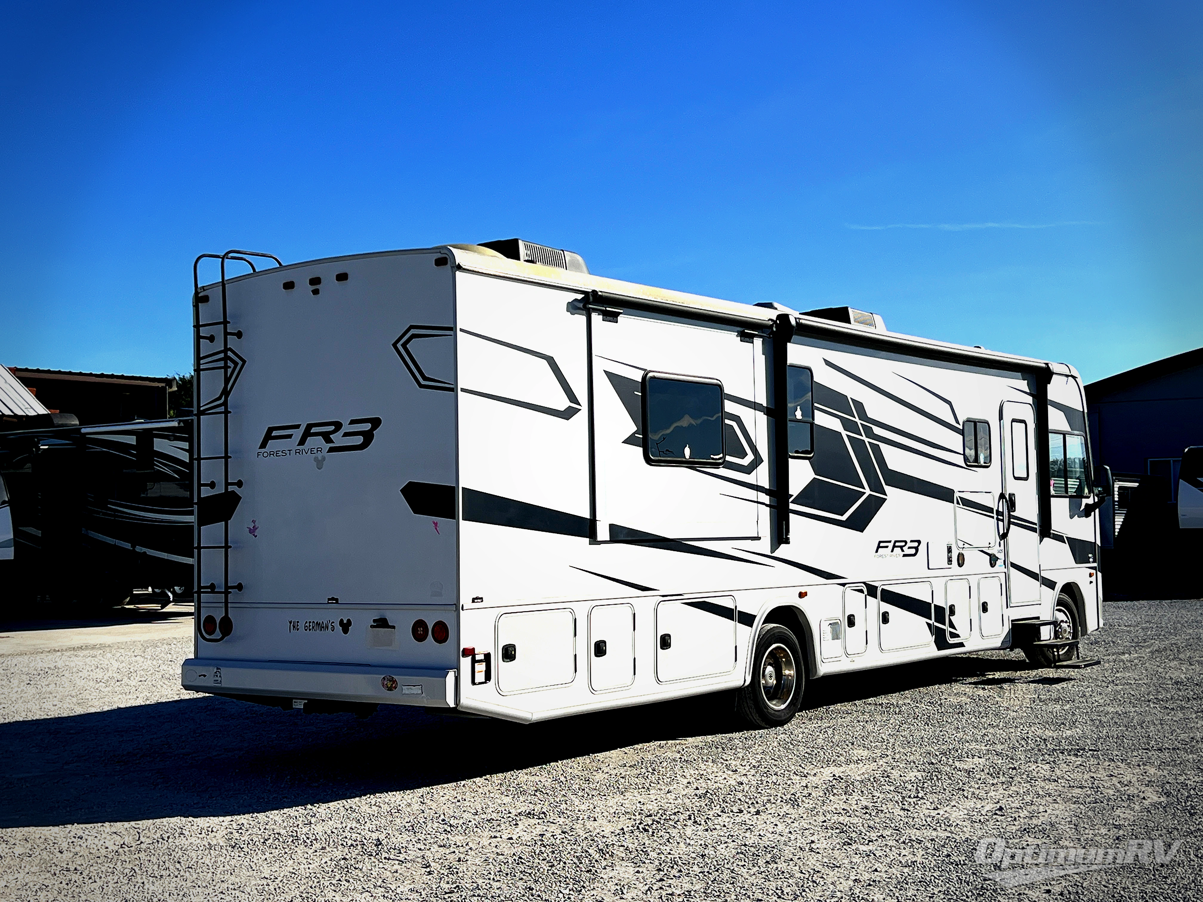 With each FR3 Class A gas motorhome by Forest River, you will find an easy-to-drive coach with a spacious interior allowing you to gather with friends and family with convenience and style found throughout! Each is built with vacuum-bonded construction, a one-piece fiberglass roof with extended rain spouts, a steel firewall and A-pillar extension, Bi-LED headlamps and lower LED fog lights, and grey Rotocast storage boxes with drains, plus more! Inside, you will enjoy black hardware, appliances, plumbing fixtures, and a glass shower door frame. Plus, you will also find a stainless steel kitchen sink with a bamboo cutting board and roll-up dryer, heavy-duty full-extension ball bearing drawer guides, dual-access dinette storage with doors, and nightstands with charging stations to keep your cellphones ready for whatever is next. Make your selection today!