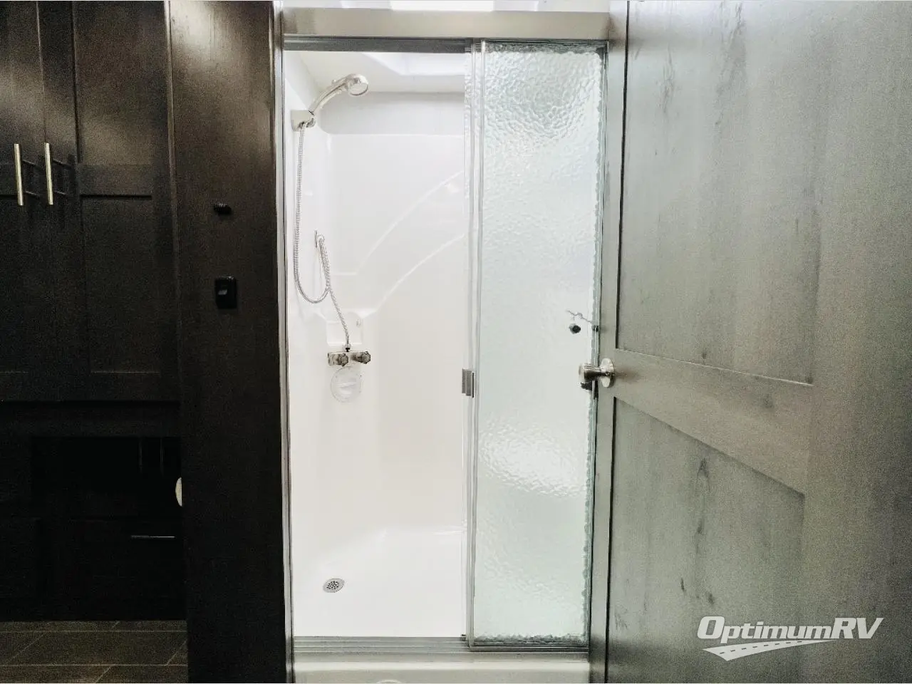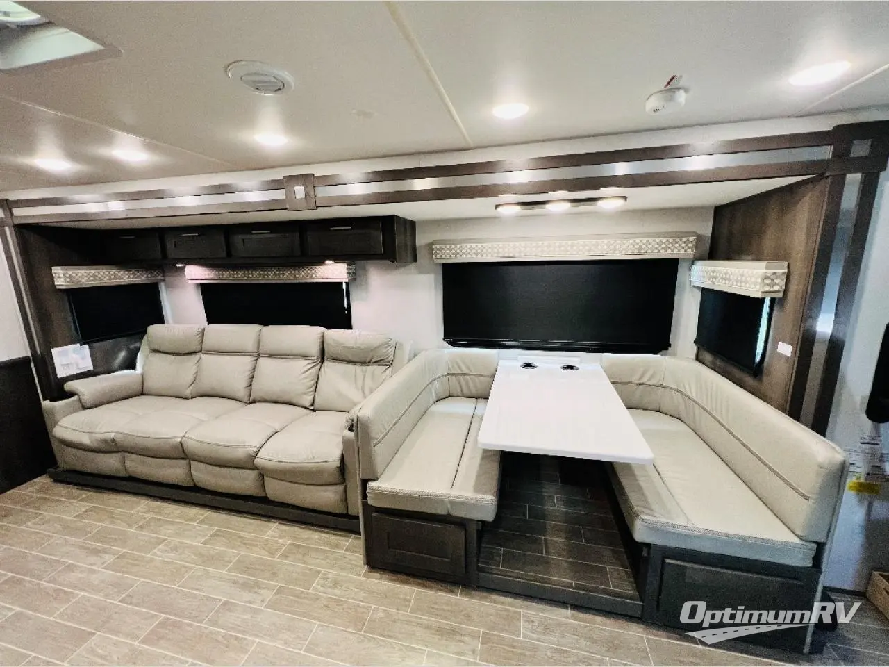 Get ready to enjoy each road trip with this Georgetown 5 Series Class A gas motorhome! You will be amazed at the beauty and attention to detail inside this model. Once you are parked, you will find plenty of room to relax throughout the day between the four-person theater seating and the dream dinette. The super-sized dream dinette is not only the best place to enjoy your meals, but it is also a great place to play a card game or two. While you're relaxing in the theater seating, you can enjoy the cozy fireplace and also watch your favorite movie on the 40" LED TV. If you have a little desk work to do, then the passenger work station is sure to come in handy. A key feature in the kitchen is the 18-cu. ft. refrigerator where you can easily stock up and store your perishables!