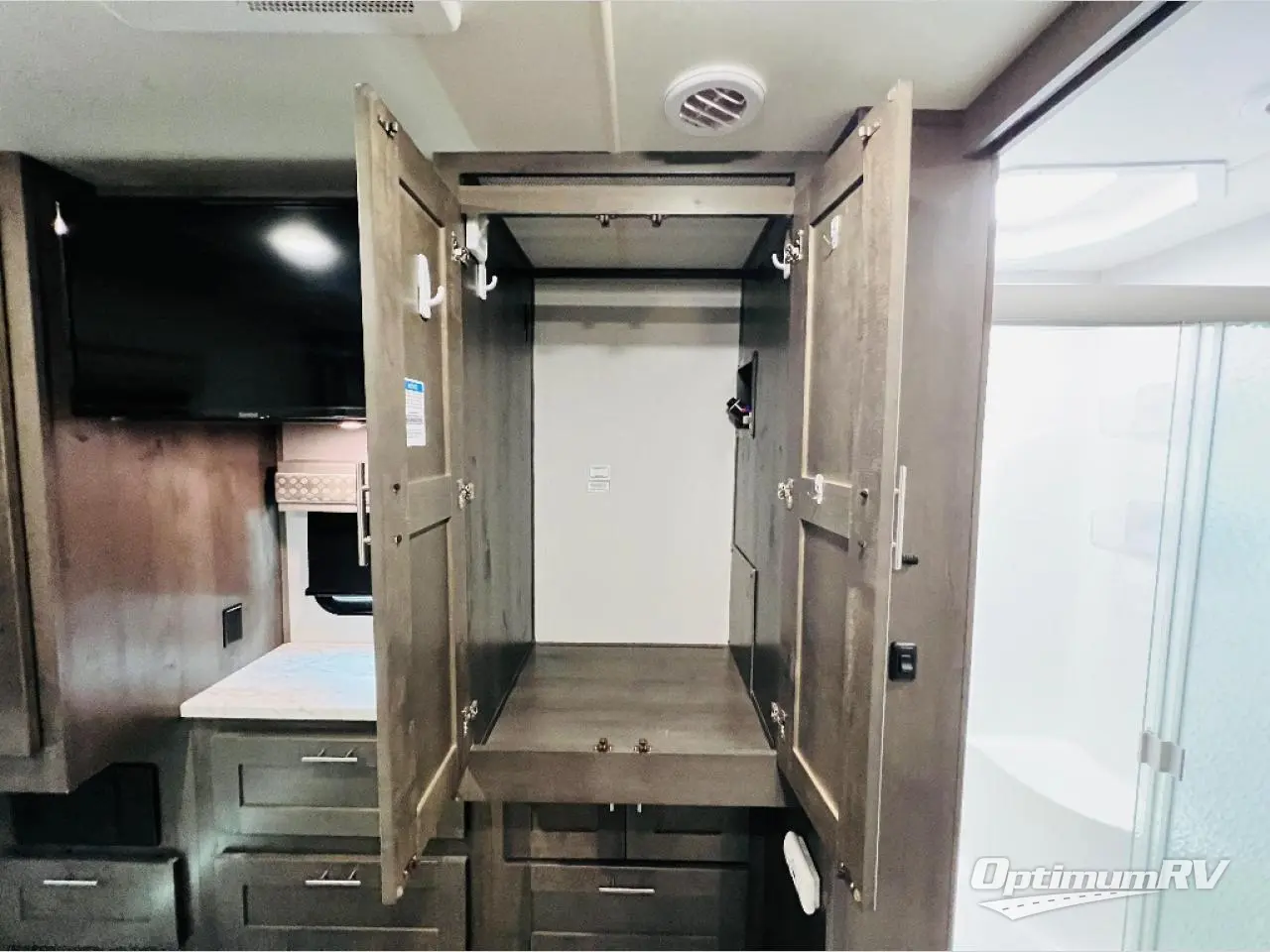 The Forest River Georgetown 5 Series Class A gas motorhome is a coach that is full of luxury, style, modern technology, and high-class features! You'll be so impressed with the exterior entertainment center that features a 40" LED TV with radio and external speakers, and the 115W solar panel with controller is essential for keeping your coach powered no matter what the trip throws its way. The automotive bonded panoramic windshield can be clearly seen through as you travel, and the Sony 9" entertainment system in the cab has AM/FM/DVD/Bluetooth/USB capabilities as well as Android Auto and Apple Car Play. The cell phone/tablet holder will be useful for keeping your devices upright and visible without the use of your hands, and the 5,500W Yamaha generator will provide extra power whenever it's needed.