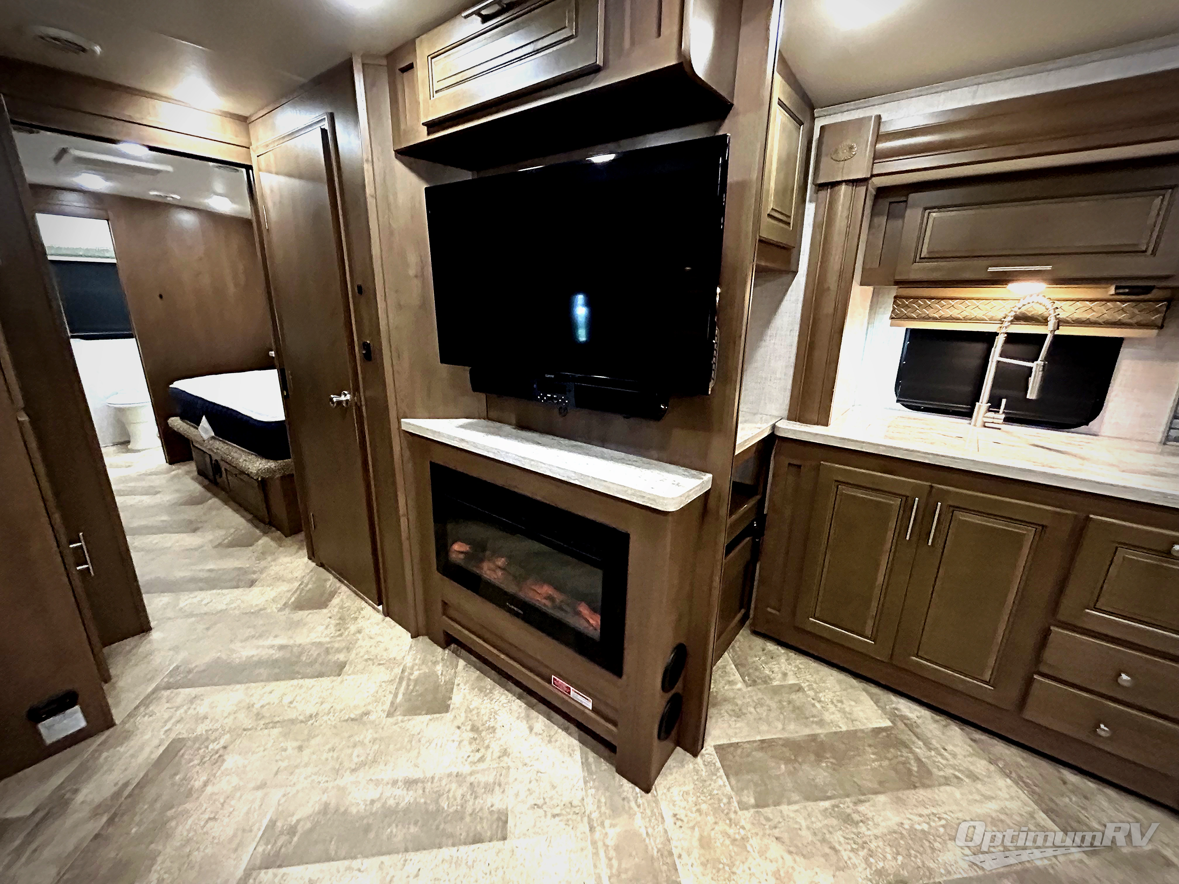 It's time for you to enjoy your road trips in true comfort! Check out this Forest River Georgetown 5 Series Class A gas motorhome. You won't be disappointed with all of the features it has to offer, like the full and half baths, the passenger work station, the 32" LED bedroom TV, and the 40" LED main TV. Another feature you are sure to love is the rear master suite. Here you will find access to your own private bathroom, a king bed with nightstands on either side, and even a wardrobe that is prepped for the optional washer/dryer. The luxurious features don't stop there! There is also a fireplace with theater seating directly across from it, and the seating even has cup holders so that you don't spill your drinks.