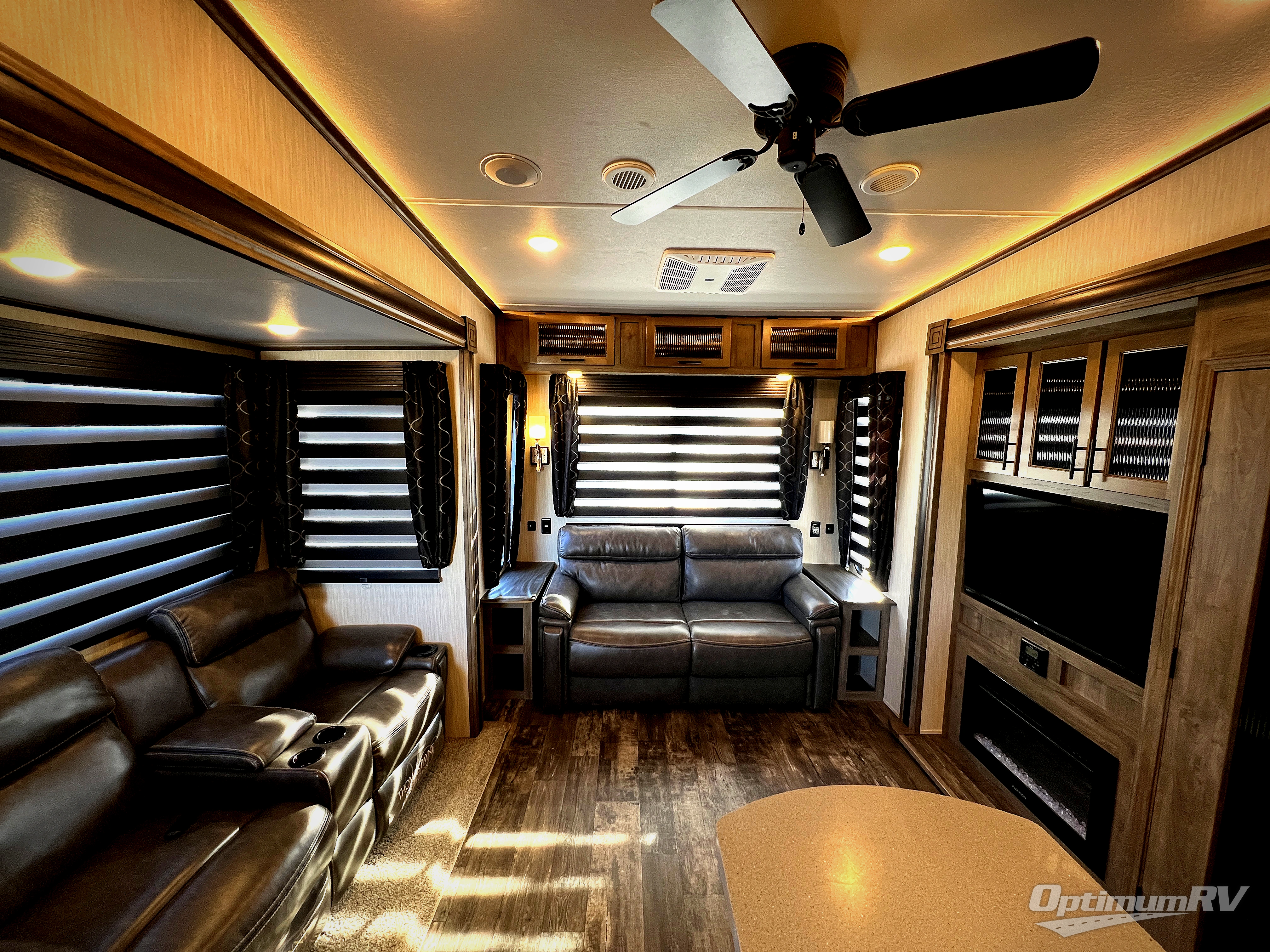 You will experience a luxurious camping trip at an affordable price with any one of these Forest River Sabre fifth wheels! These fifth wheels are durable and ready to travel anytime of the year thanks to features like the high-gloss gel-coat front cap, the maintenance-free heavy-duty PVC roof membrane, and the forced air, heated and enclosed gate valves and underbelly. The Generation III electric auto-leveling system makes setting up easy and safe. With the Sabre Cobalt package, you will enjoy exterior features like the universal docking station which includes a black tank flush and an outside shower and the MOR/Ryde quad "Step Above" entry steps for you to enter and exit the unit safely. The interior All-Inclusive package gives you plenty of entertainment and luxurious features to make you feel right at home, like the Cinemax seating, the fireplace with remote, and the double high-output USB charging ports so that you can stay connected the entire time.