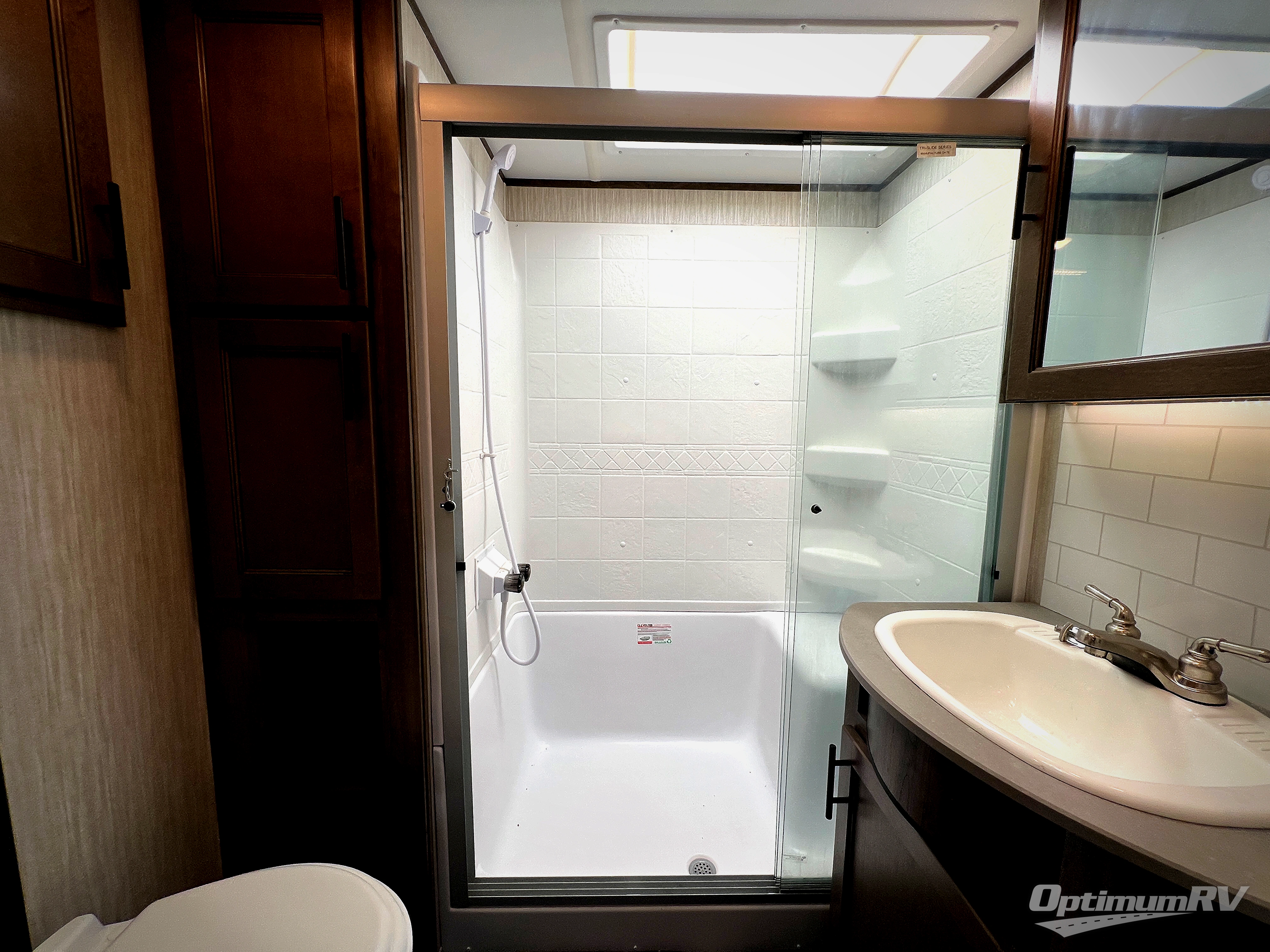 You're going to love camping in this Sabre fifth wheel! The front private bedroom features a queen bed that can be switched out for the optional king bed instead, and the large front closet comes with a shoe rack and an area prepped for you to add the optional washer and dryer to enjoy clean clothes throughout your entire trip! The full bathroom has everything you will need to get squeaky clean each morning, including a walk-in shower with a sky dome and a linen closet to have your towels close by. There is not only one kitchen pantry but two pantries, one of which has an area for your coat and linens to be stored. The exterior also has features you will love to use like the gas grill, the pass-through storage area, and the all-in-one docking station which even features an outdoor shower to eliminate tracking mud inside!