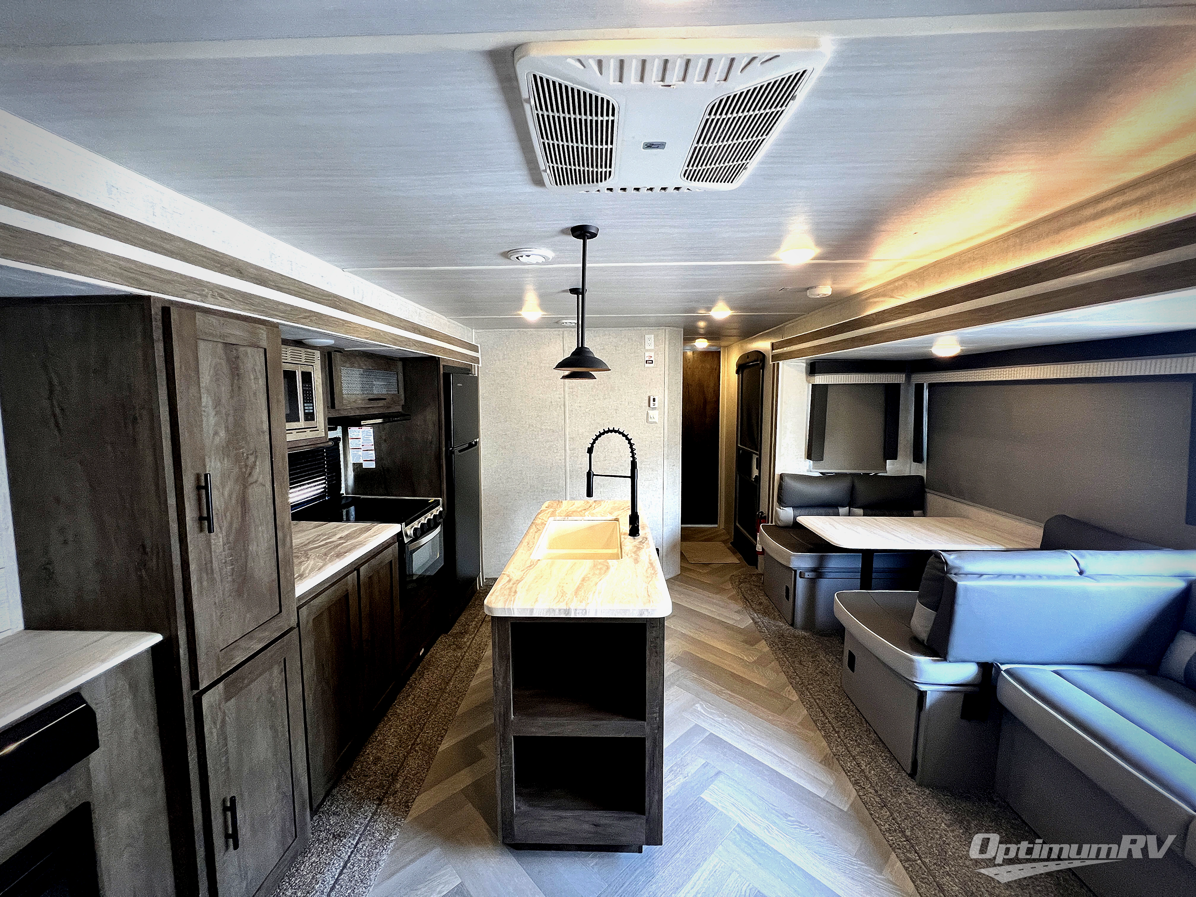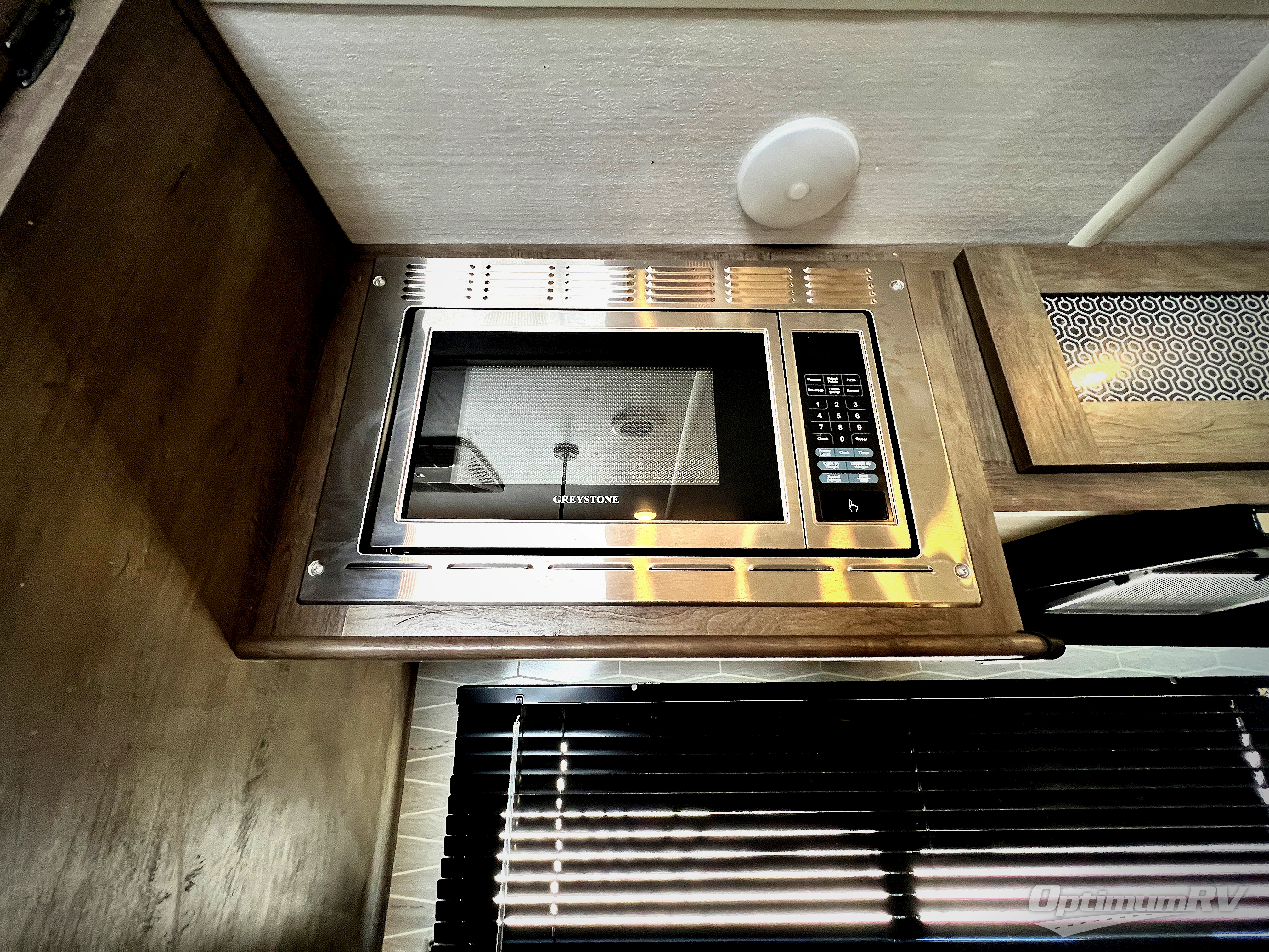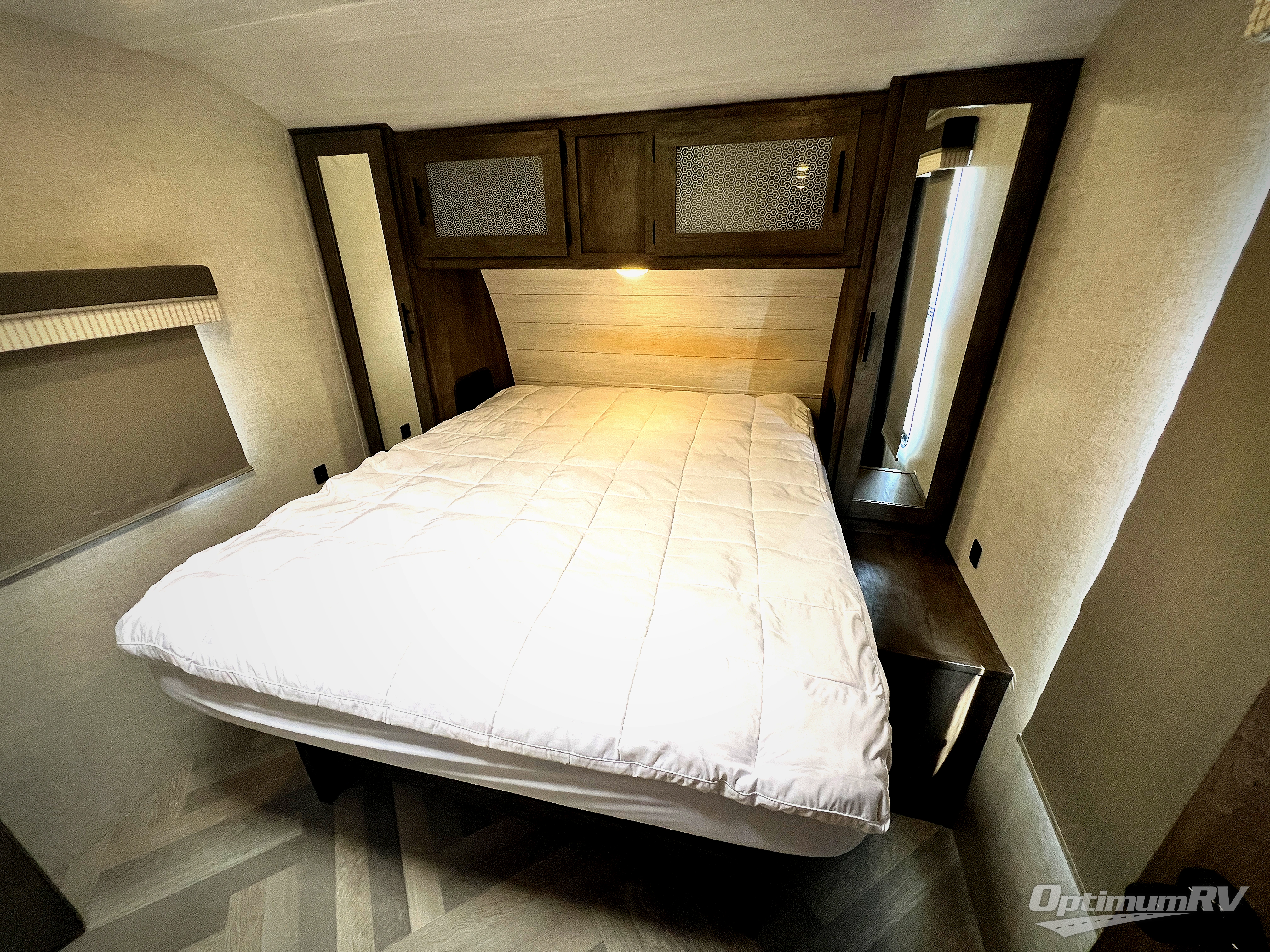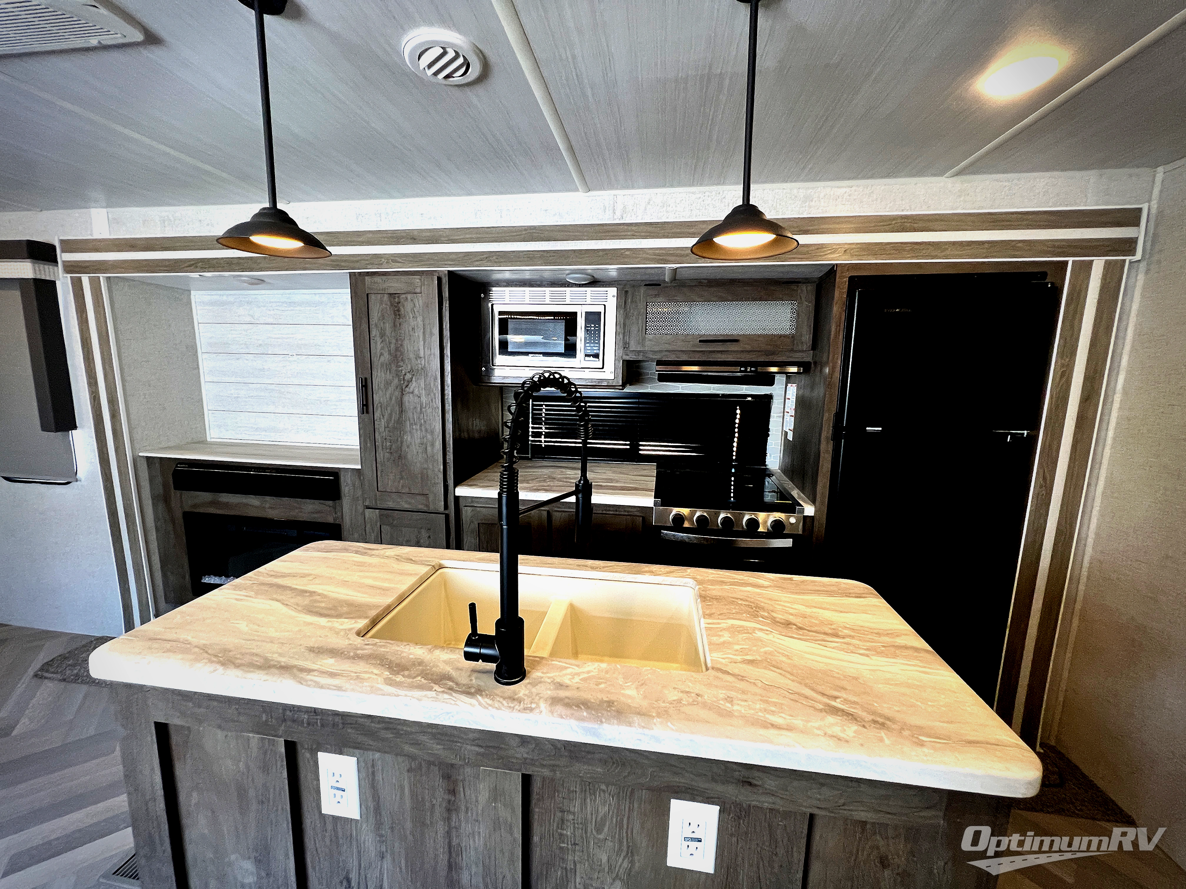 Forest River offers you the highest quality and the best components in its Wildwood travel trailer! The fully walkable one-piece roof is ultra reliable, and the rest of the construction is just as dependable with the powder-coated I-beam frame, cambered chassis, R-7 fiberglass insulation, nitrogen-filled tires, and triple-seal slide-out system. The Wildwood is not only full of quality, but it is also full of style with its herringbone luxury vinyl flooring, shiplap wall board, upgraded designer furniture, high-gloss exterior metal, and seamless countertops. The Wildwood also comes with some extra features that will make your life more comfortable, like the exterior speakers with blue LED light, the tablet-compatible USB ports, the residential vanity with shower caddy, and true stabilizer jacks with JT's Strong Arm.